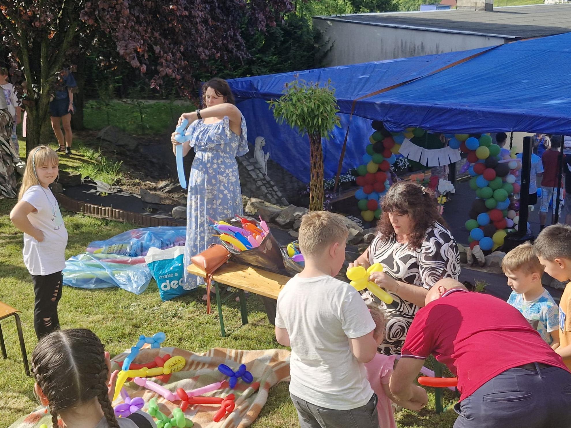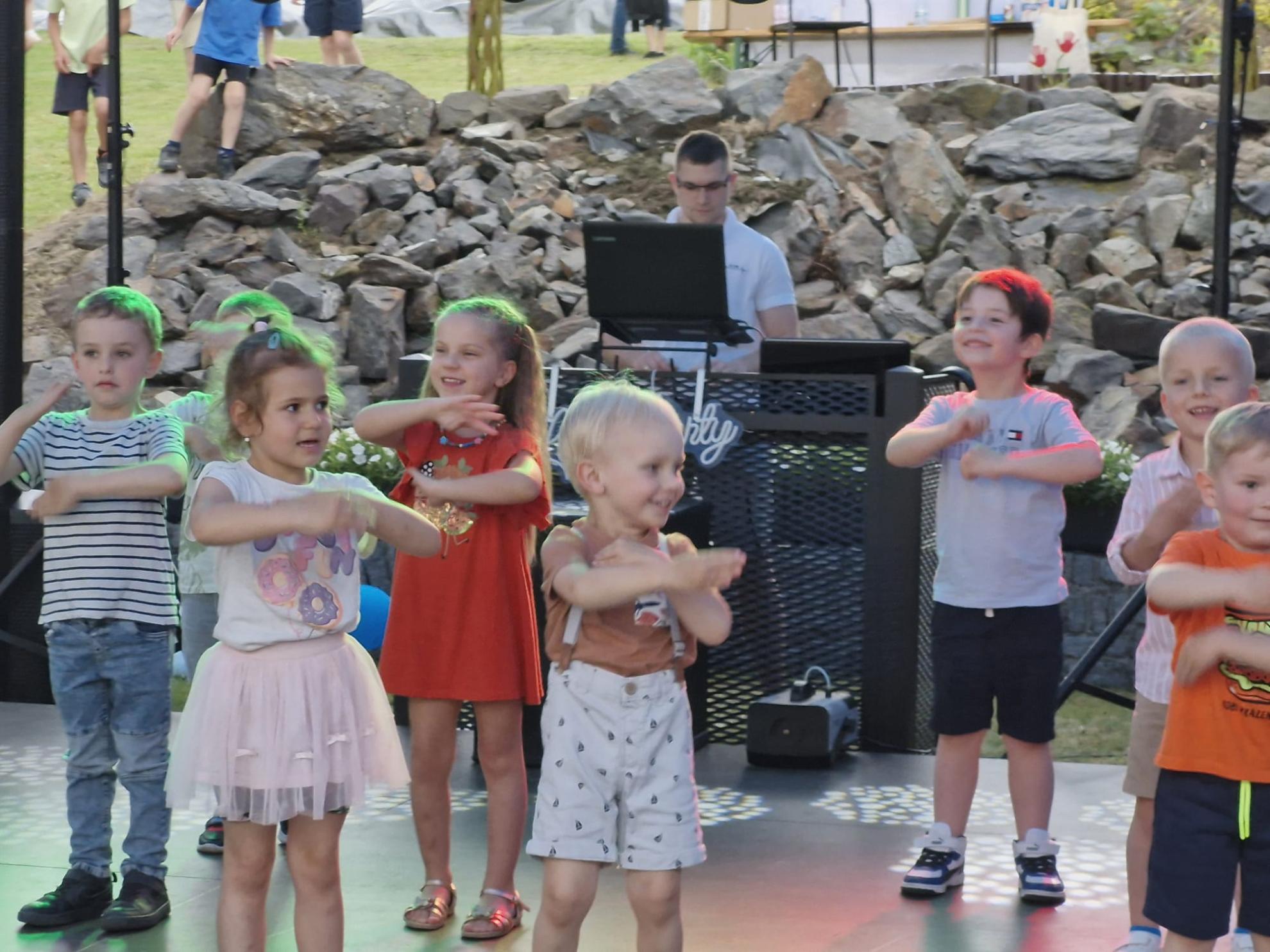 Po występach młodsze i starsze dzieci zostały zaproszone do zabawy na scenie podczas, której co chwila były obsypywane cukierkami ufundowanymi przez Księdza Proboszcza.Poza tym na dzieci czekało wiele atrakcji: zjeżdżalnie-dmuchańce, malowanie twarzy, zaplatanie warkoczyków, balonikowe zwierzaki. Jedna z atrakcji, wóz strażacki, niestety został wezwany do akcji ratowania mienia w związku z ulewą.