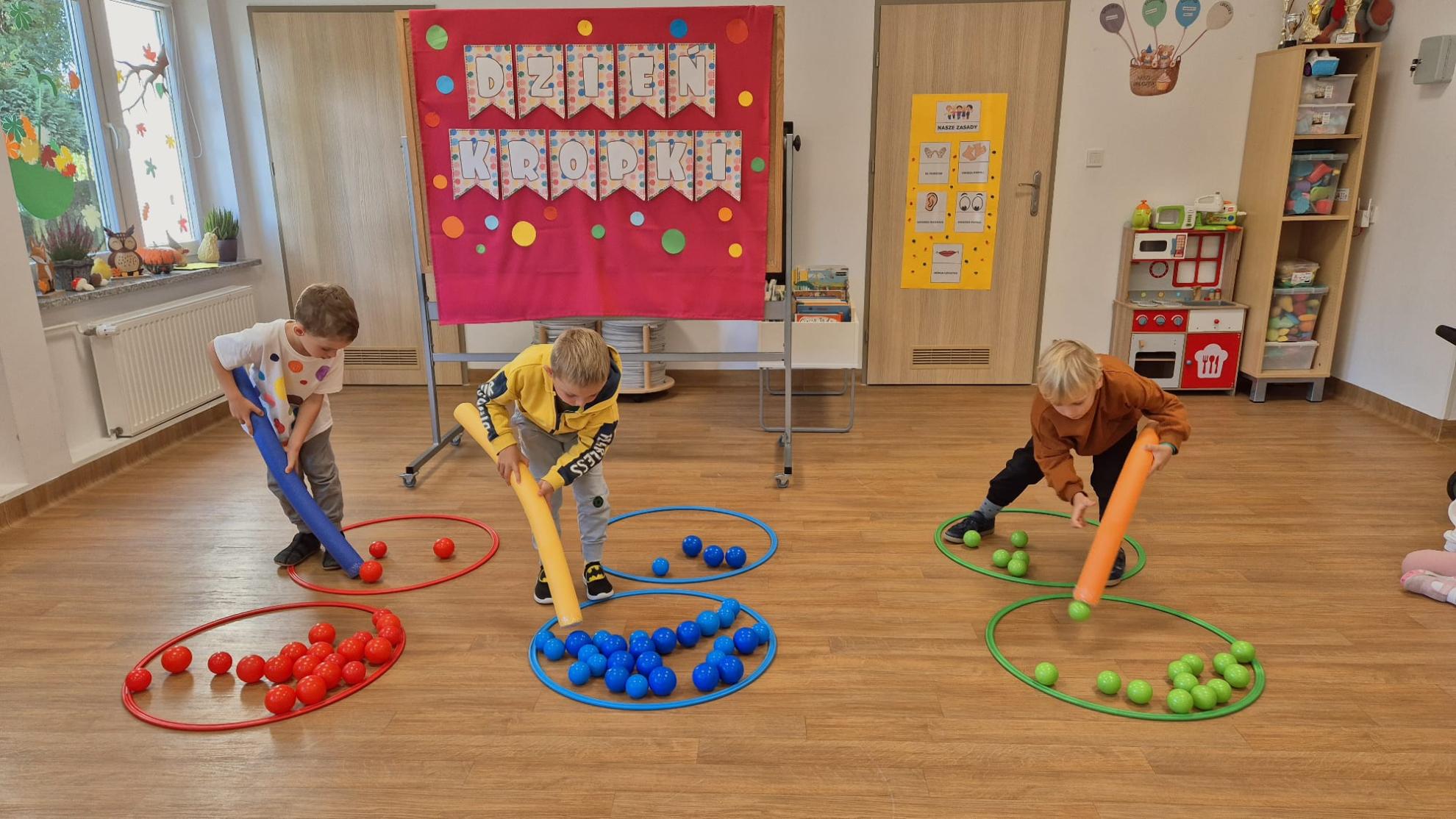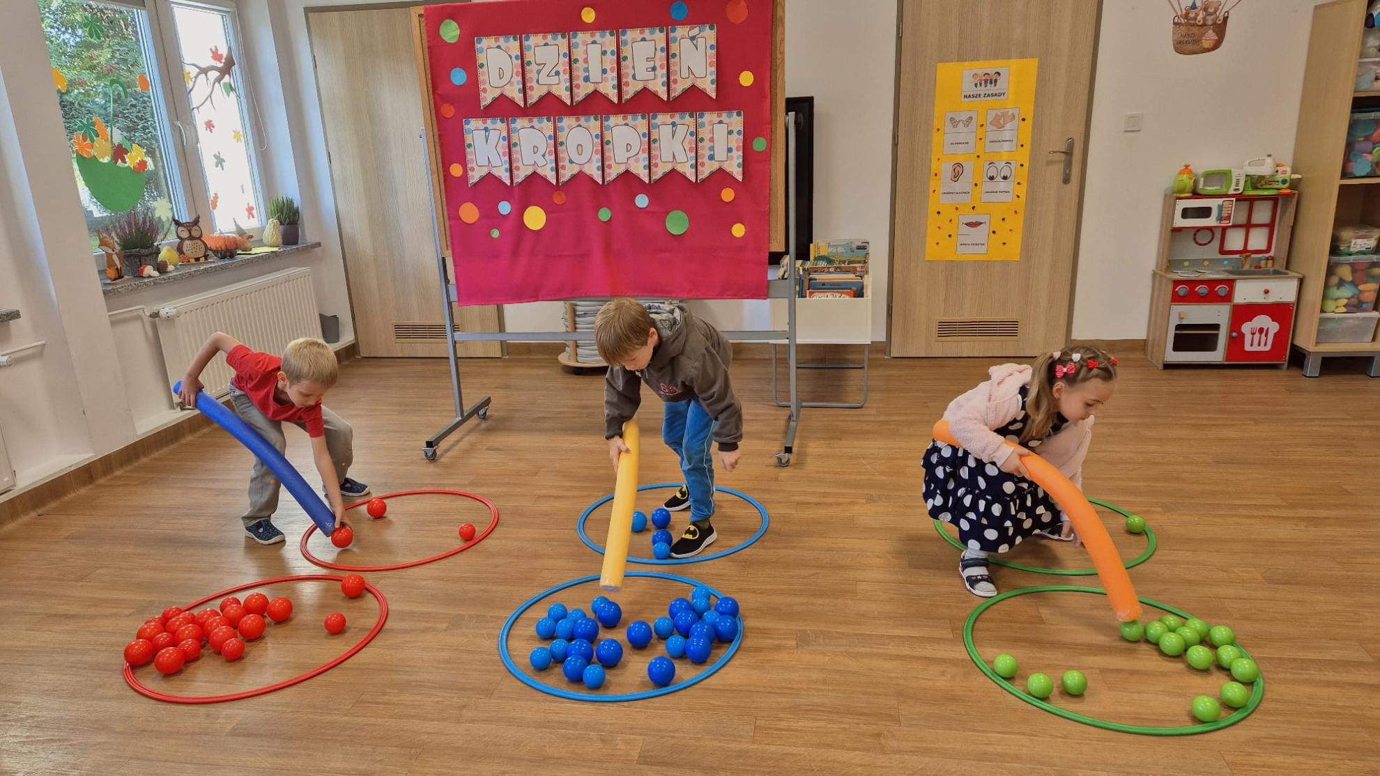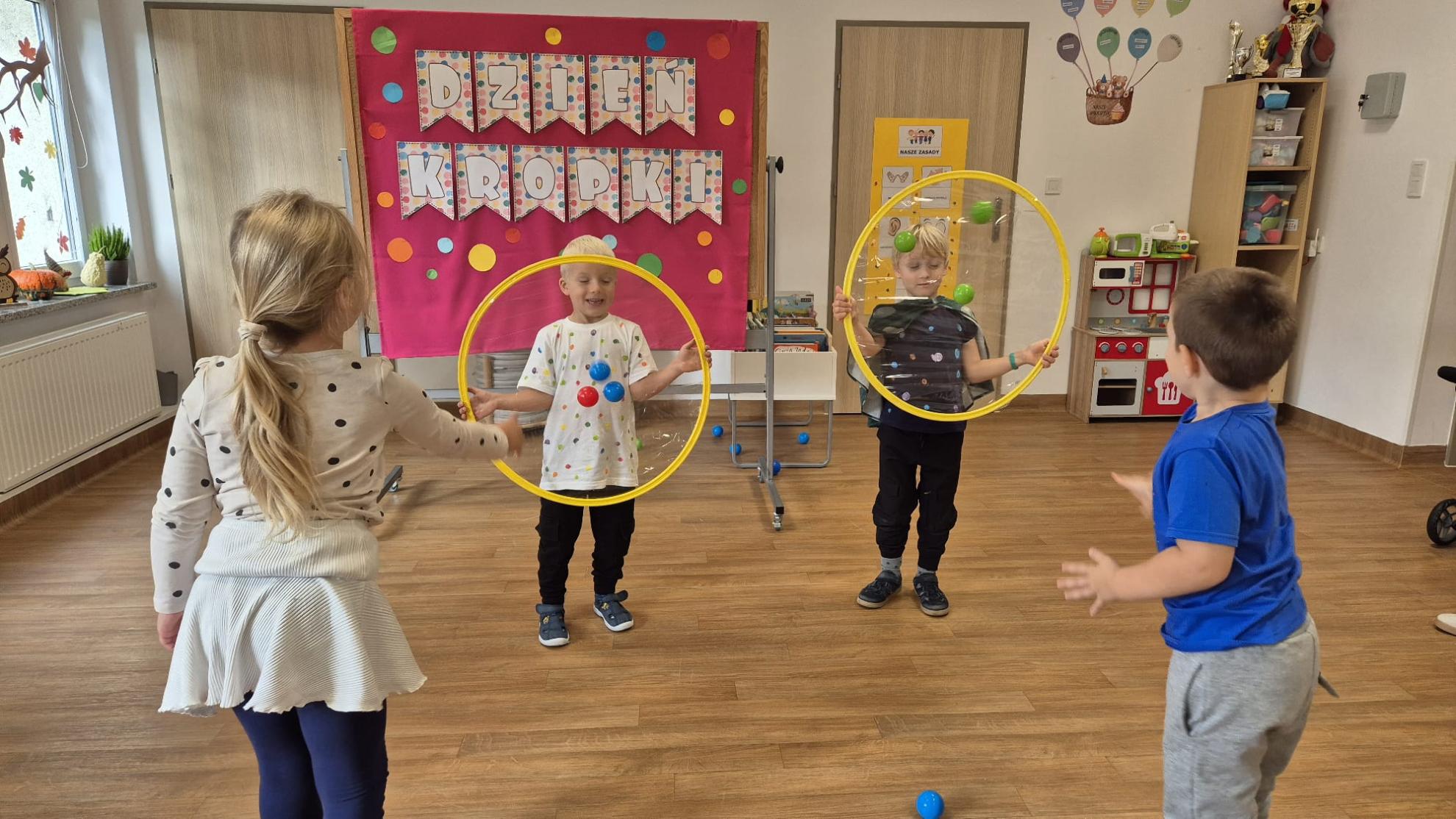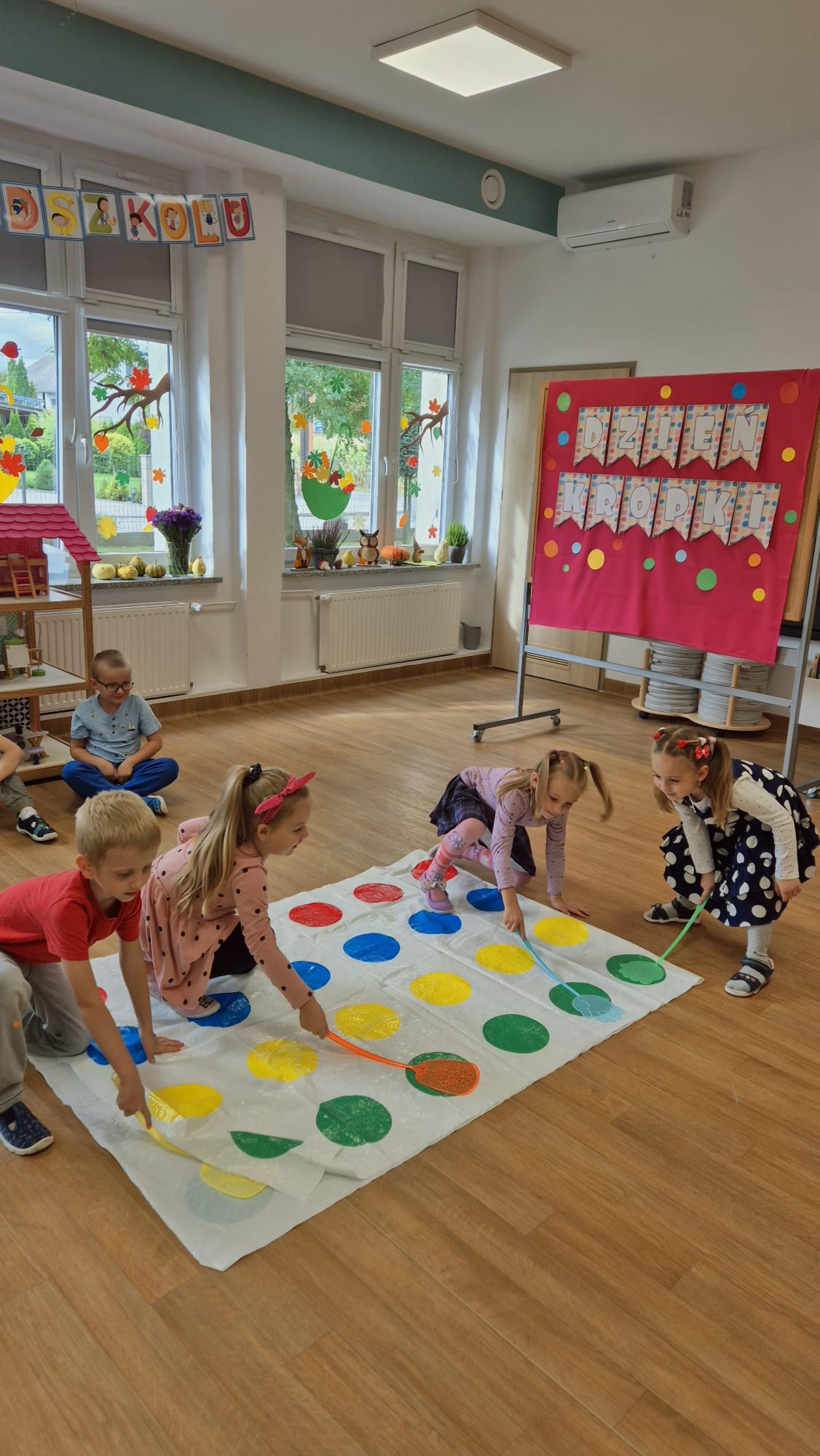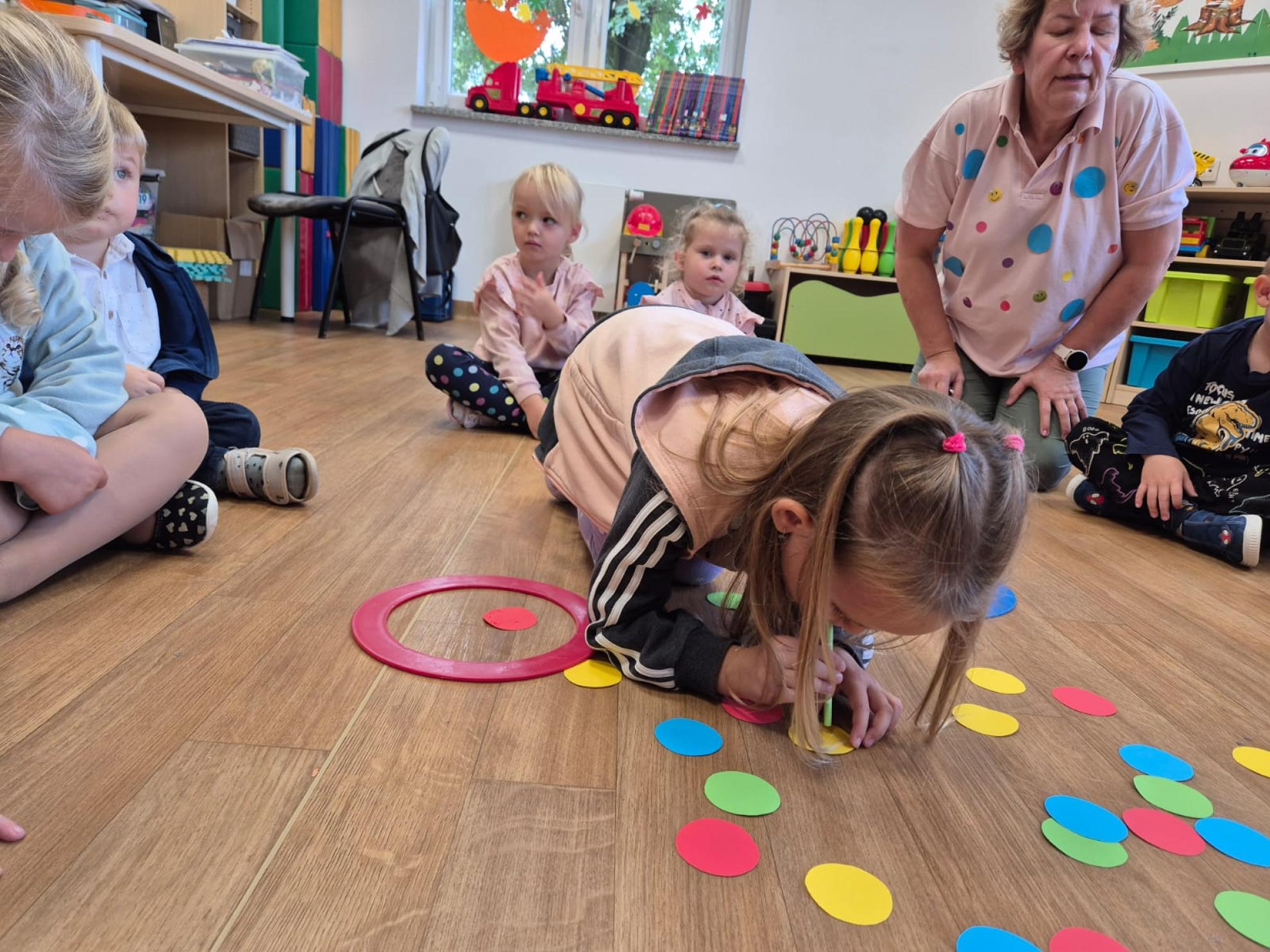 bawiły się w gry i zabawy ruchowe z motywem kropek,