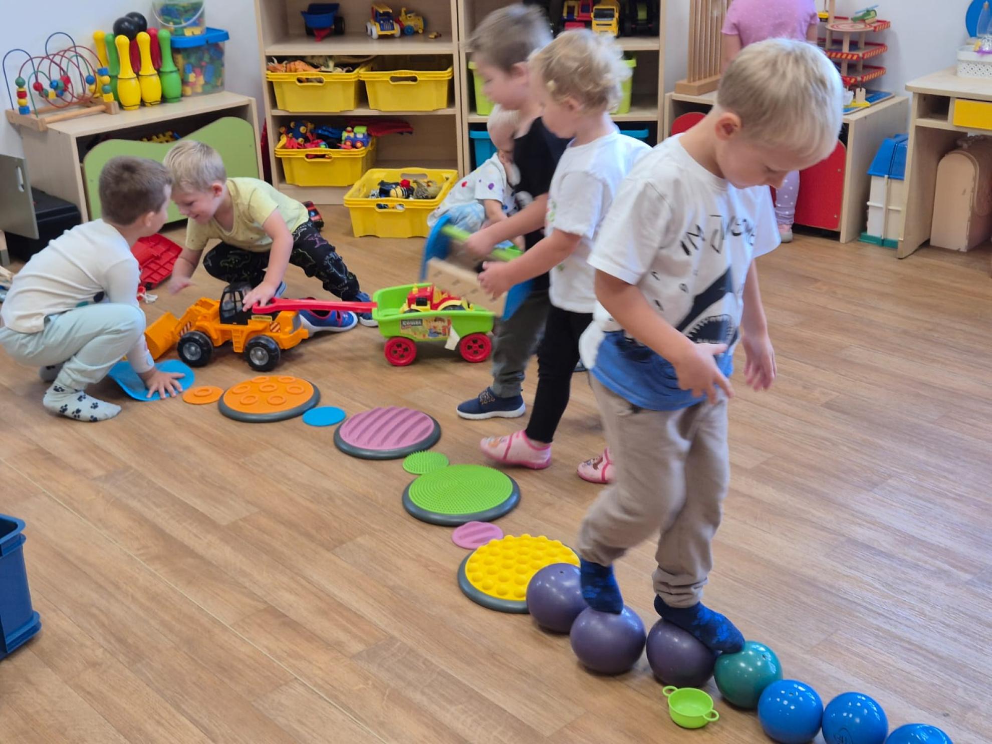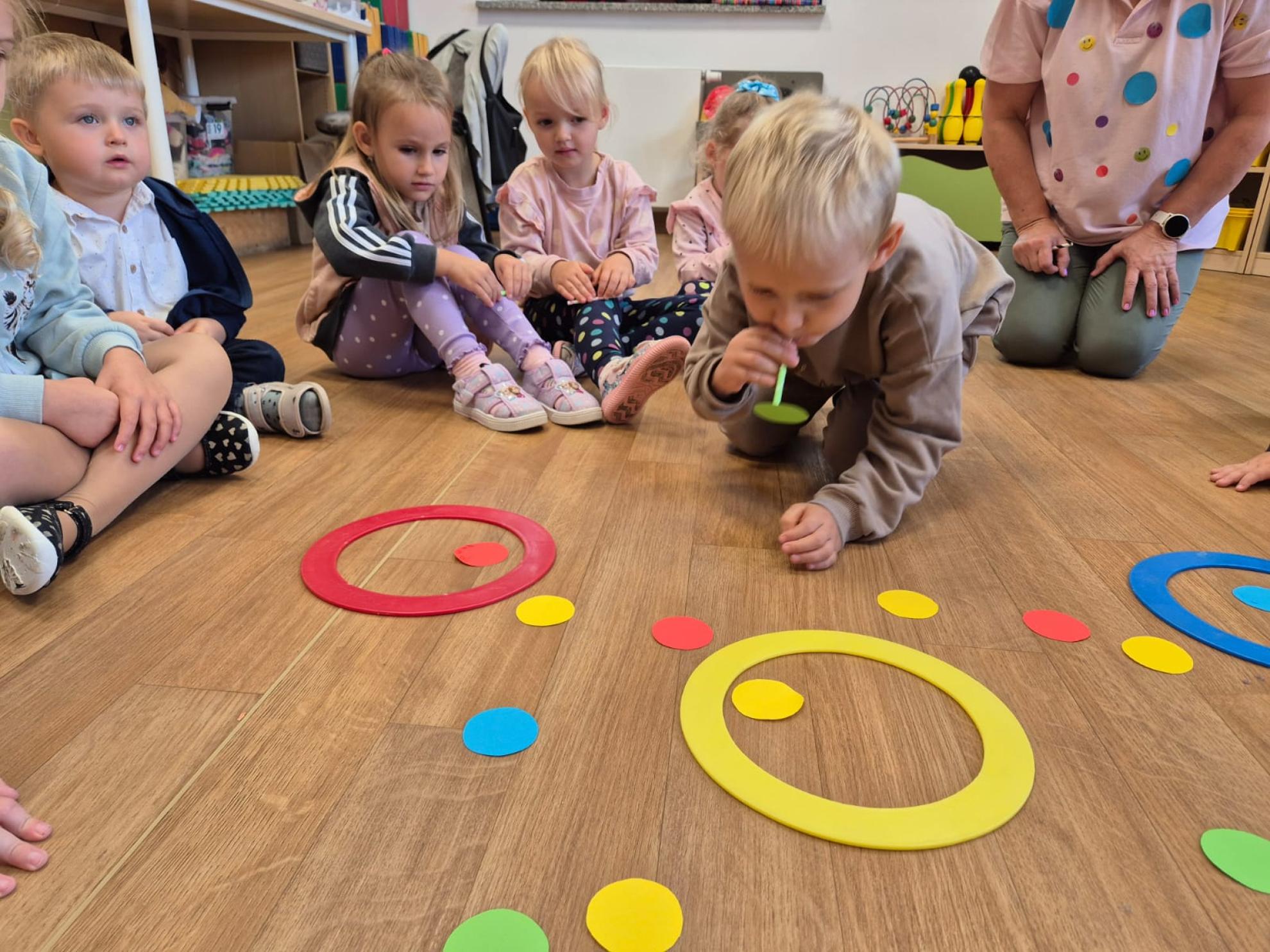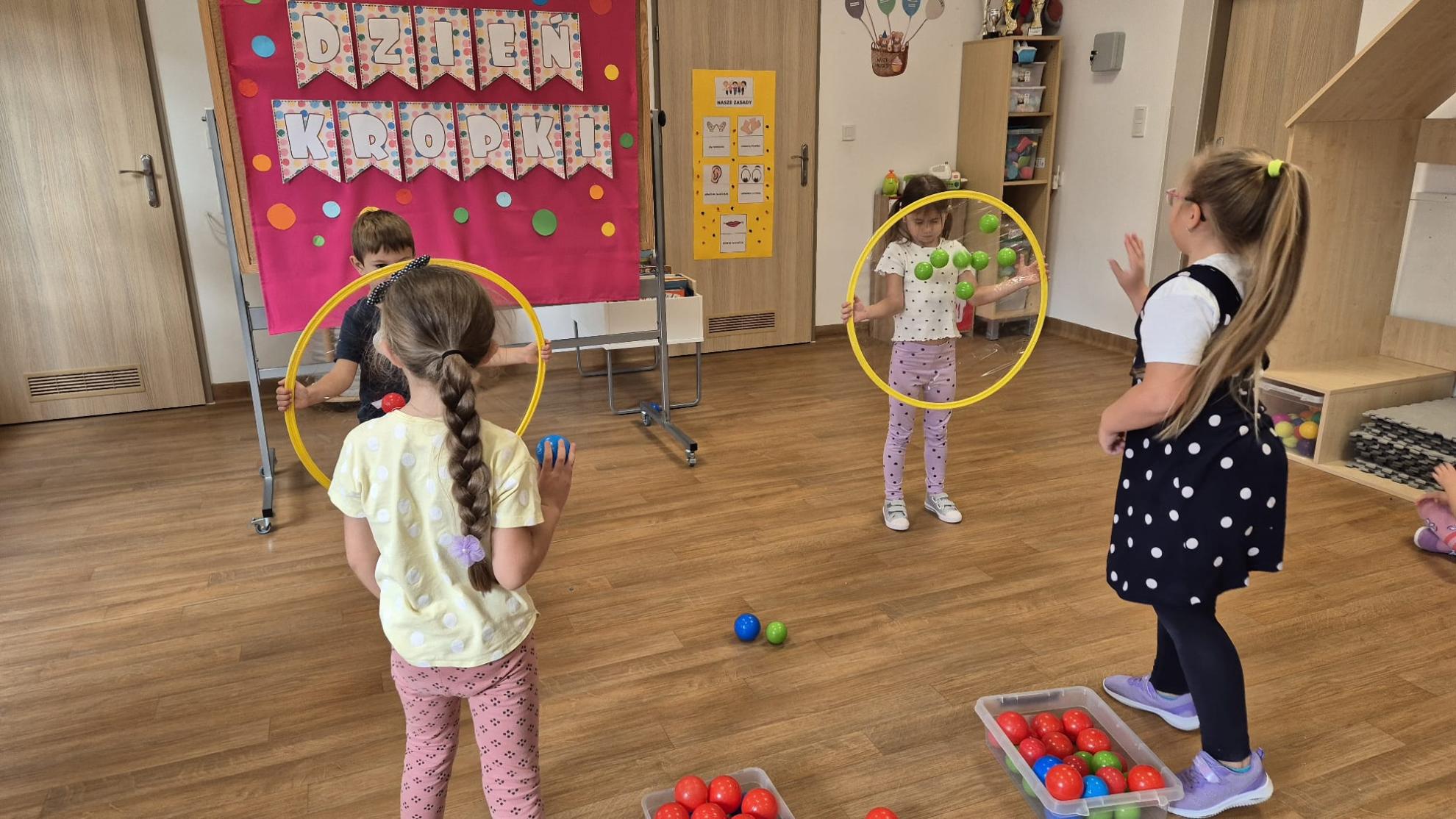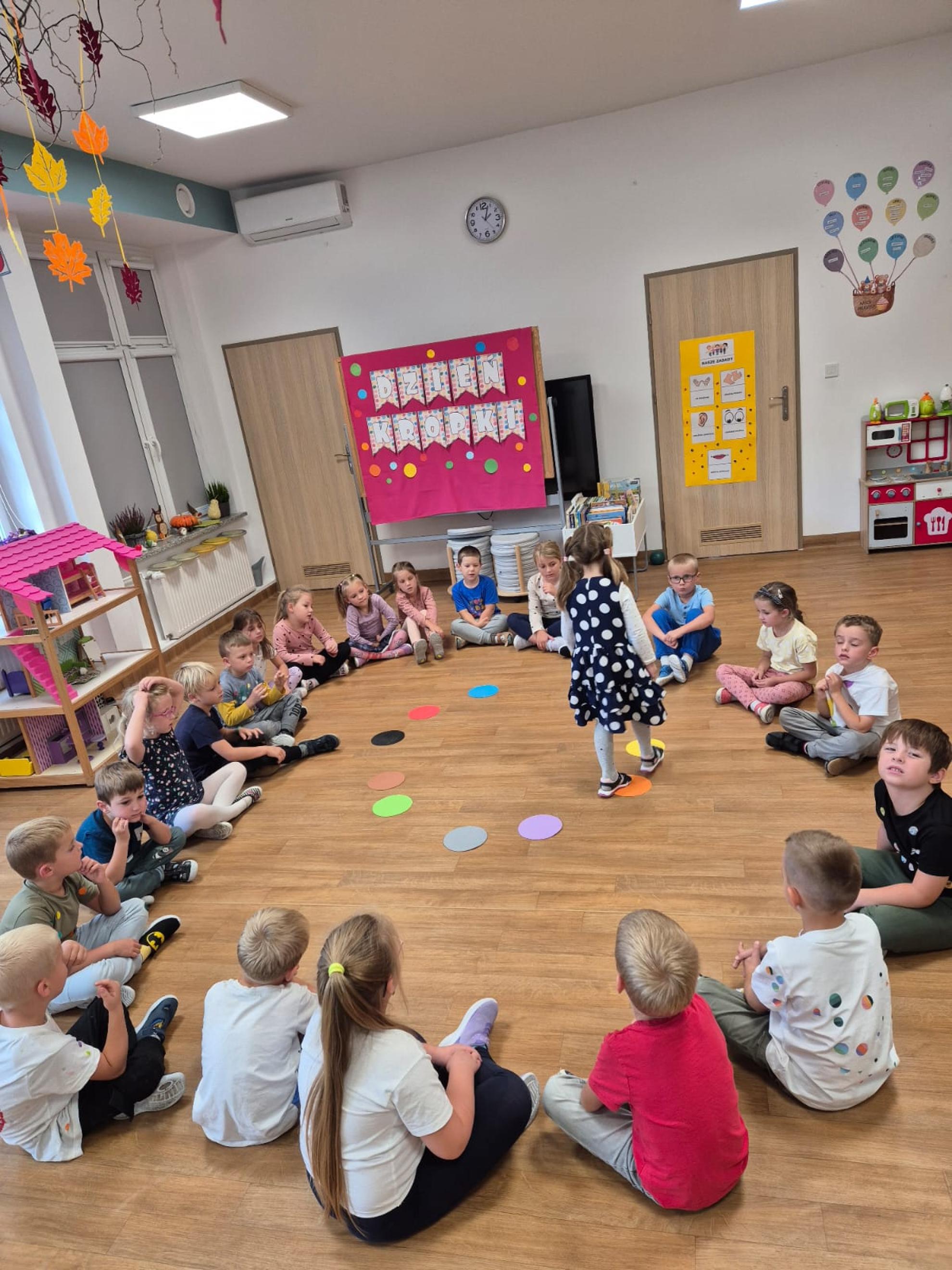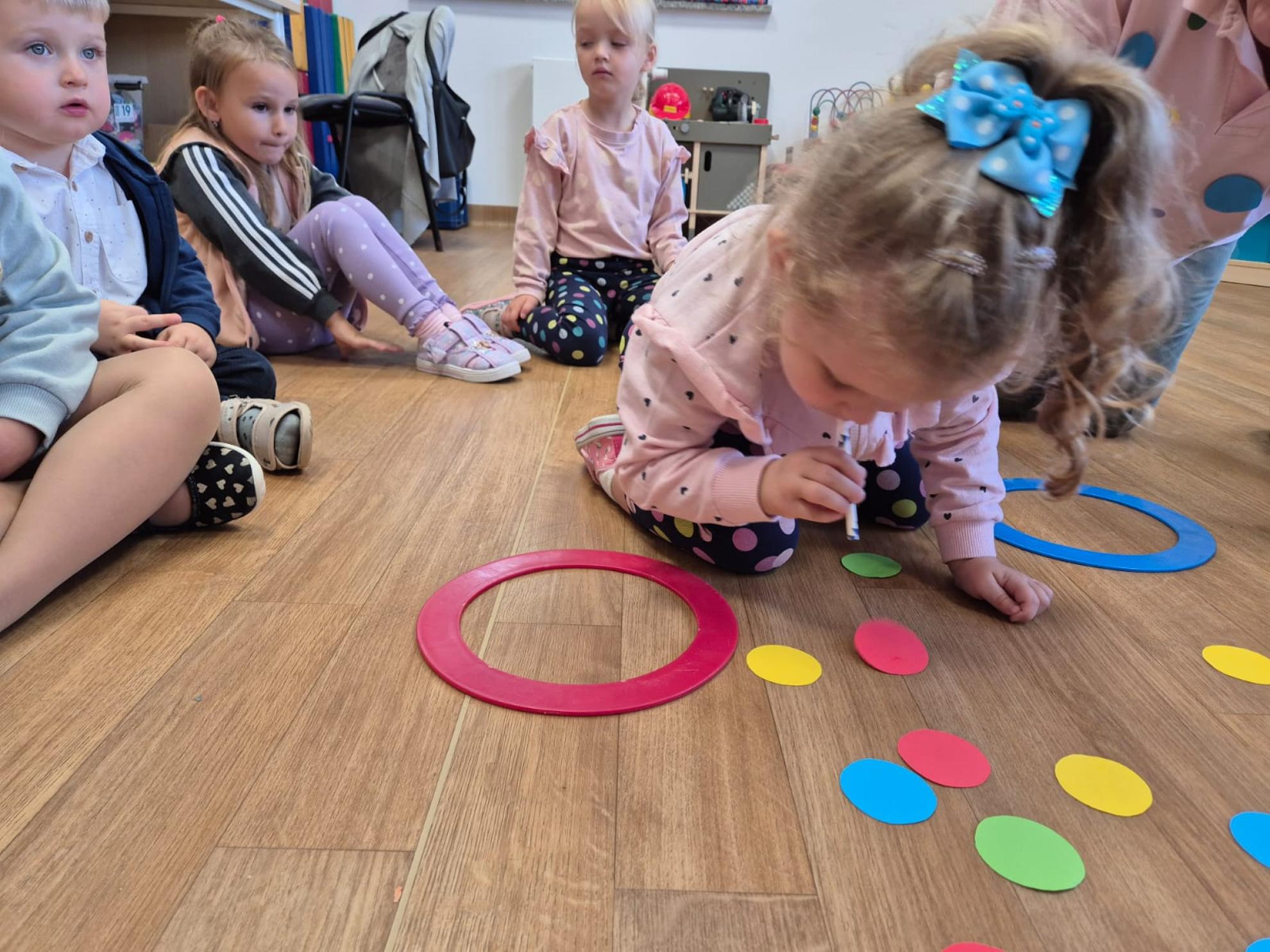 bawiły się w gry i zabawy ruchowe z motywem kropek,