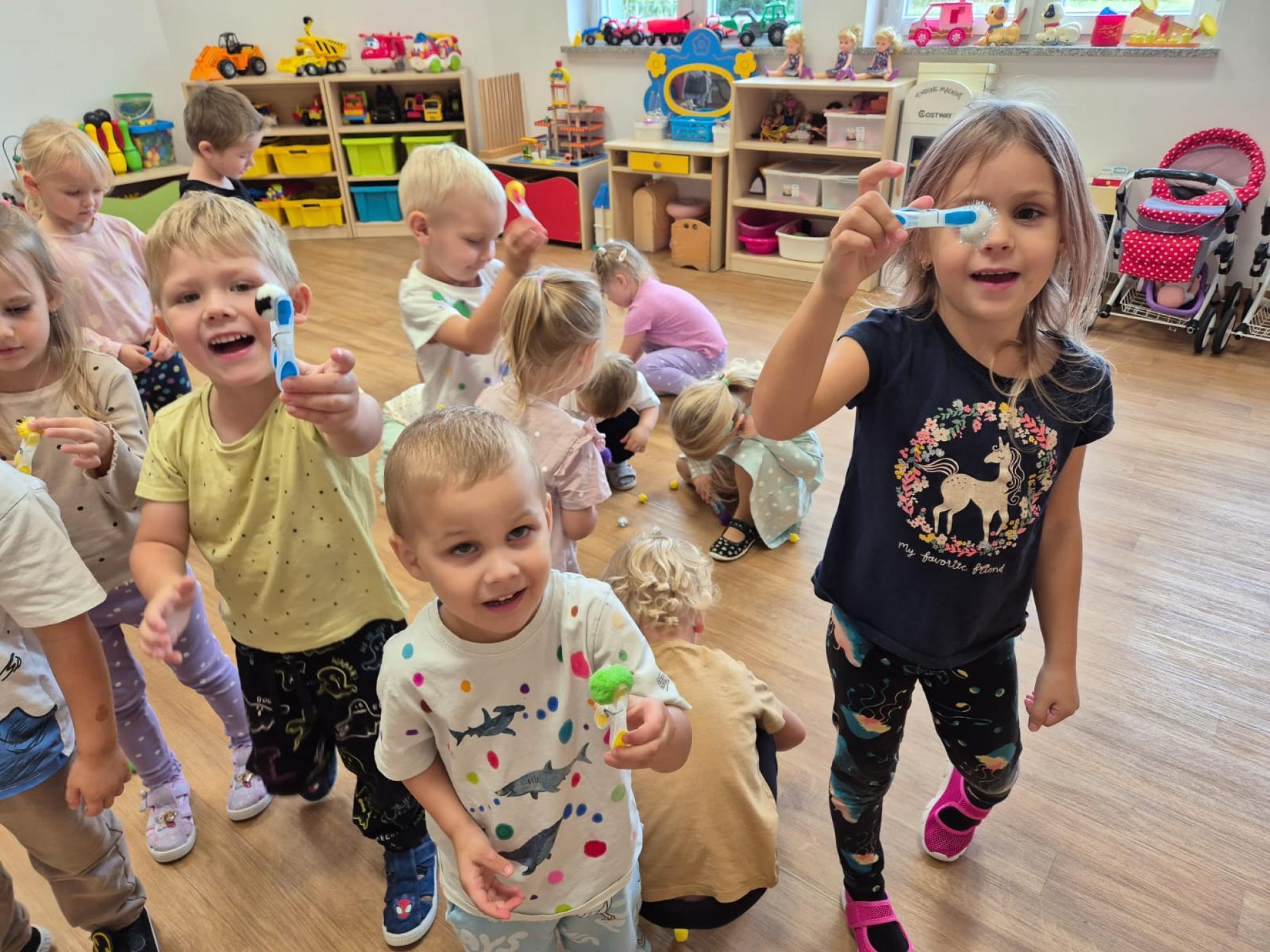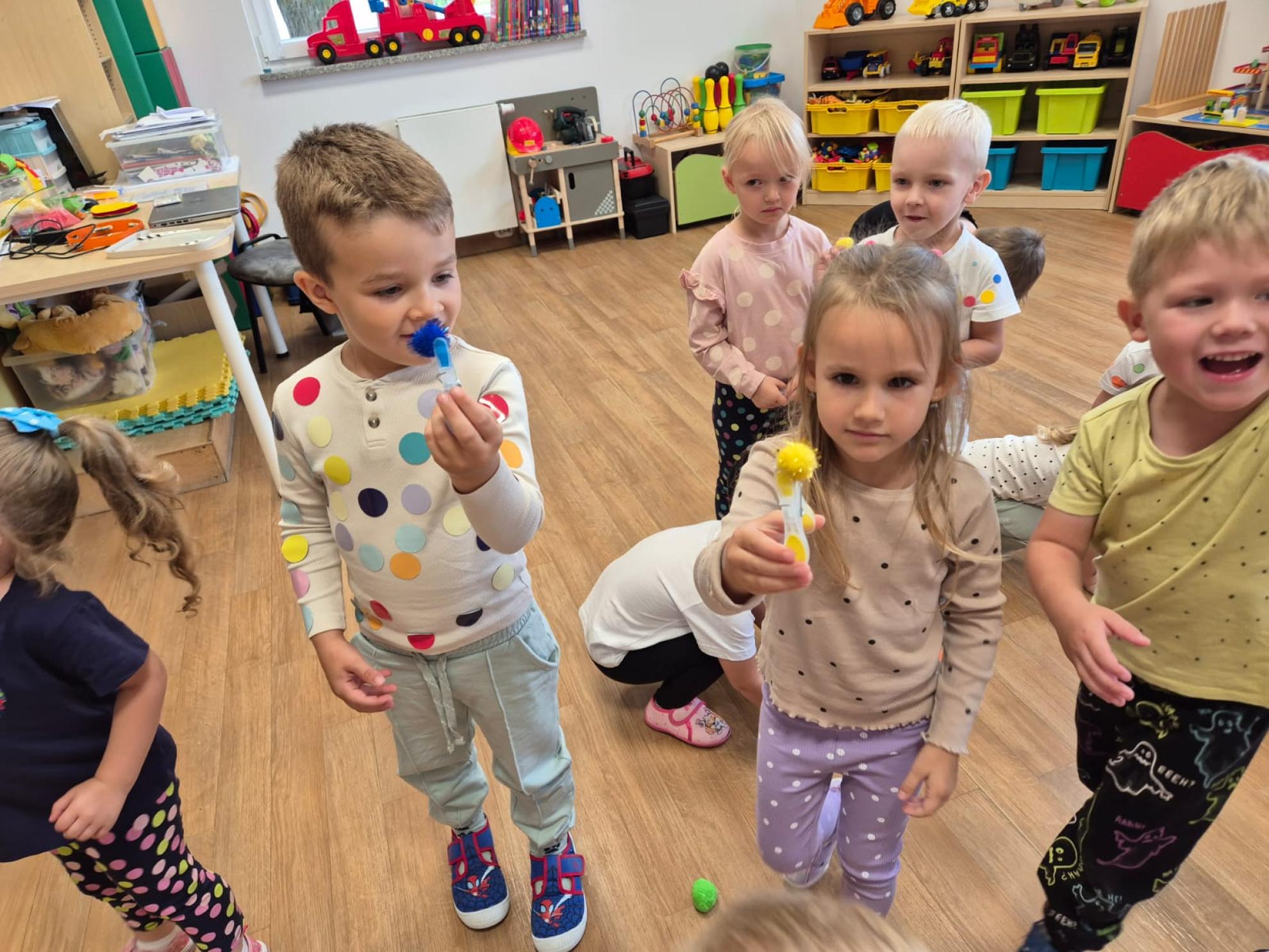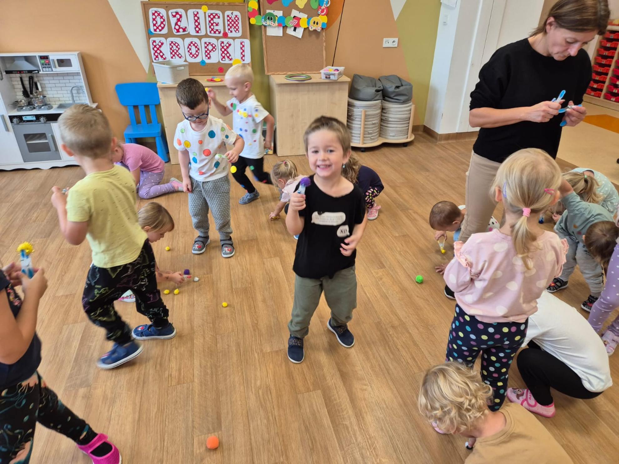 Od samego rana w przedszkolu panowała radosna atmosfera – wszędzie królowały kolorowe kropki. Dzieci przyszły ubrane w „nakrapiane” stroje, a sale wypełniły się pięknymi, twórczymi dekoracjami.