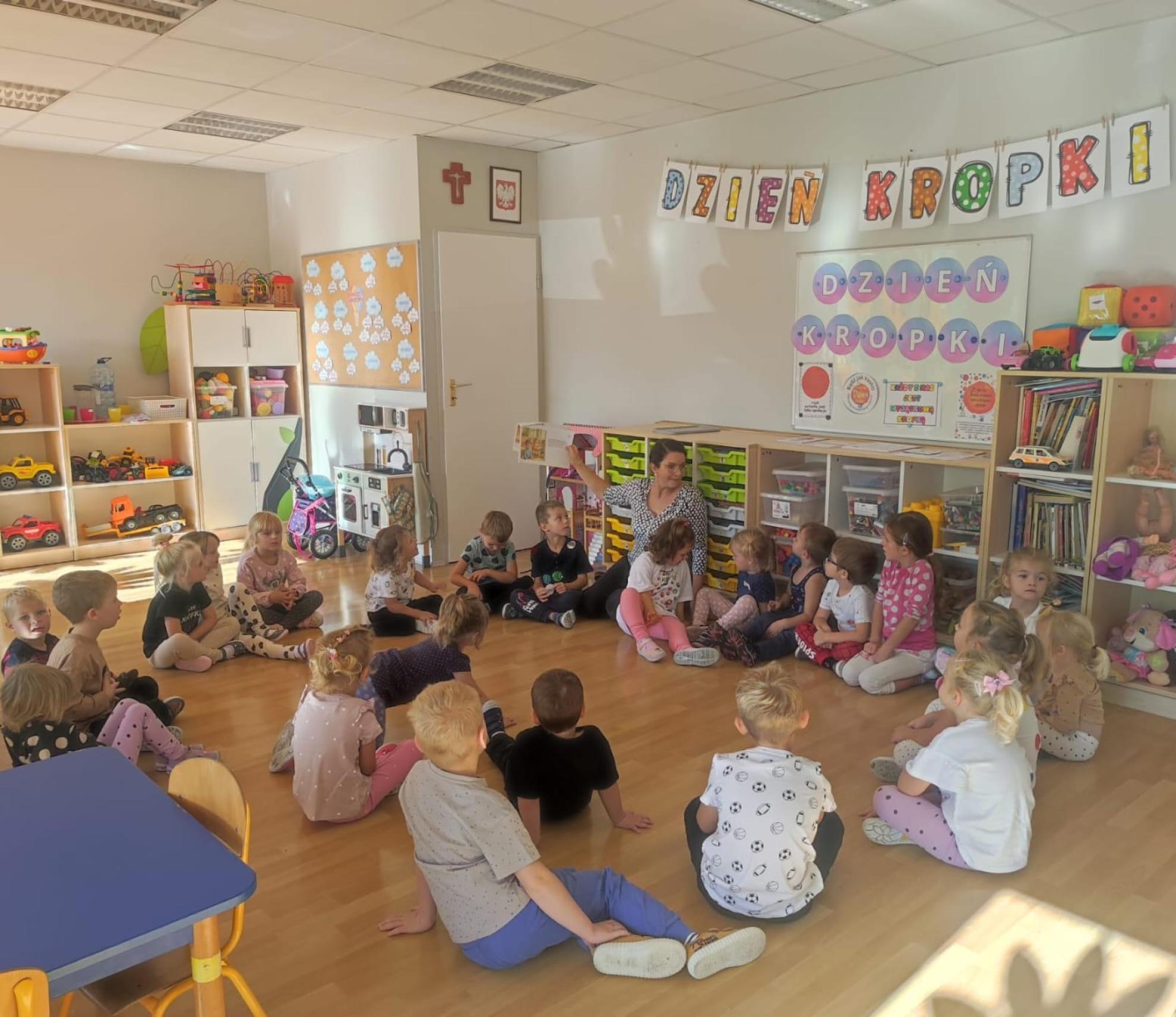Przedszkolaki z Szonowic świętowały w swoim przedszkolu Międzynarodowy Dzień Kropki biorąc udział w wielu zabawach kreatywnych, manualnych i muzyczno- ruchowych. Z wielką uwagą wysłuchały opowiadania pt. "Dwie magiczne Kropki Stasia", z którego dowiedziały się, że każdy z nas ma w sobie dwie magiczne kropki i że wystarczy zamknąć oczy i poprosić je o pomoc,a wyobraźnia pokaże najwspanialsze rzeczy na świecie.