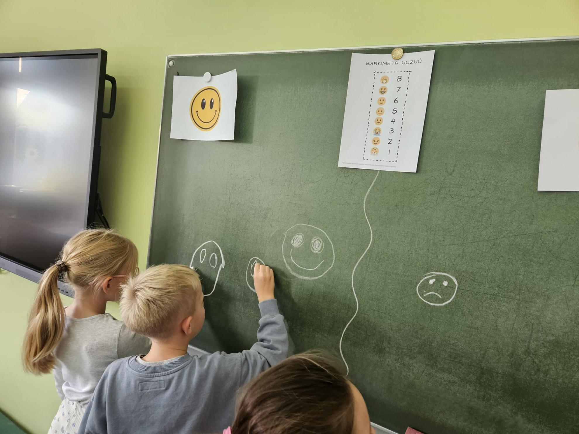Uczniowie opisywali swoje samopoczucie za pomocą barometru, tworzyli plakaty edukacyjne „Jak chcemy się traktować”, a na podstawie przeczytanego opowiadania uczyli się opisywania swoich emocji.