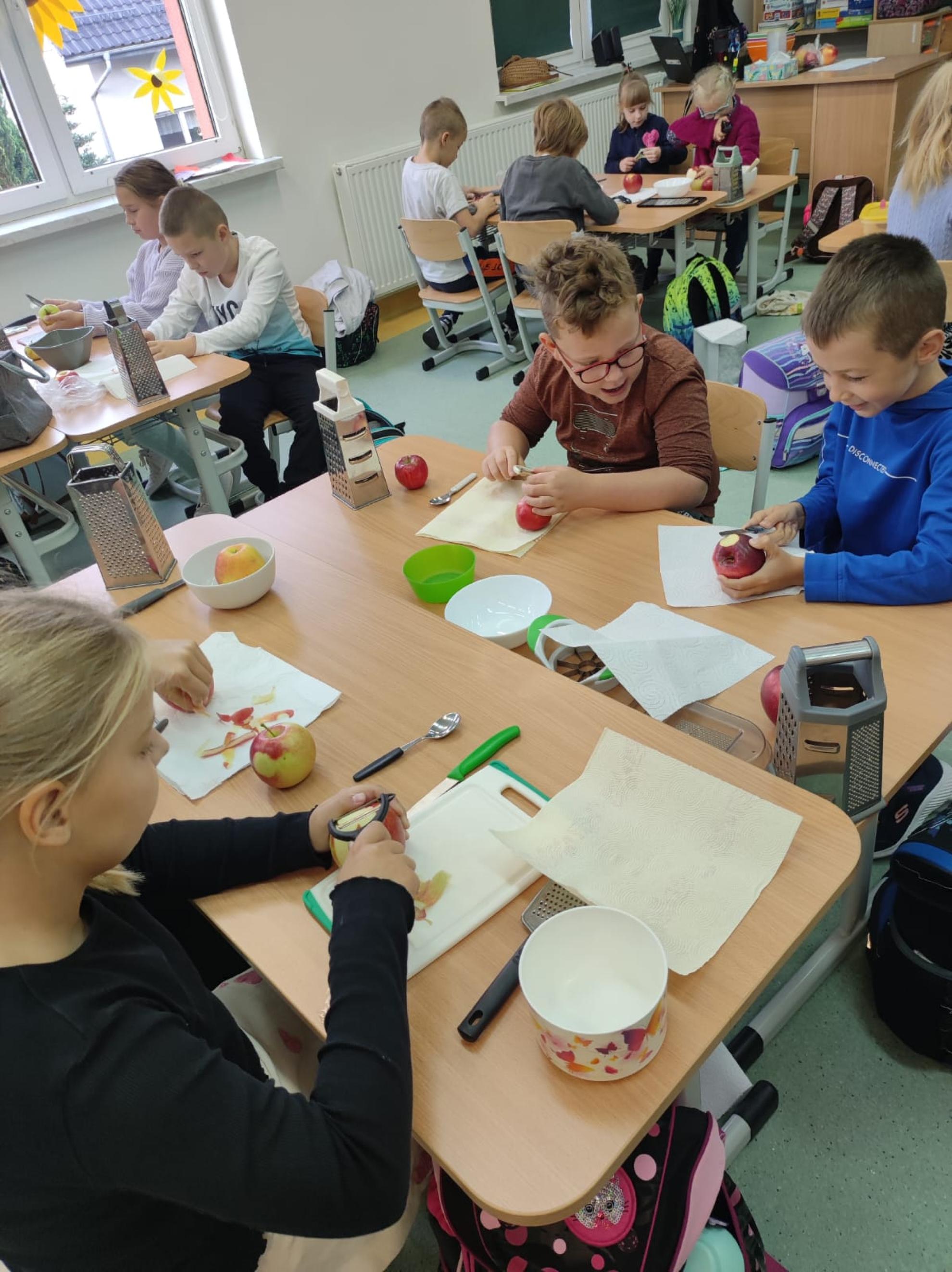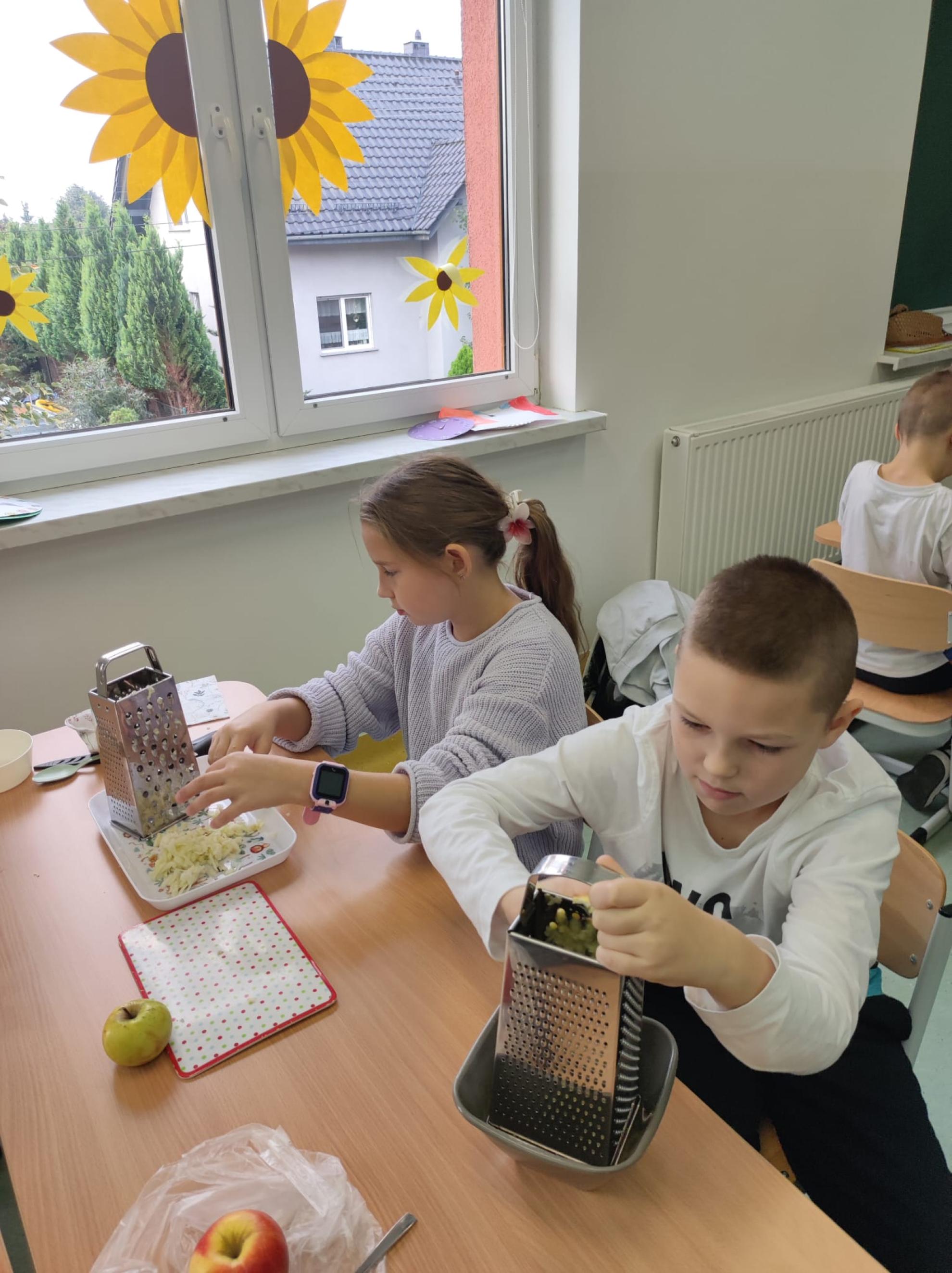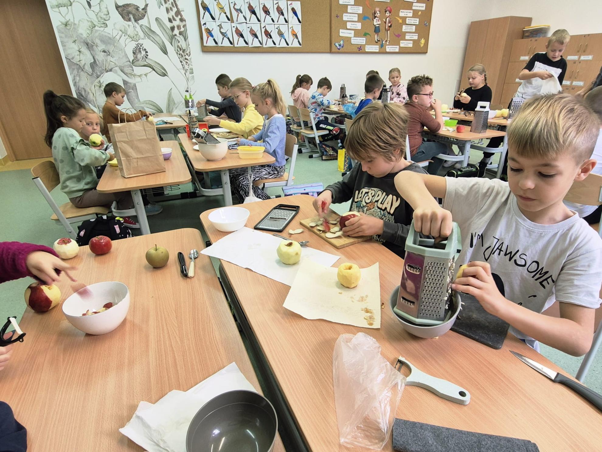 Klasa II zajęła się obieraniem i tarciem jabłek,