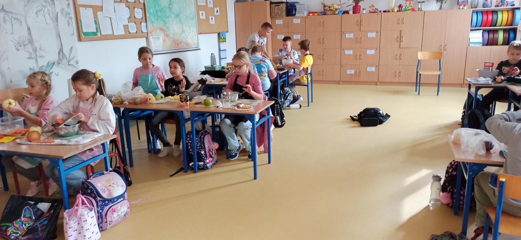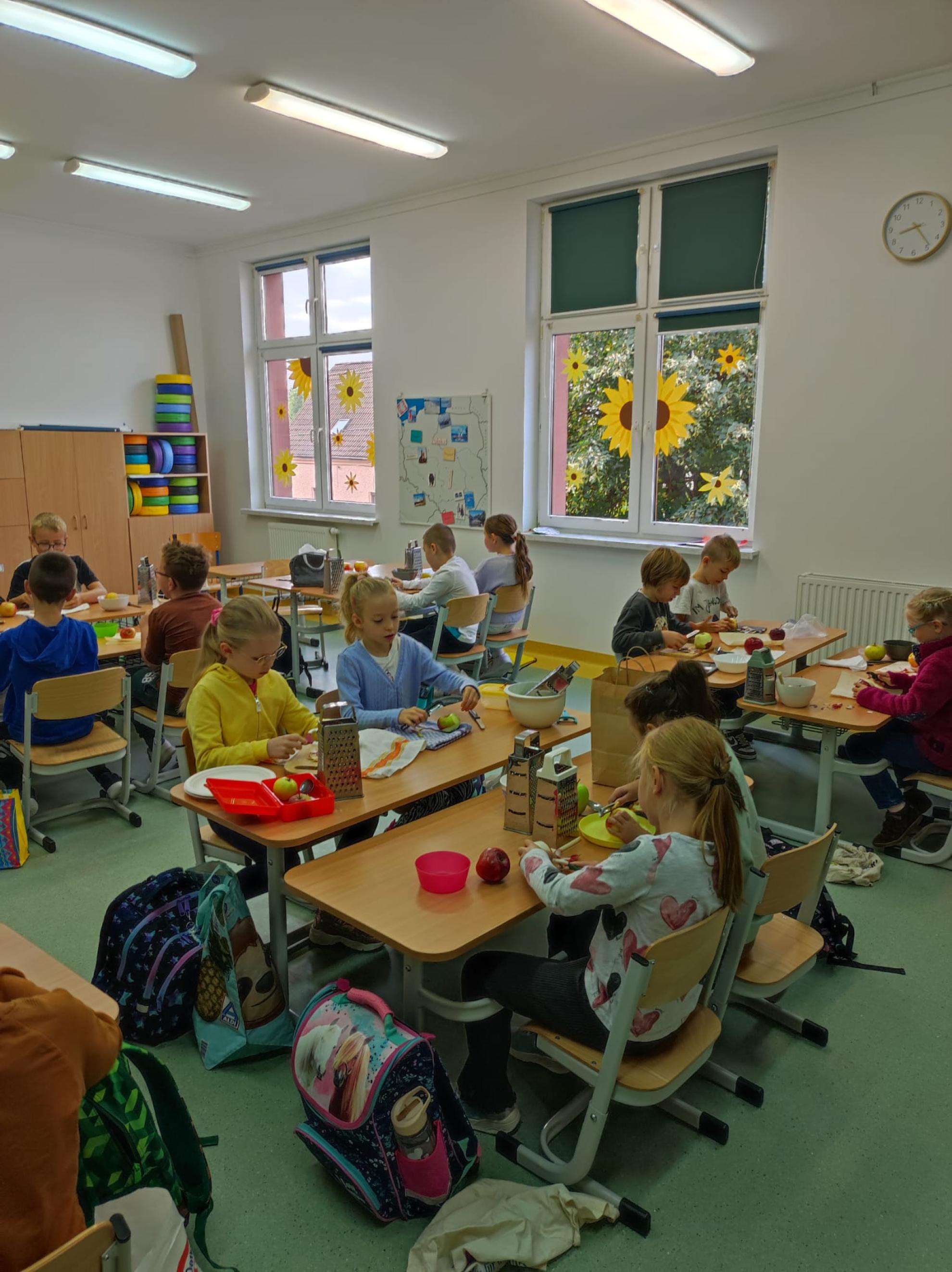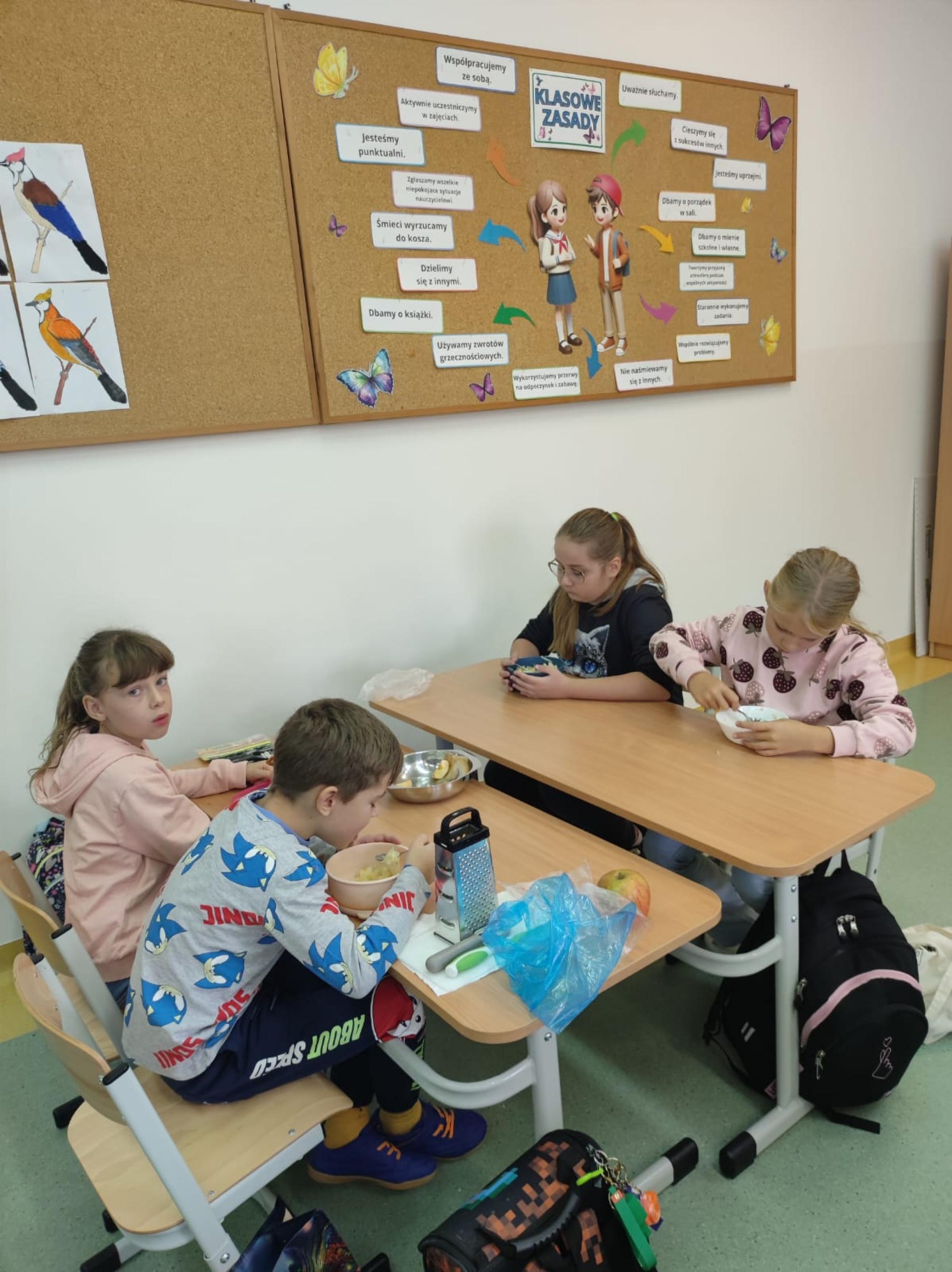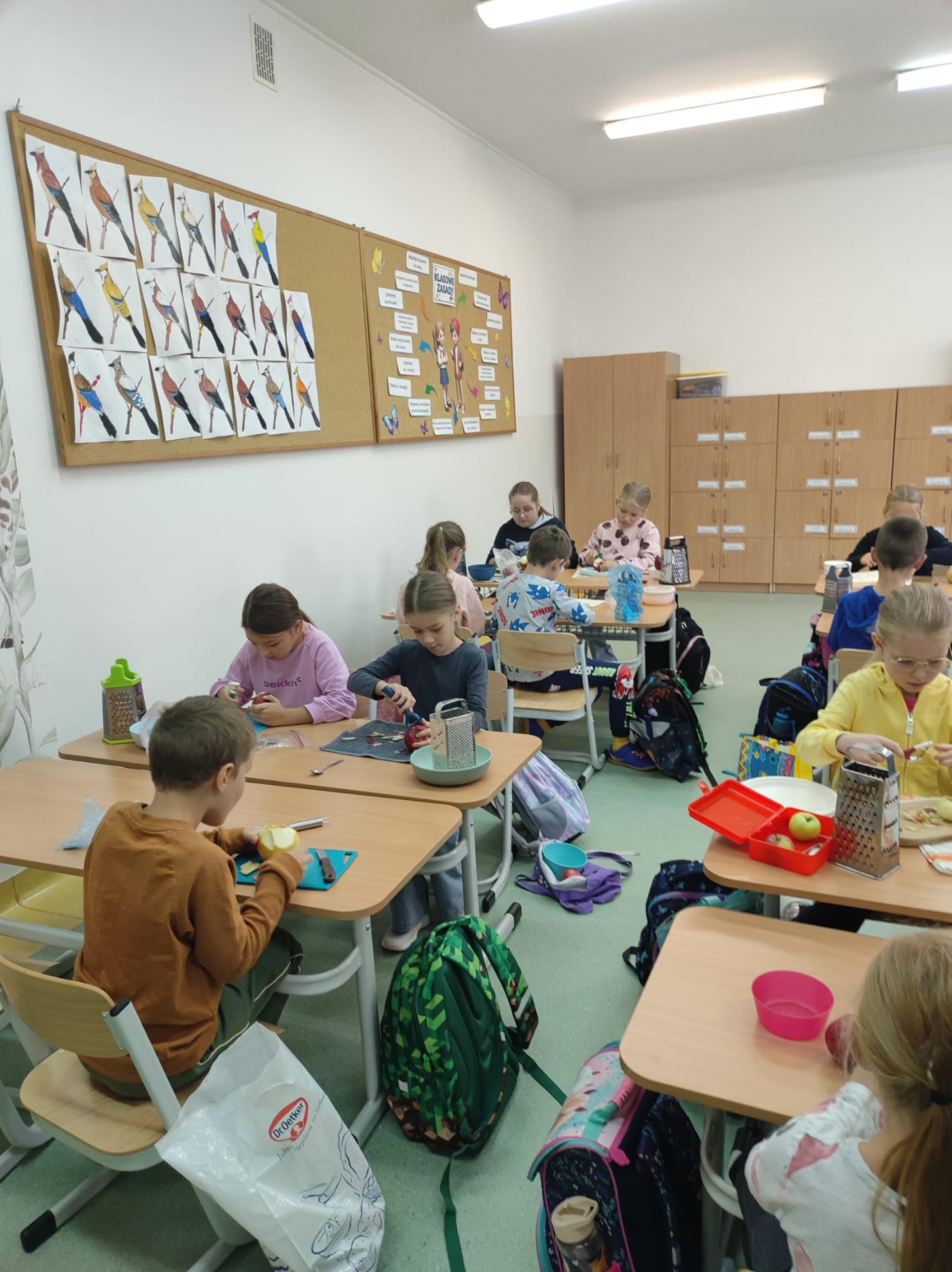 Klasa II zajęła się obieraniem i tarciem jabłek,