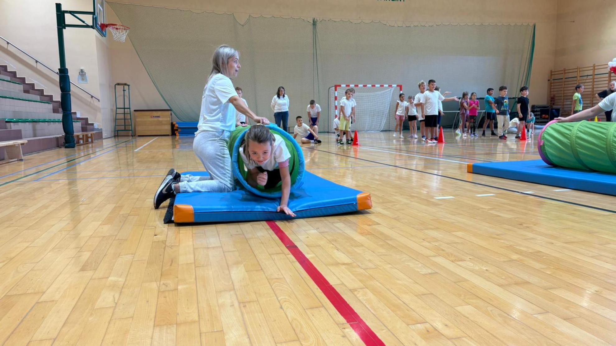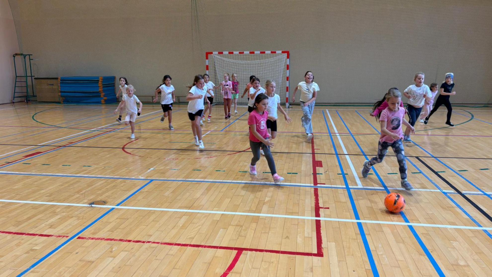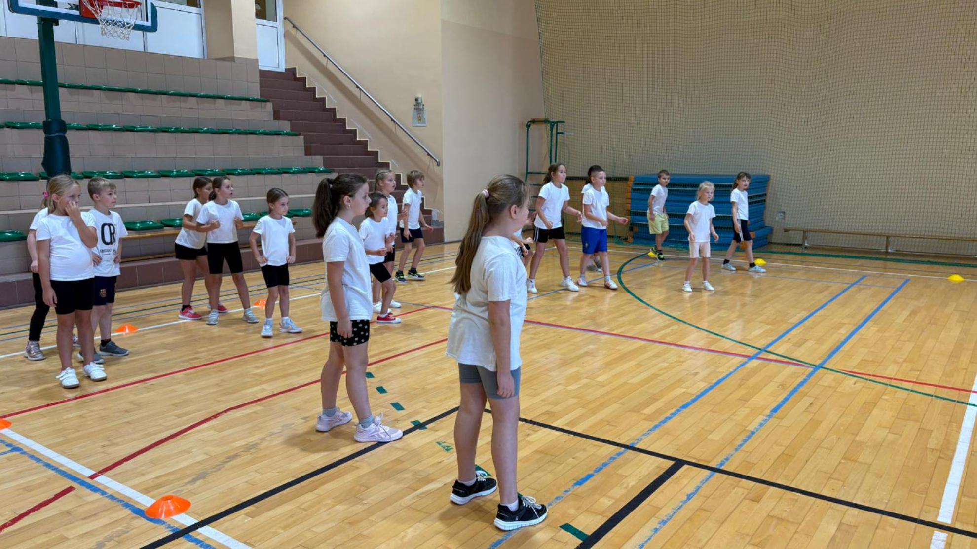 Zaczęliśmy od oficjalnego powitania i wspólnej rozgrzewki przy muzyce. Później było już tylko coraz ciekawiej: wyścigi rzędów, zwinnościowe tory przeszkód, emocjonujący turniej w dwa ognie i prawdziwe piłkarskie emocje podczas minimeczu!