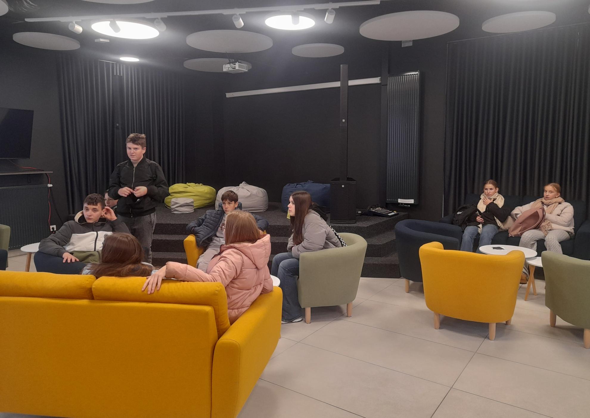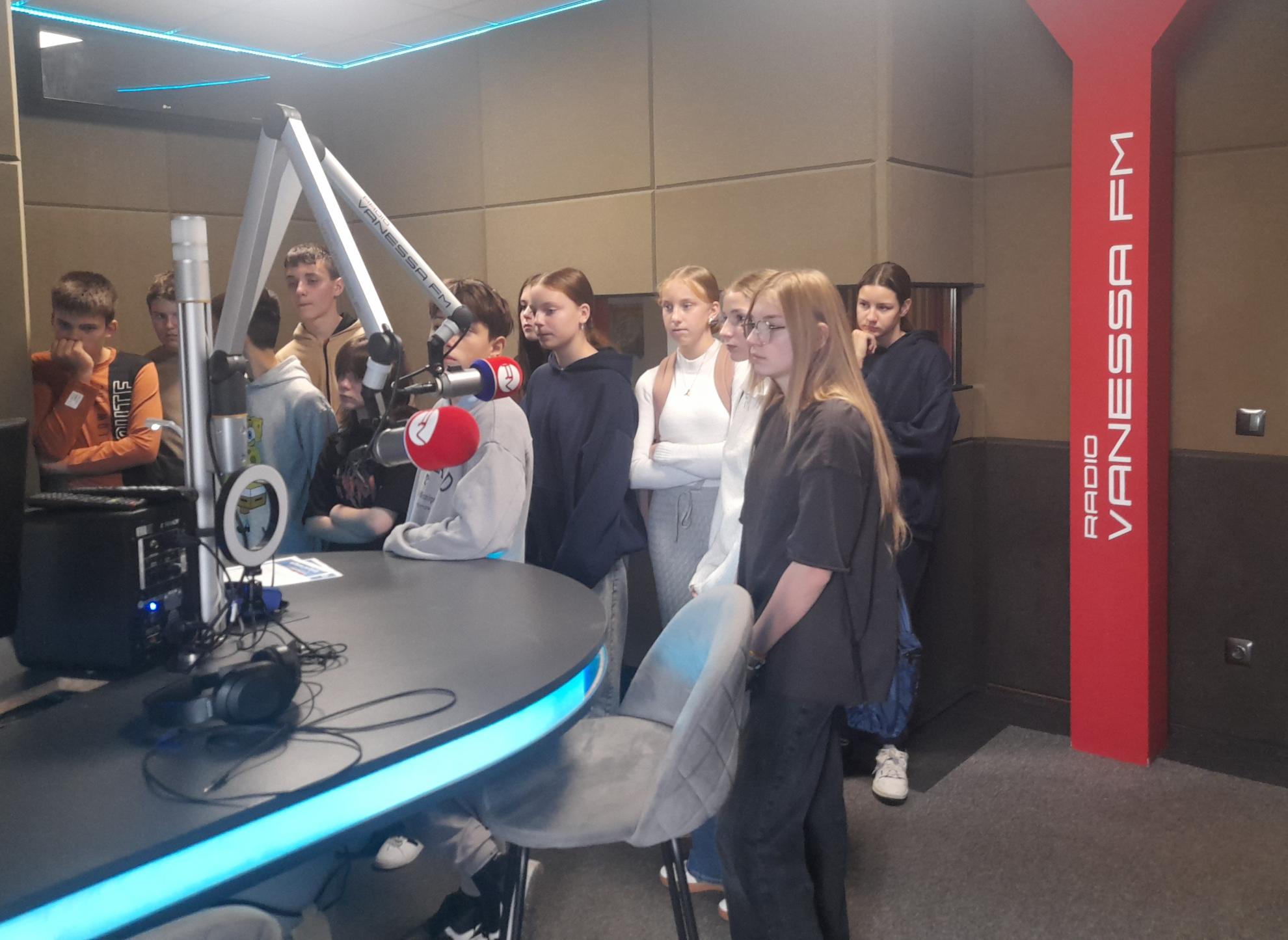 Kolejnym miejscem, które odwiedziliśmy, było Radio Vanessa. To lokalne radio, które odgrywa ważną rolę w informowaniu mieszkańców Raciborza i okolic. Uczniowie mieli okazję zobaczyć, jak wygląda praca w studiu radiowym, dowiedzieć się, jak powstają audycje i poznać tajniki emisji na żywo. To była świetna okazja, by zrozumieć, jak ważne są lokalne media w codziennym życiu społeczności.