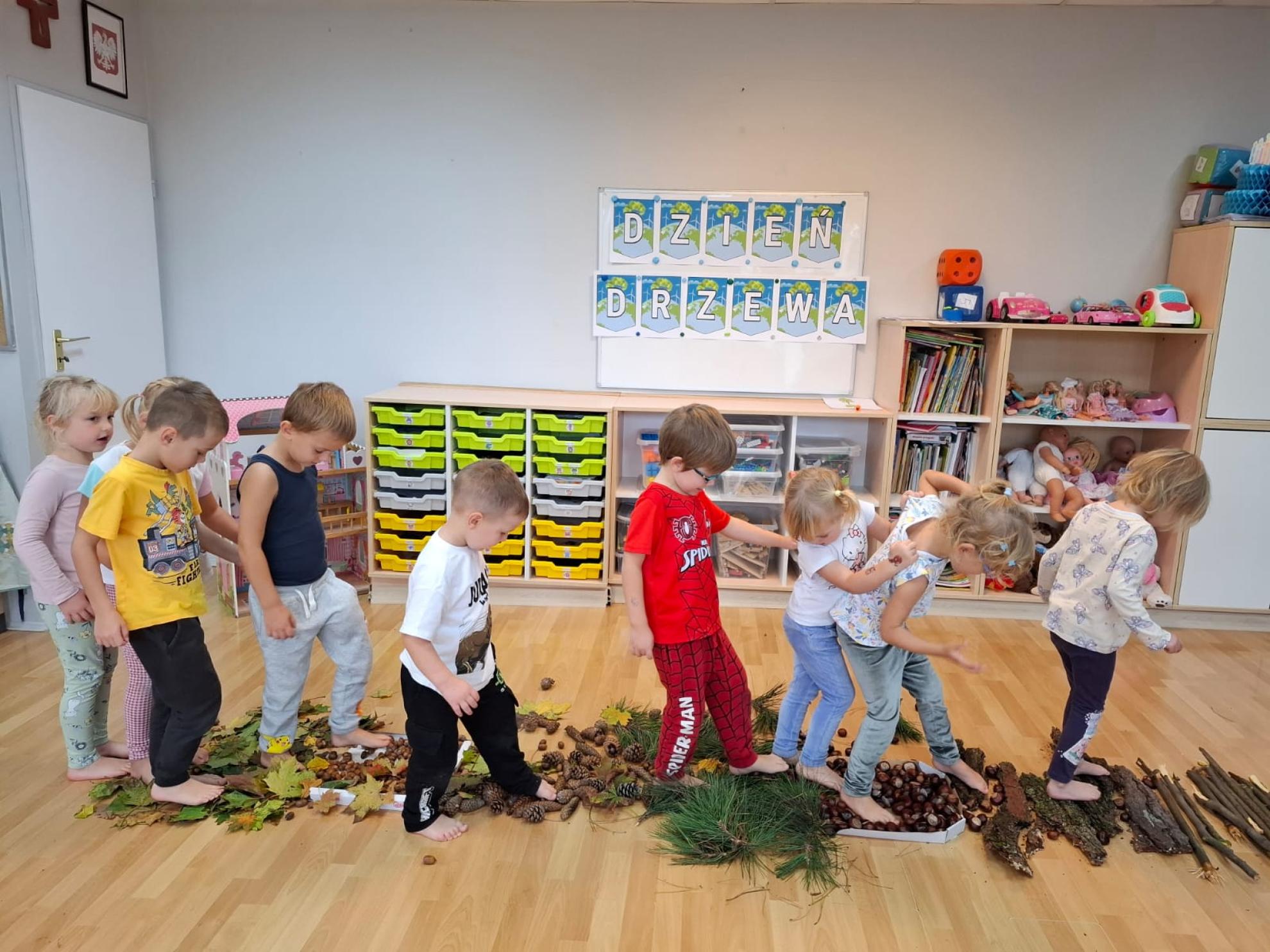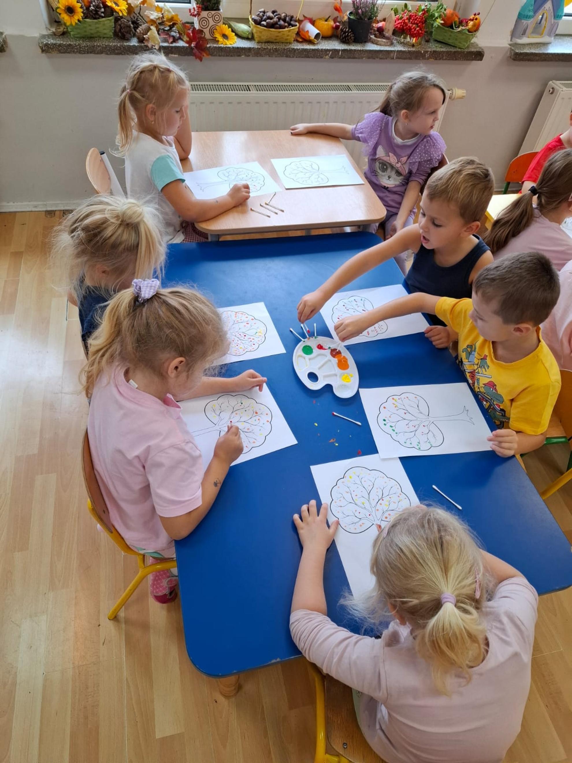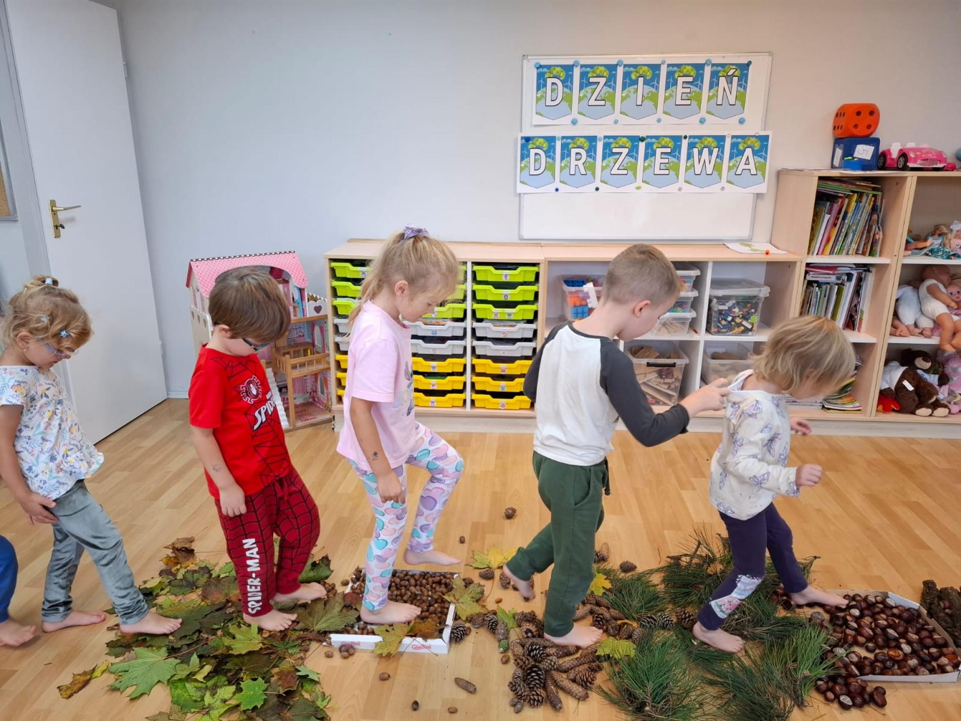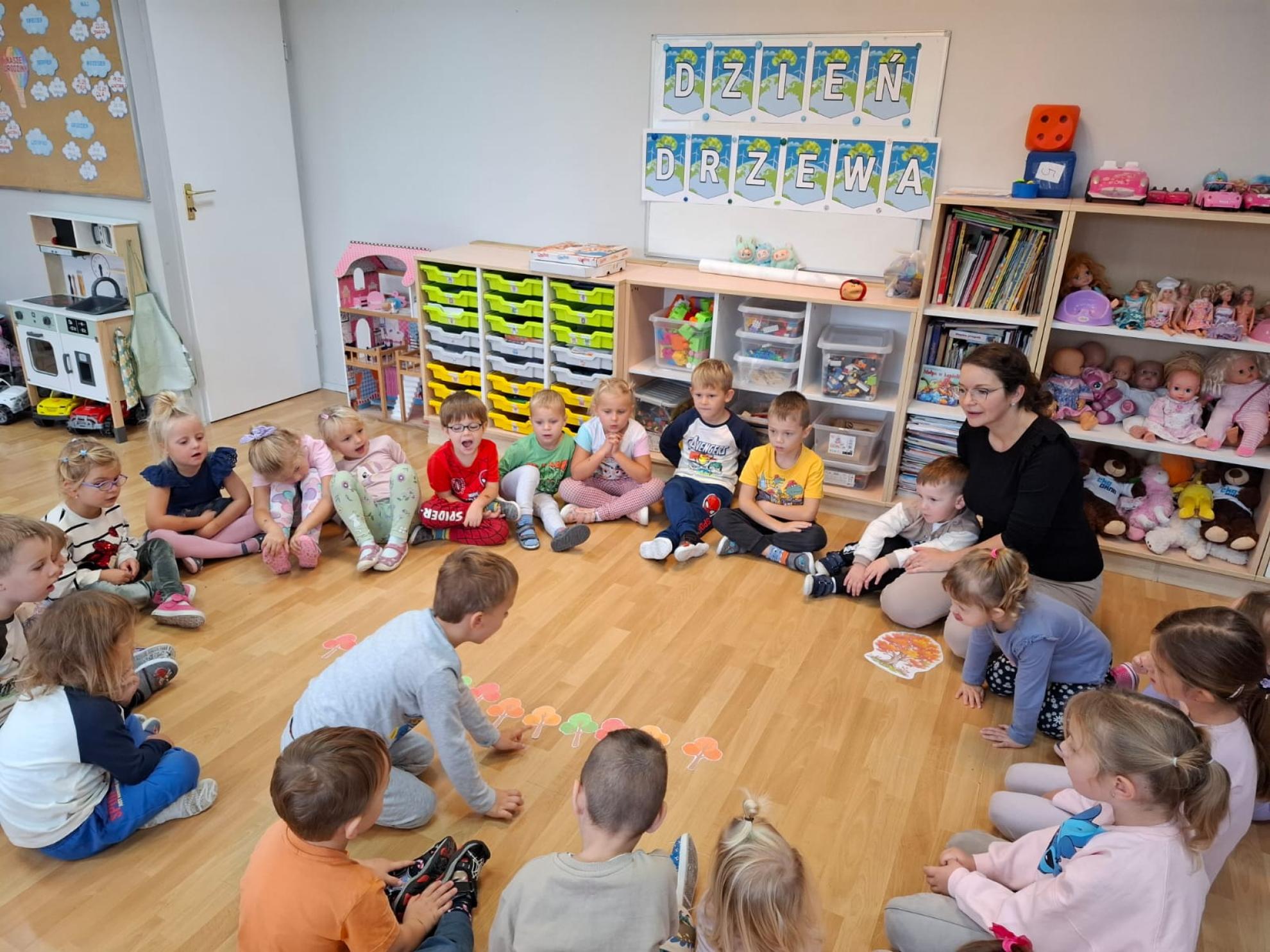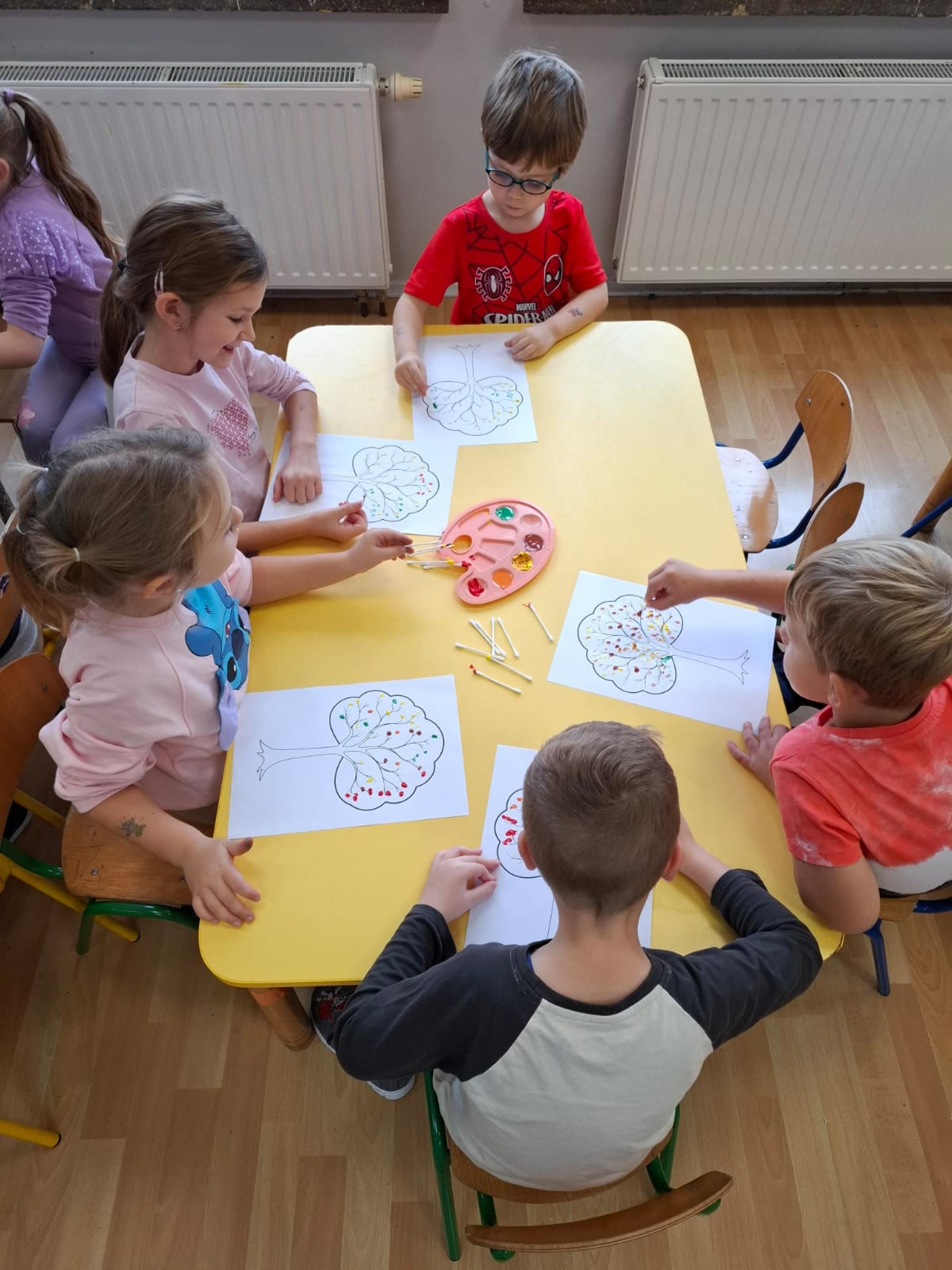 Dzieci dowiedziały się, dlaczego drzewa są tak ważne dla ludzi, zwierząt i całej Ziemi. Wspólnie rozmawialiśmy o tym, jak dbać o przyrodę, rozpoznawaliśmy gatunki drzew, a także świetnie się bawiliśmy podczas układania kolorowych drzew w kolejności wg wzoru, stemplowalismy za pomocą farby i klocków kolorowe liście na ogromnej gałązce