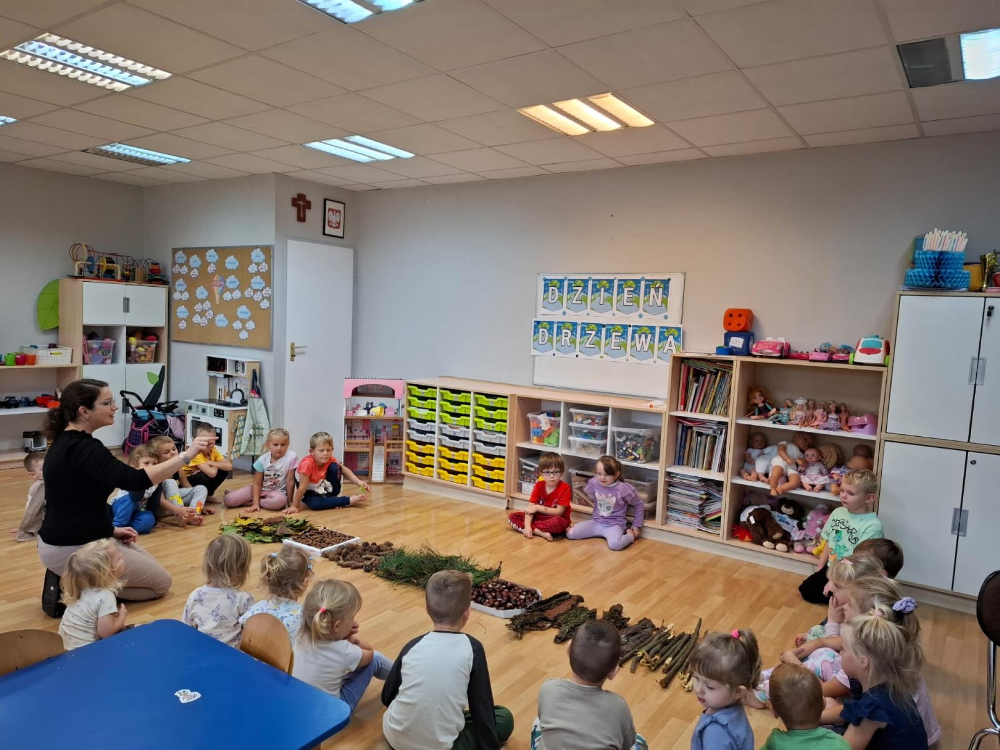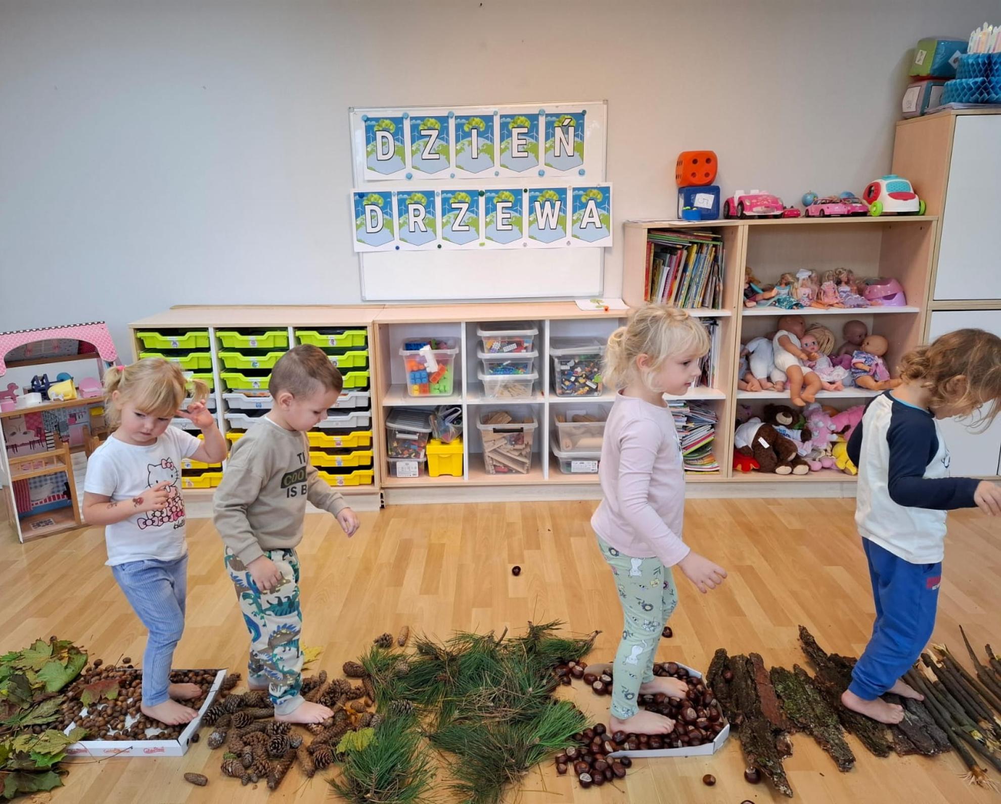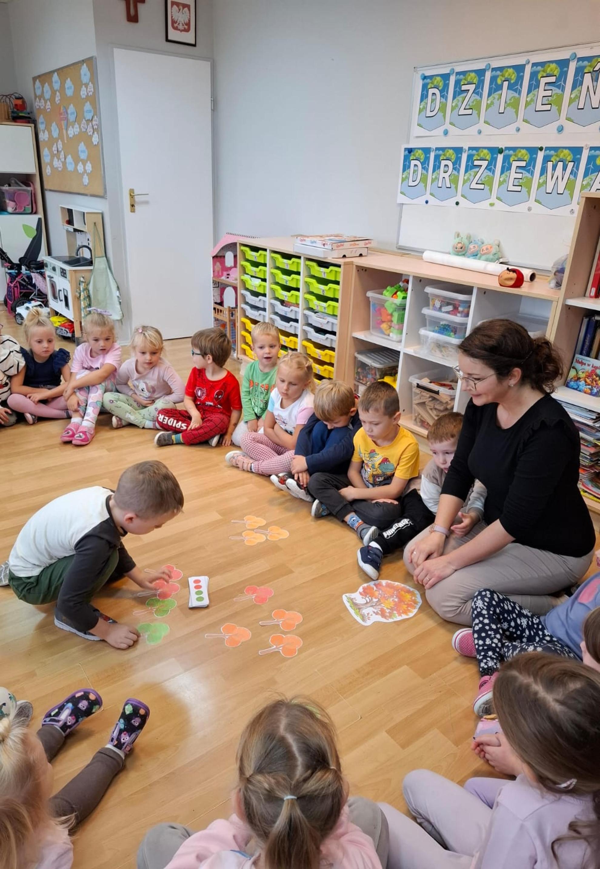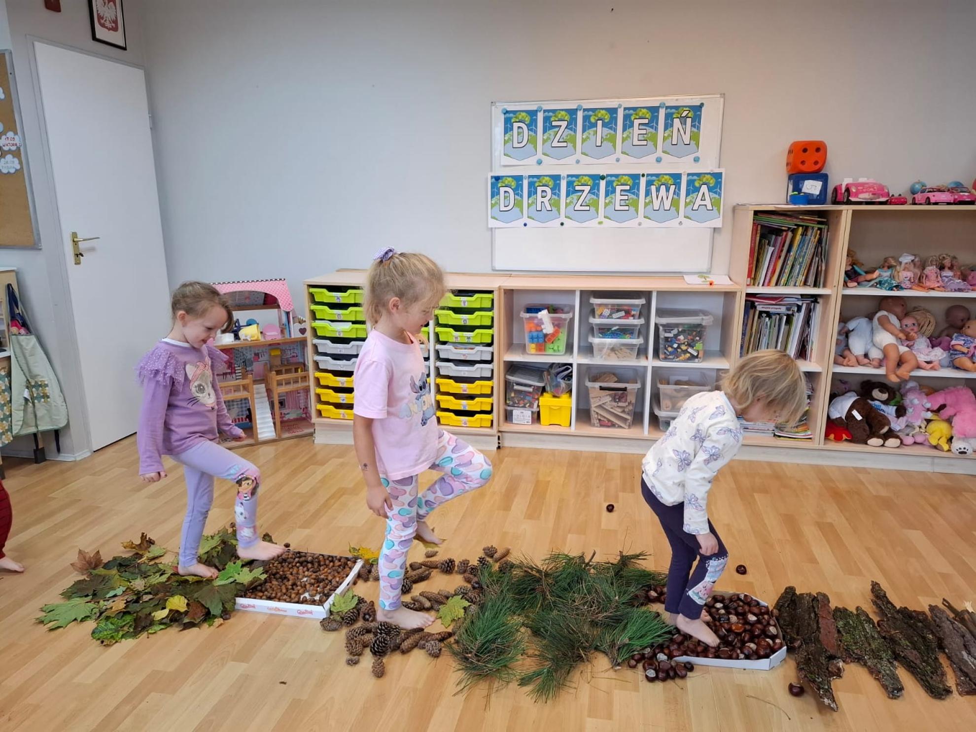 Dzieci dowiedziały się, dlaczego drzewa są tak ważne dla ludzi, zwierząt i całej Ziemi. Wspólnie rozmawialiśmy o tym, jak dbać o przyrodę, rozpoznawaliśmy gatunki drzew, a także świetnie się bawiliśmy podczas układania kolorowych drzew w kolejności wg wzoru, stemplowalismy za pomocą farby i klocków kolorowe liście na ogromnej gałązce