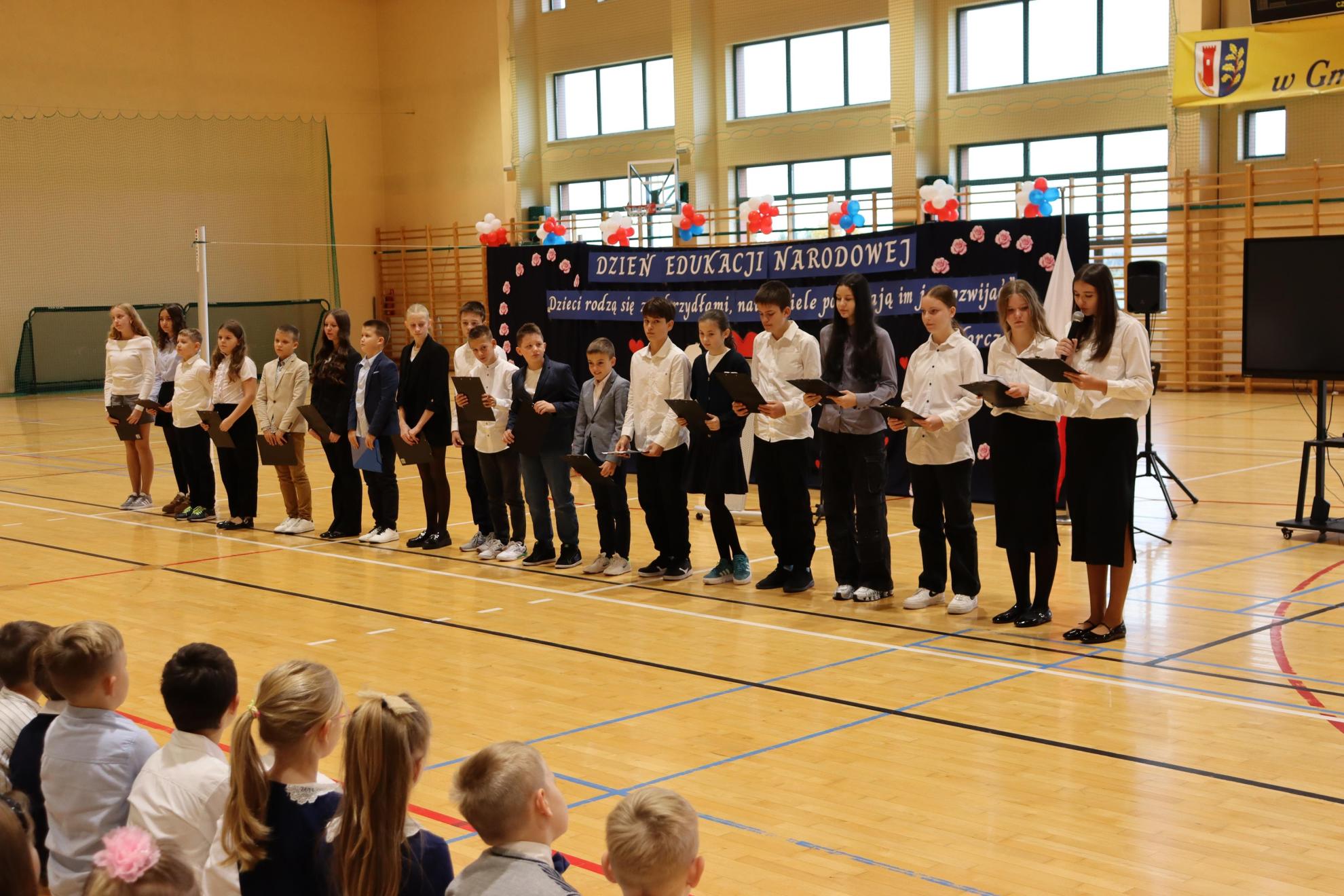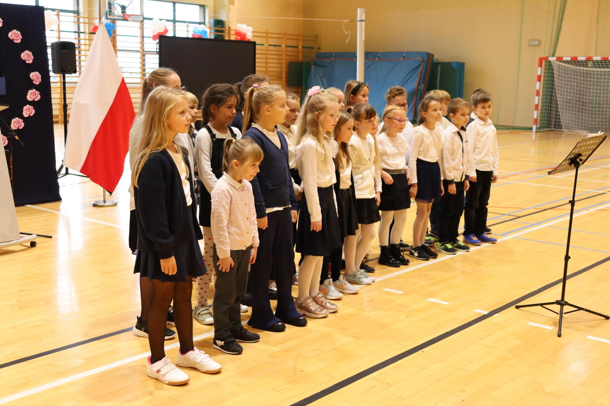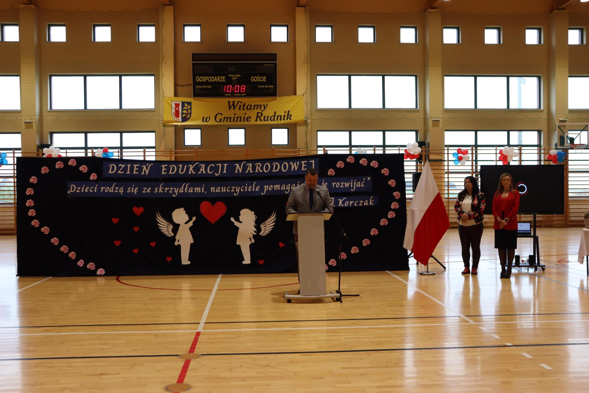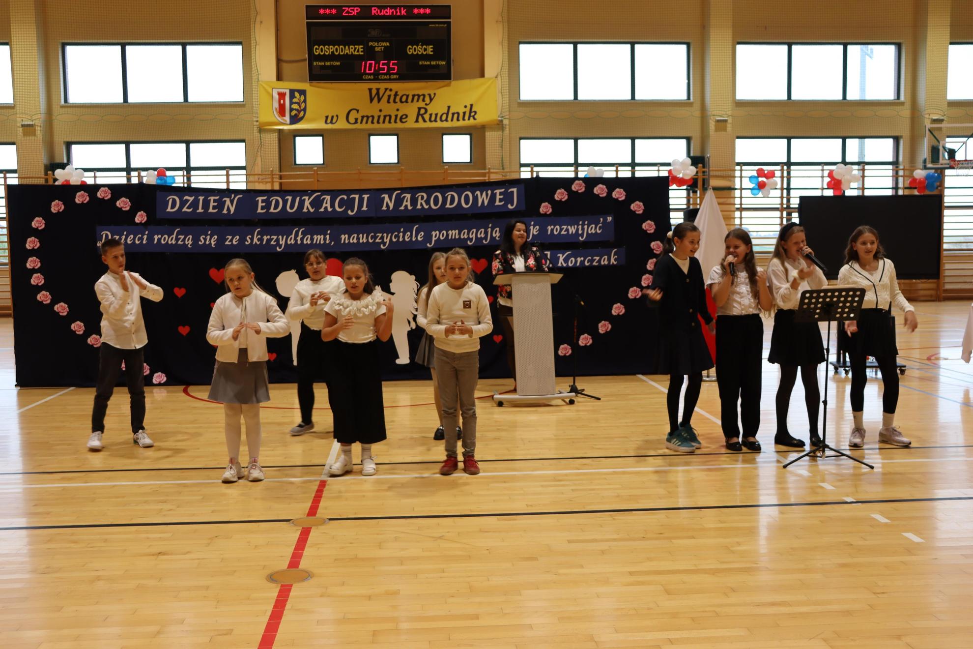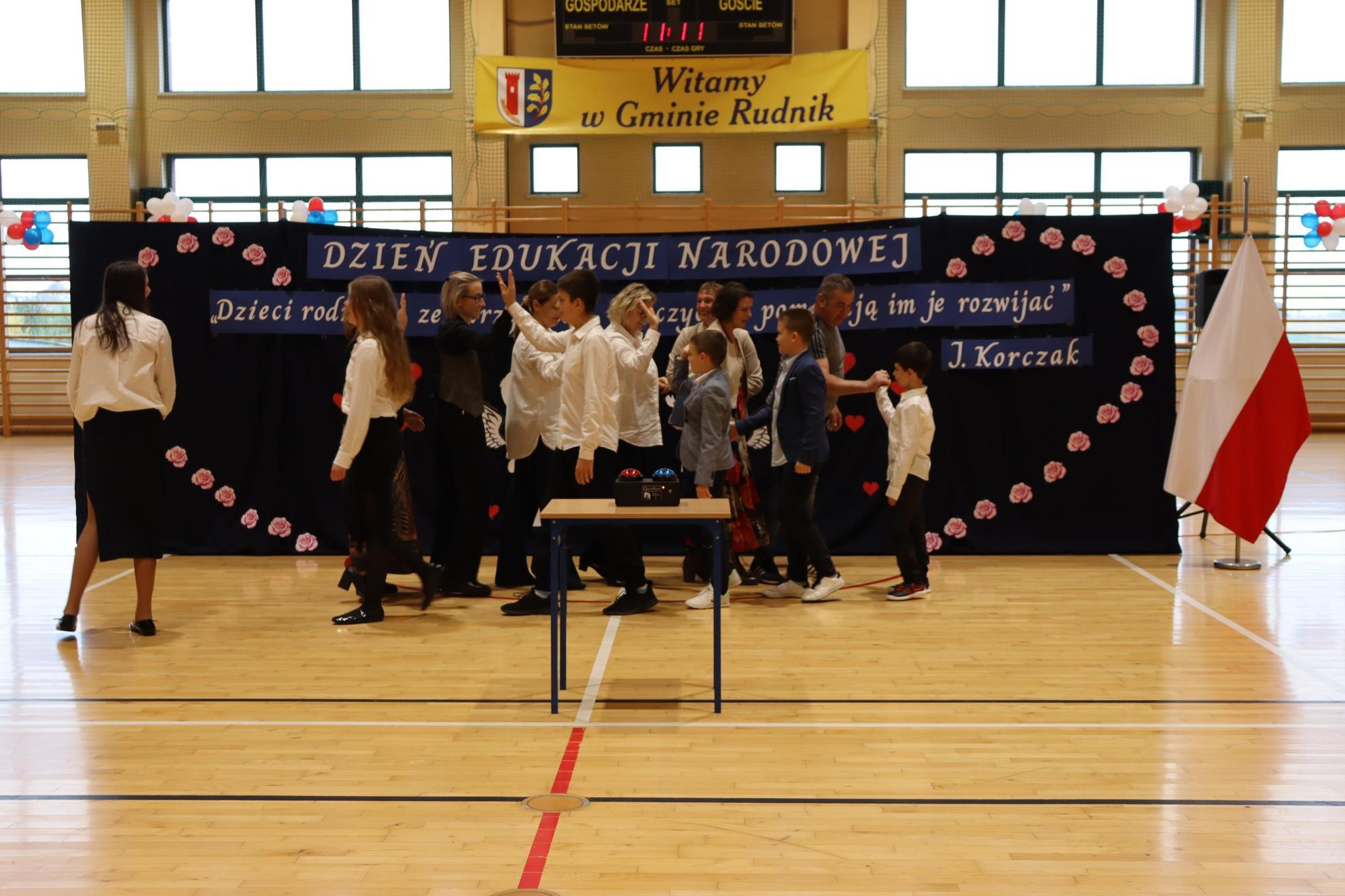 Po mszy odbyła się uroczysta akademia, która rozpoczęła się od powitania przez Panią Dyrektor Weronikę Żymełkę oraz Zastępcę Wójta Gminy Tomasza Kruppę, którzy złożyli serdeczne życzenia wszystkim pracownikom szkoły, dziękując im za codzienny trud, zaangażowanie i wychowywanie młodego pokolenia. Dzieci zaprezentowały swoje talenty muzyczne oraz recytowały wiersze dedykowane wszystkim pracownikom naszej szkoły. Występy uczniów wywołały wiele uśmiechów i wzruszeń, a ich szczere podziękowania były najlepszym wyrazem wdzięczności dla nauczycieli.