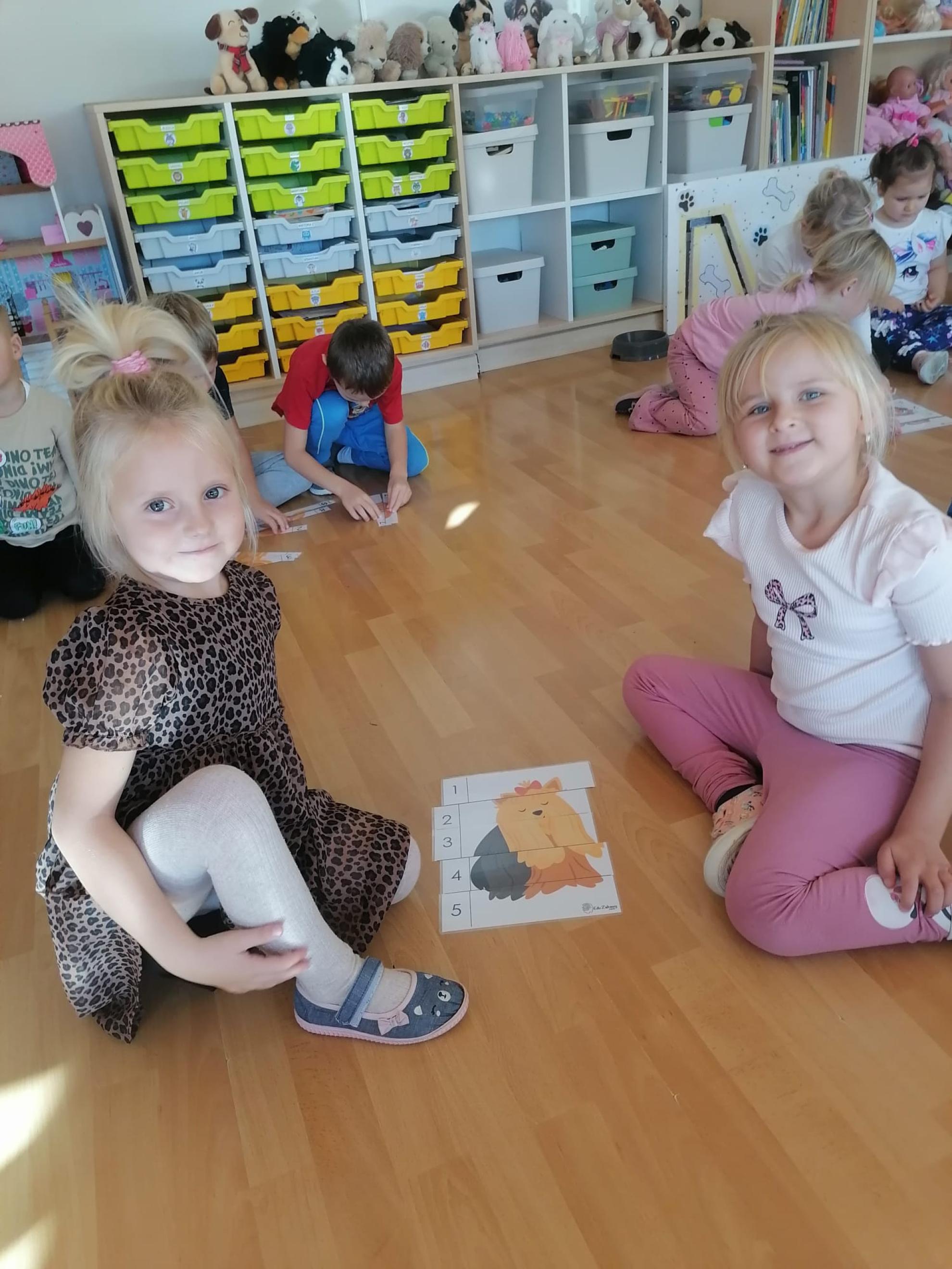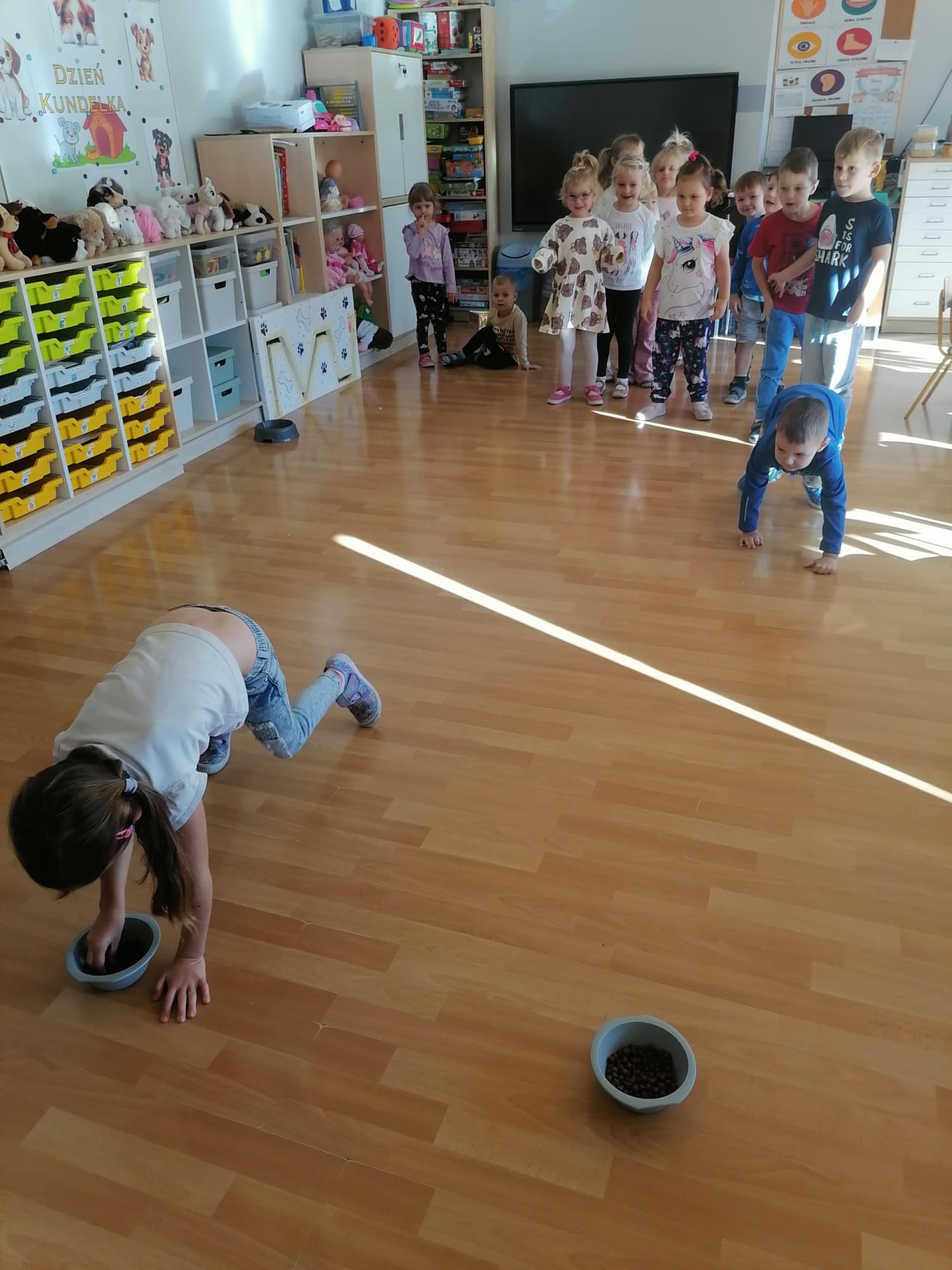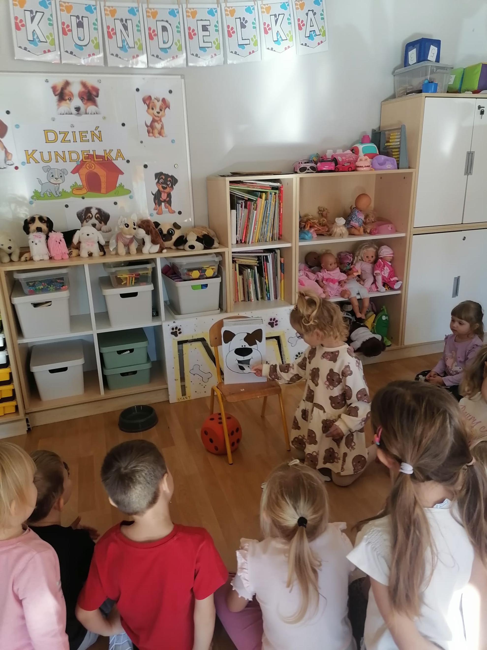 Dzieci wysłuchały bajki, której bohaterem był pies Smutasek. Chętnie uczestniczyły w różnych zabawach ruchowych, sprawnościowych i matematycznych oraz wykonały pracę plastyczną. Był to mile spędzony czas przepełniony zabawą i pozytywną energią.