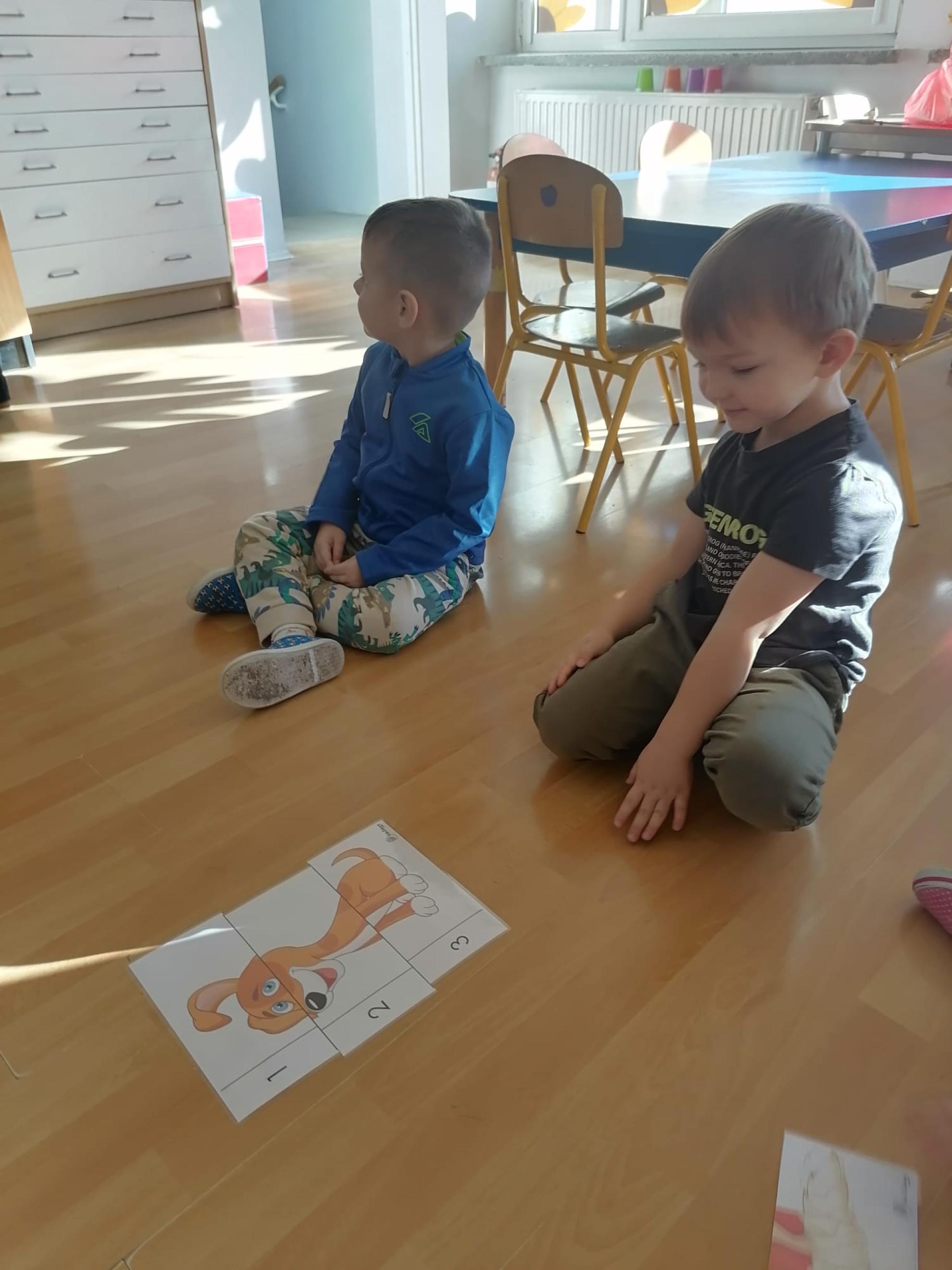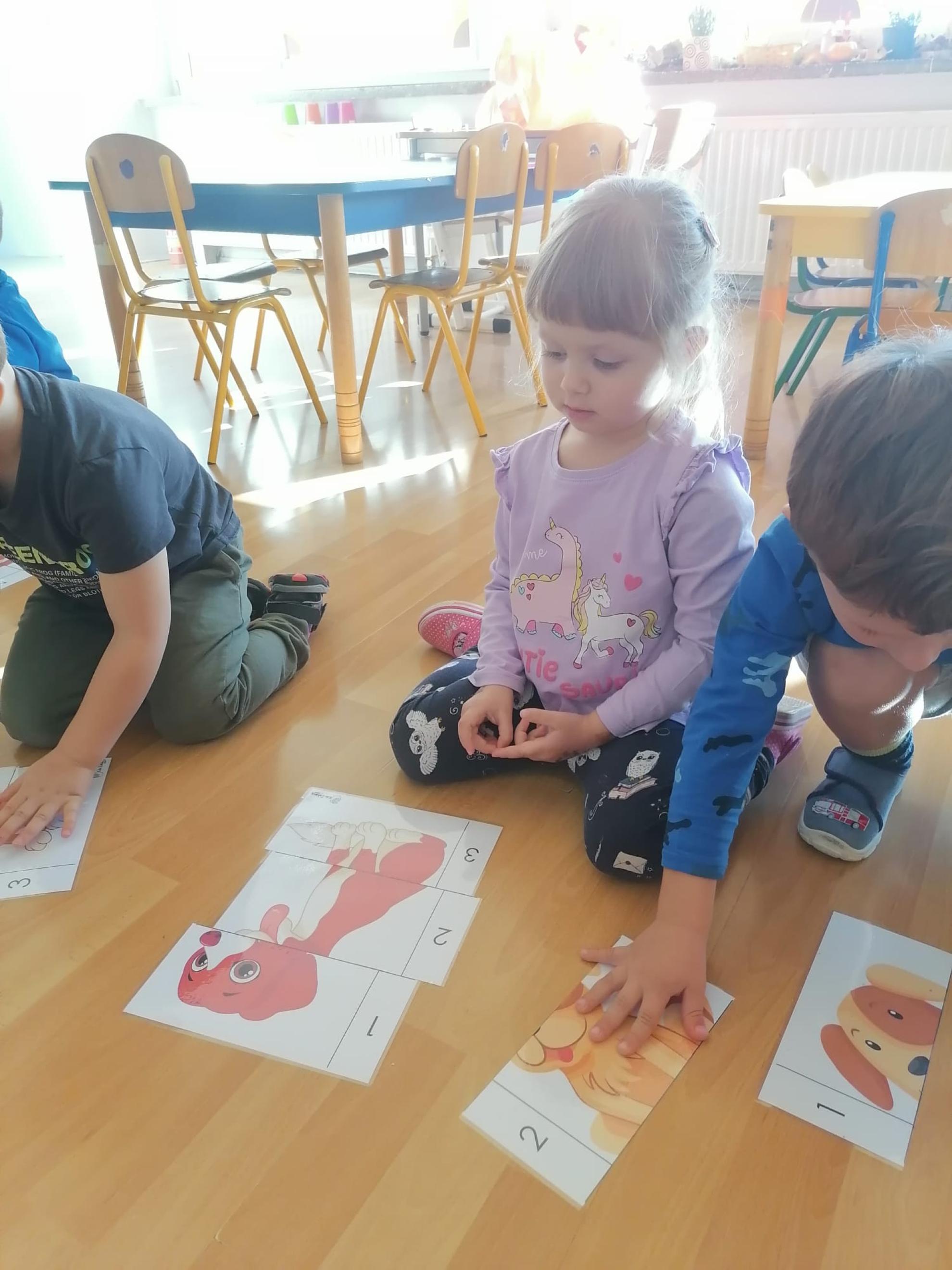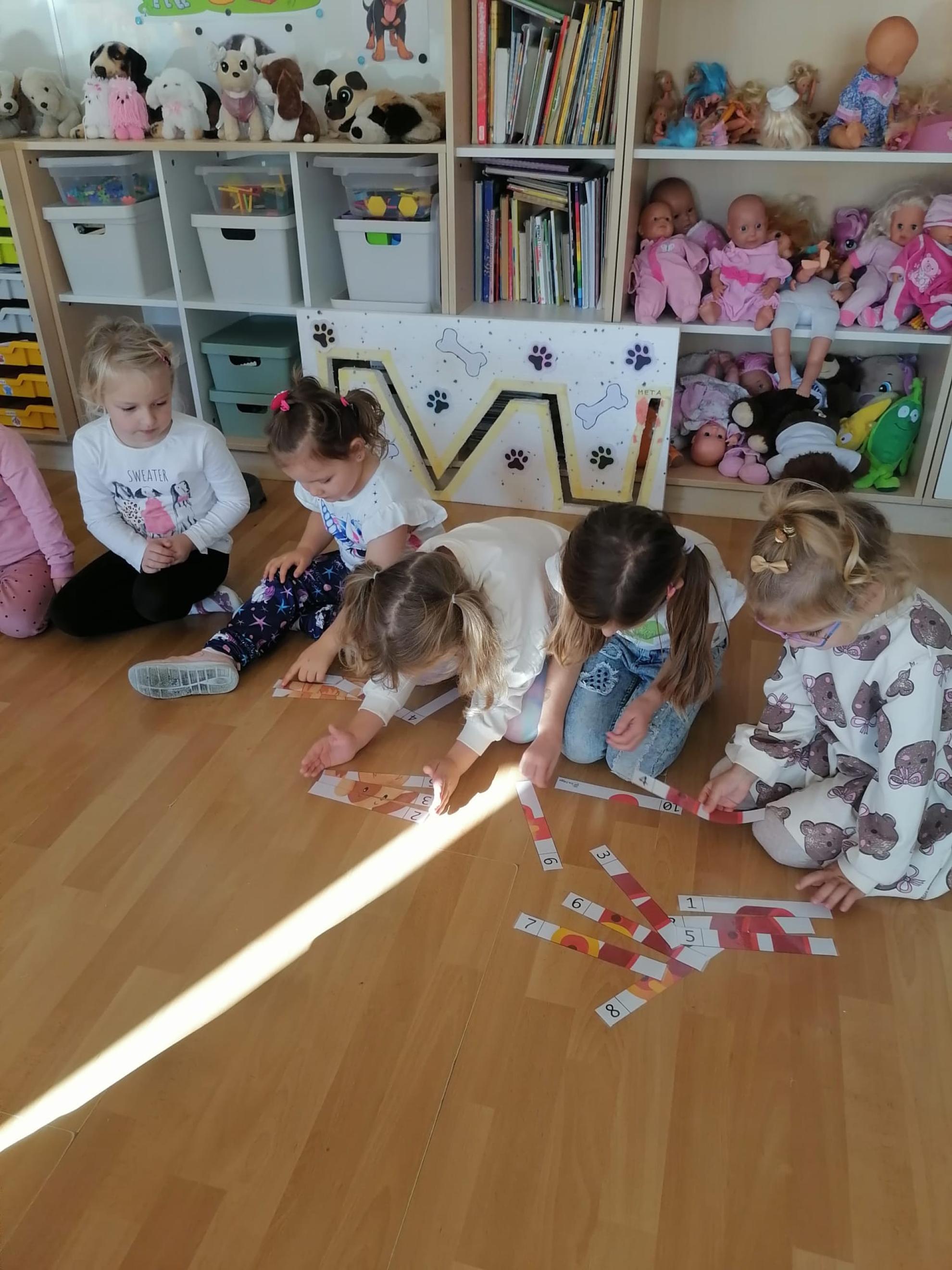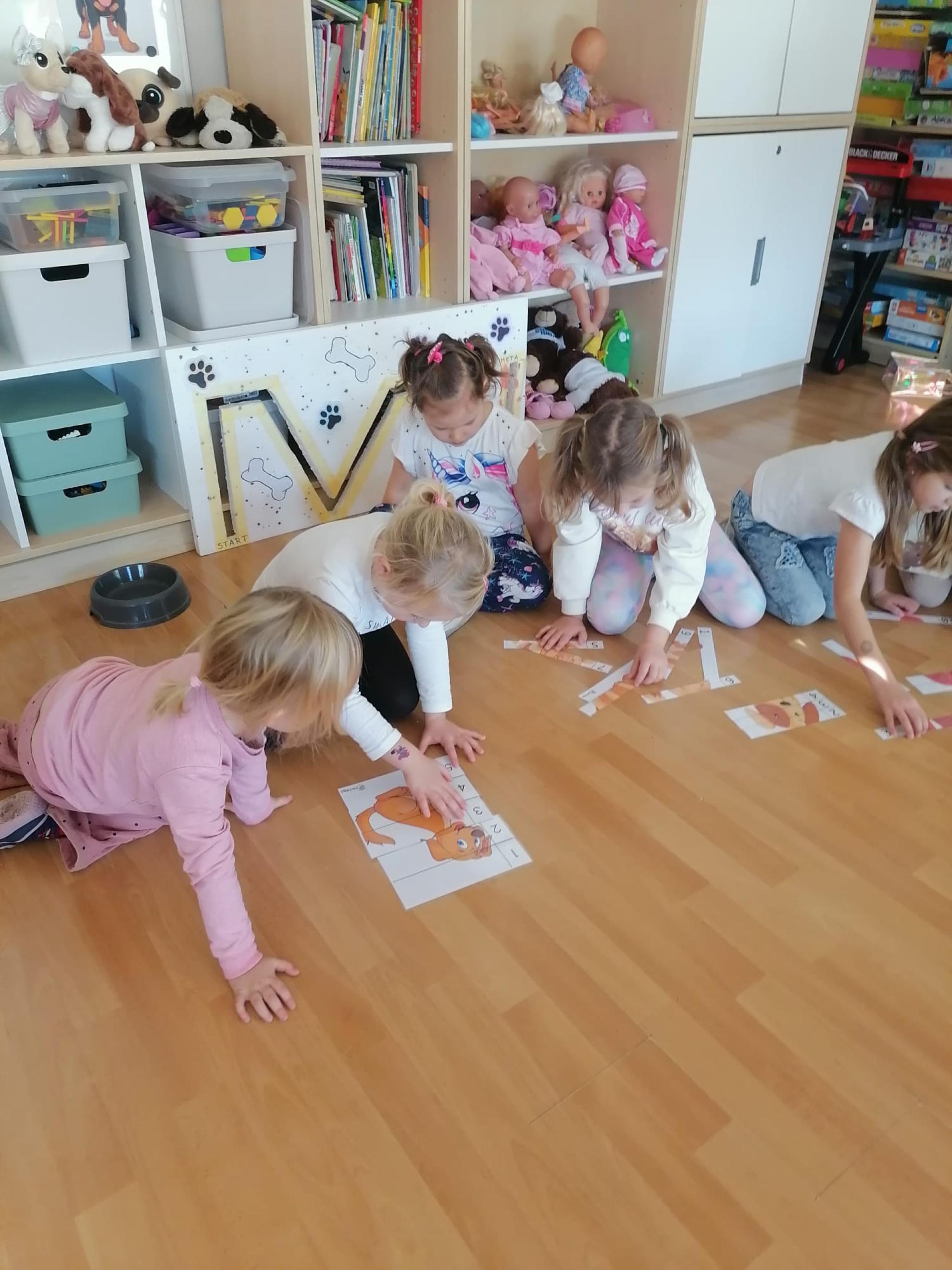 Dzieci wysłuchały bajki, której bohaterem był pies Smutasek. Chętnie uczestniczyły w różnych zabawach ruchowych, sprawnościowych i matematycznych oraz wykonały pracę plastyczną. Był to mile spędzony czas przepełniony zabawą i pozytywną energią.