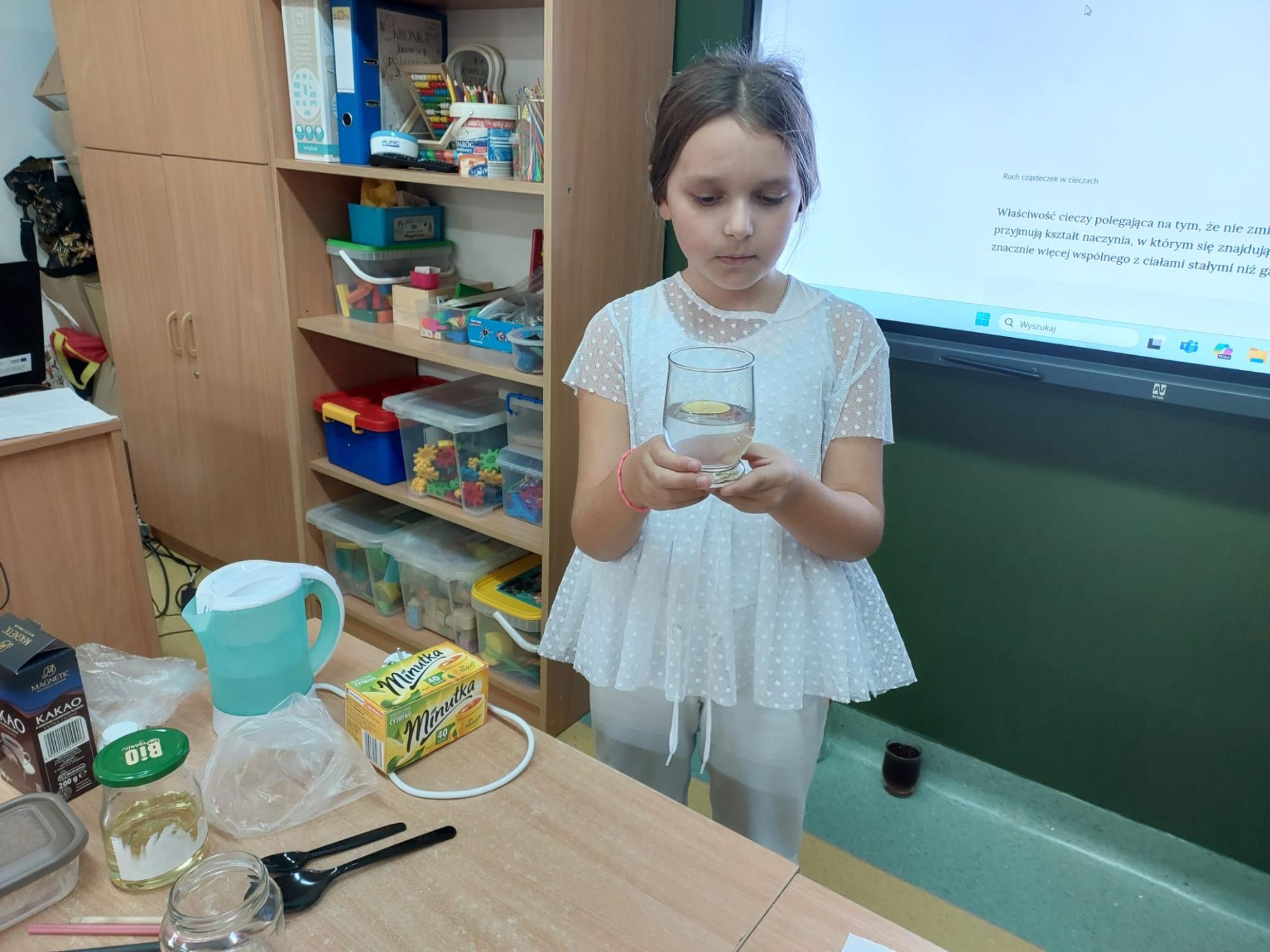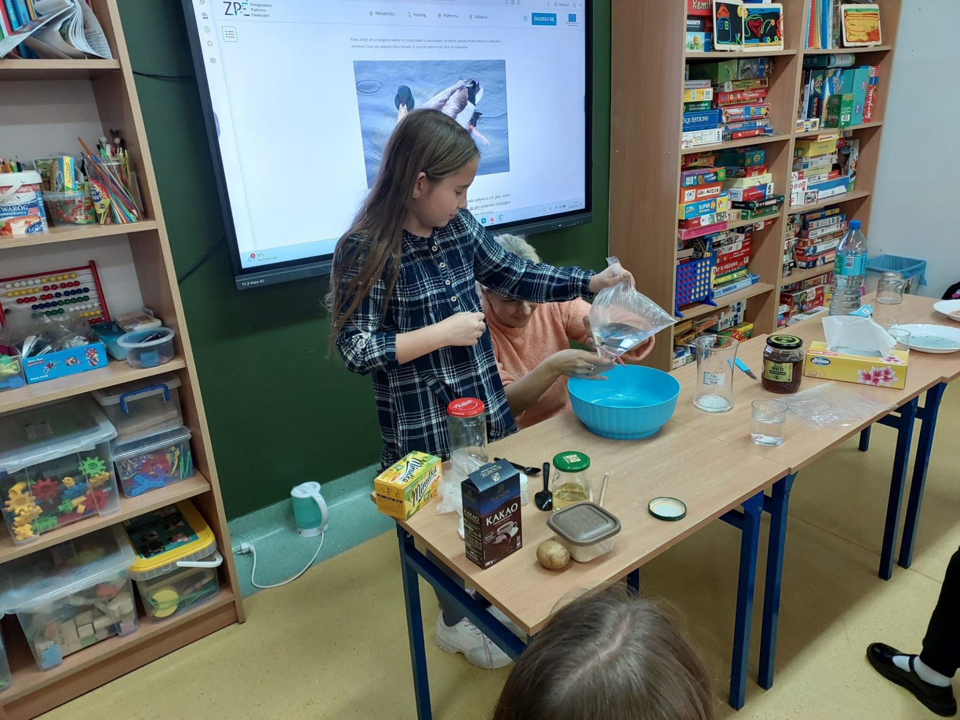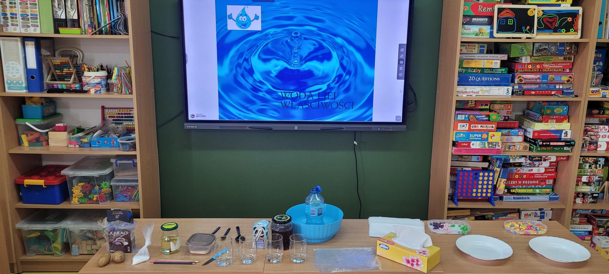 We wtorek 28.10 odbyły się kolejne innowacyjne zajęcia świetlicowe z cyklu „W świecie eksperymentów” - nauka poprzez zabawę. Nauczycielki wykorzystały wodę, aby zademonstrować budowę cieczy i ich właściwości. Uczniowie klas I-IV czynnie uczestniczyli w doświadczeniach poświęconych rozpuszczalności substancji, napięciu powierzchniowemu cieczy i zjawiskom dyfuzji. Prowadzili obserwacje i stawiali hipotezy, weryfikowali je i wyciągali wnioski. Szczególnie spodobały im się eksperymenty z magicznym ziemniakiem, cukierkową tęczą oraz „dziurawą” niekapiącą butelką. Nauczycielki przedstawiły również prezentację podsumowującą zdobytą wiedzę oraz przeprowadziły quiz. Uczestnicy innowacji byli bardzo aktywni, burzliwie dyskutowali
