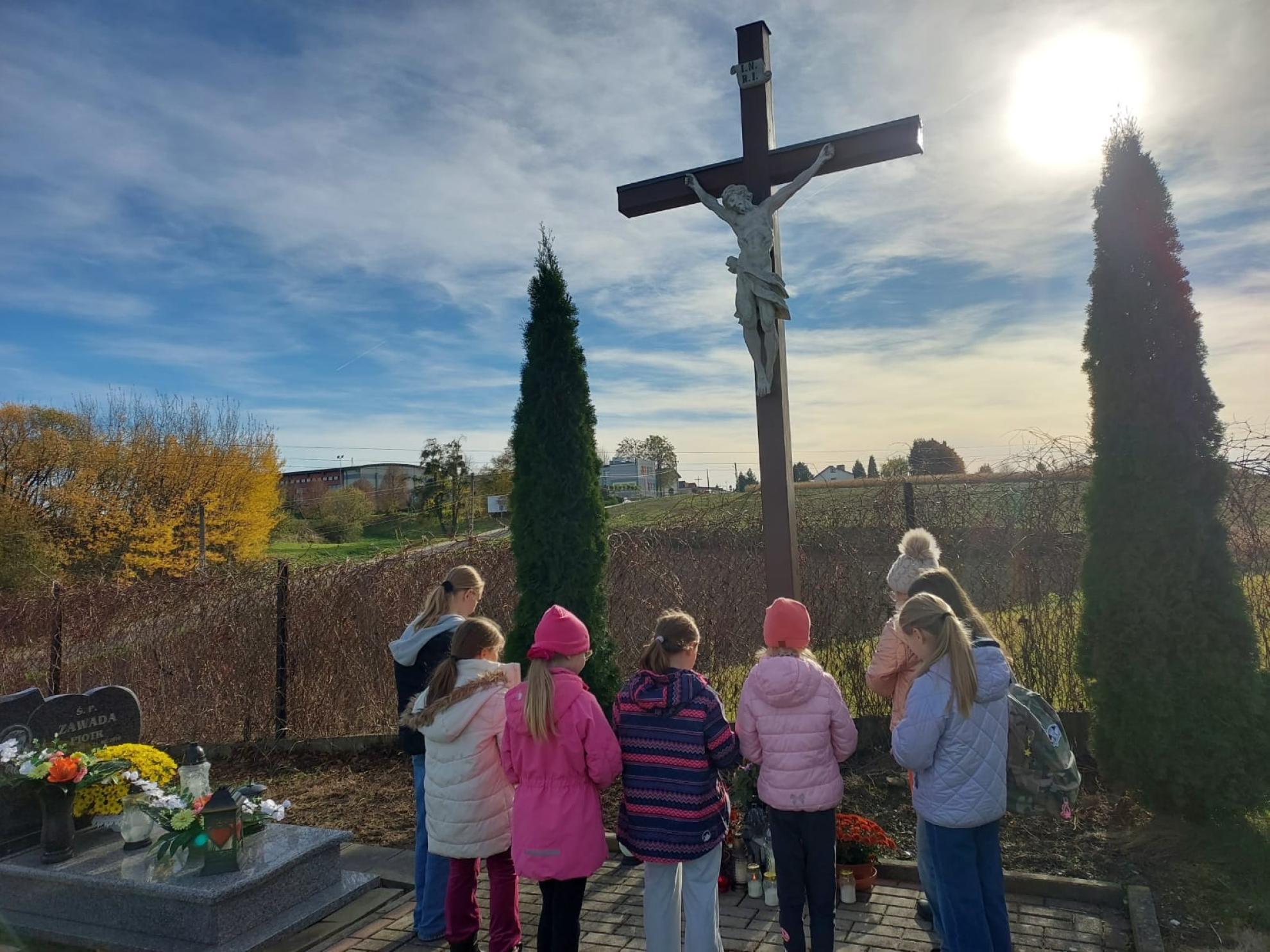 Dzisiaj, 31 października, dzieci ze świetlicy szkolnej odwiedziły cmentarz parafialny, aby zapalić znicze i w ciszy wspomnieć tych, którzy zapisali się w historii naszej społeczności.