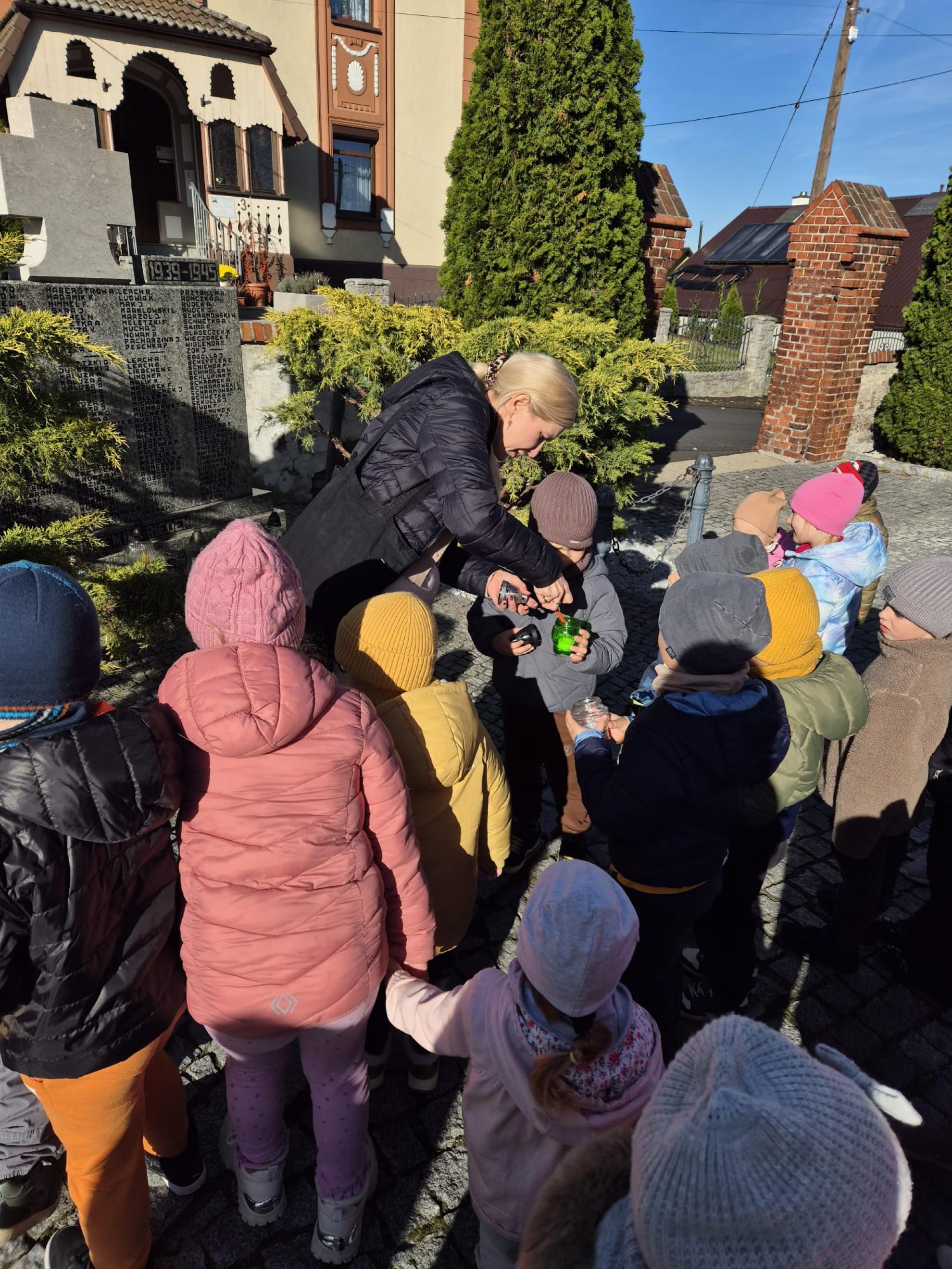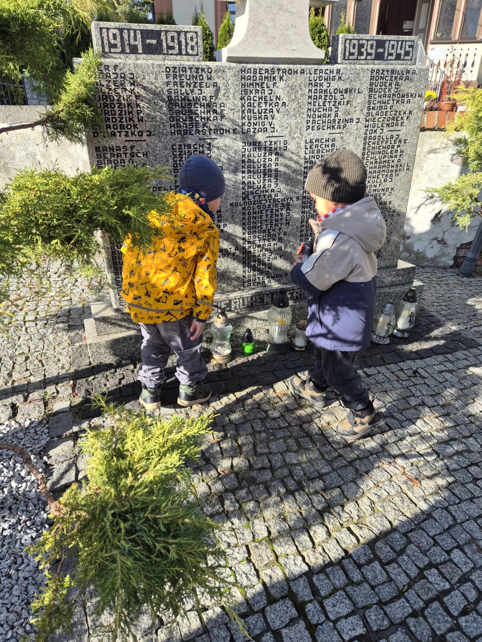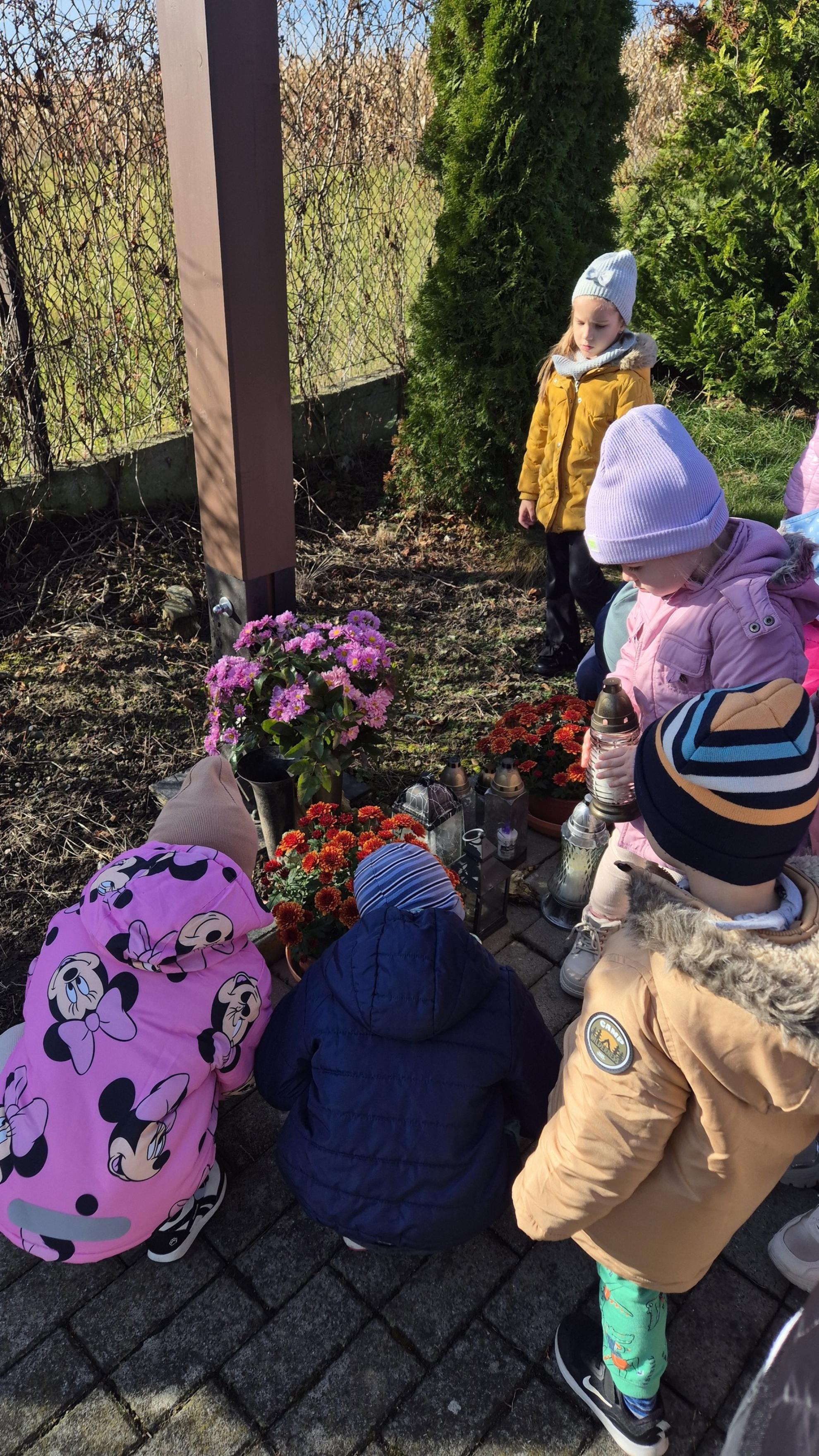 Dzieci z dużym skupieniem wysłuchały informacji o miejscach pamięci i tych, którzy polegli, oddając swoje życie dla naszej wolności. Znicze zostały również zapalone na znajdujących się na cmentarzu grobach nieznanych żołnierzy.