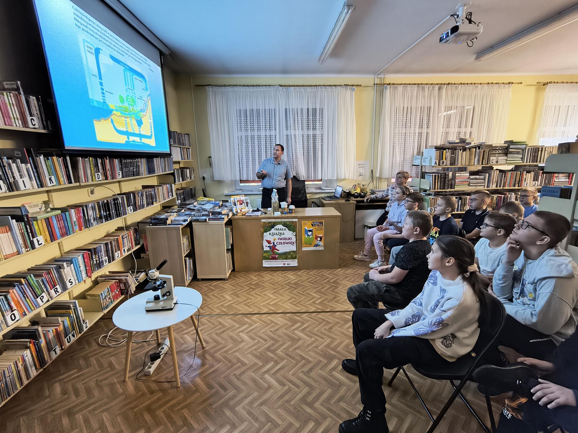 W dniu 3.11.2025 uczniowie kl. V wraz z wychowawczynią Kariną Puls wzięli udział w zajęciach na zaproszenie Gminnej Biblioteki Publicznej w Rudniku. Lekcję pod tytułem "Skąd się bierze woda?" przeprowadził pan mgr inż. Tomasz Kostka, kierownik Zakładu Wodociągów i Usług Komunalnych w Rudniku. Uczniowie dowiedzieli się m.in. w jaki sposób woda jest przekazywana do domów i jak odprowadzane są ścieki, dowiedzieli się gdzie w naszej gminie znajdują się ujęcia wody, w jaki sposób można filtrować wodę, mogli też zobaczyć wodę pod mikroskopem. Nie zabrakło też ciekawostek z całego świata dotyczących wody.