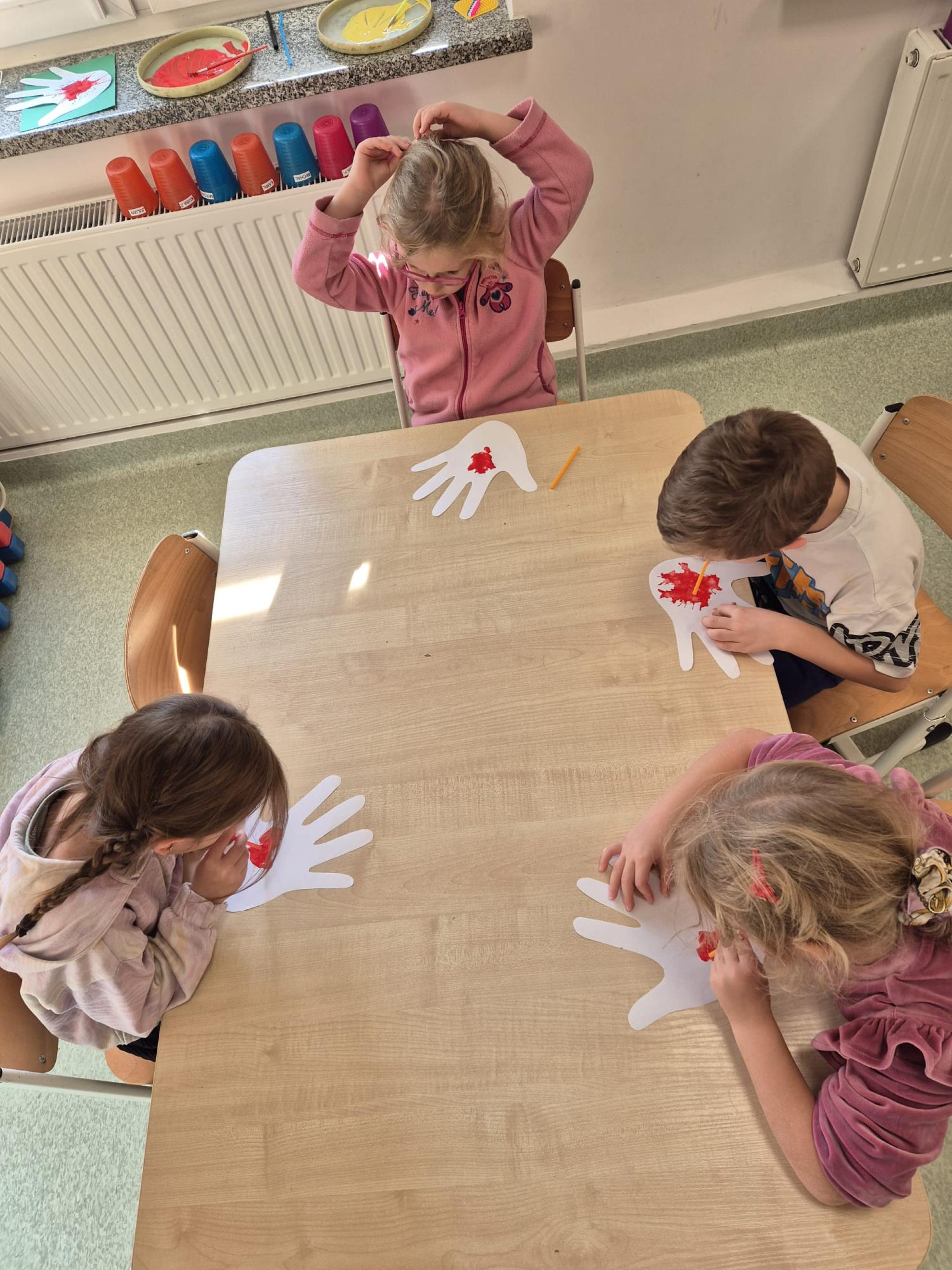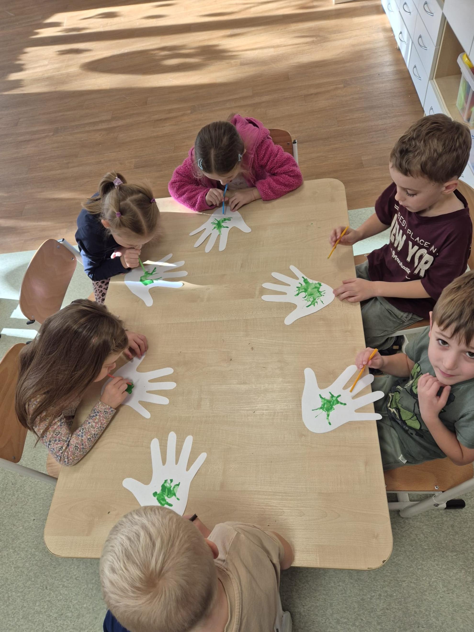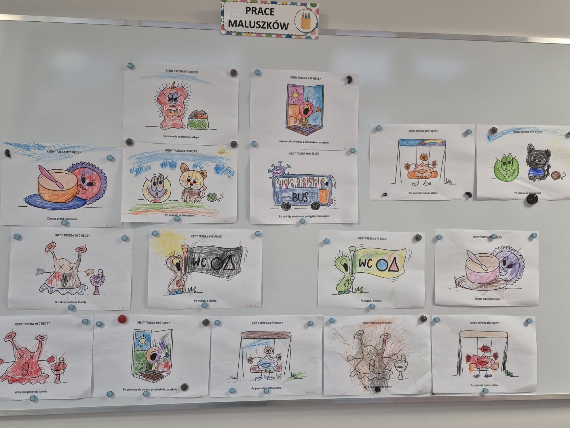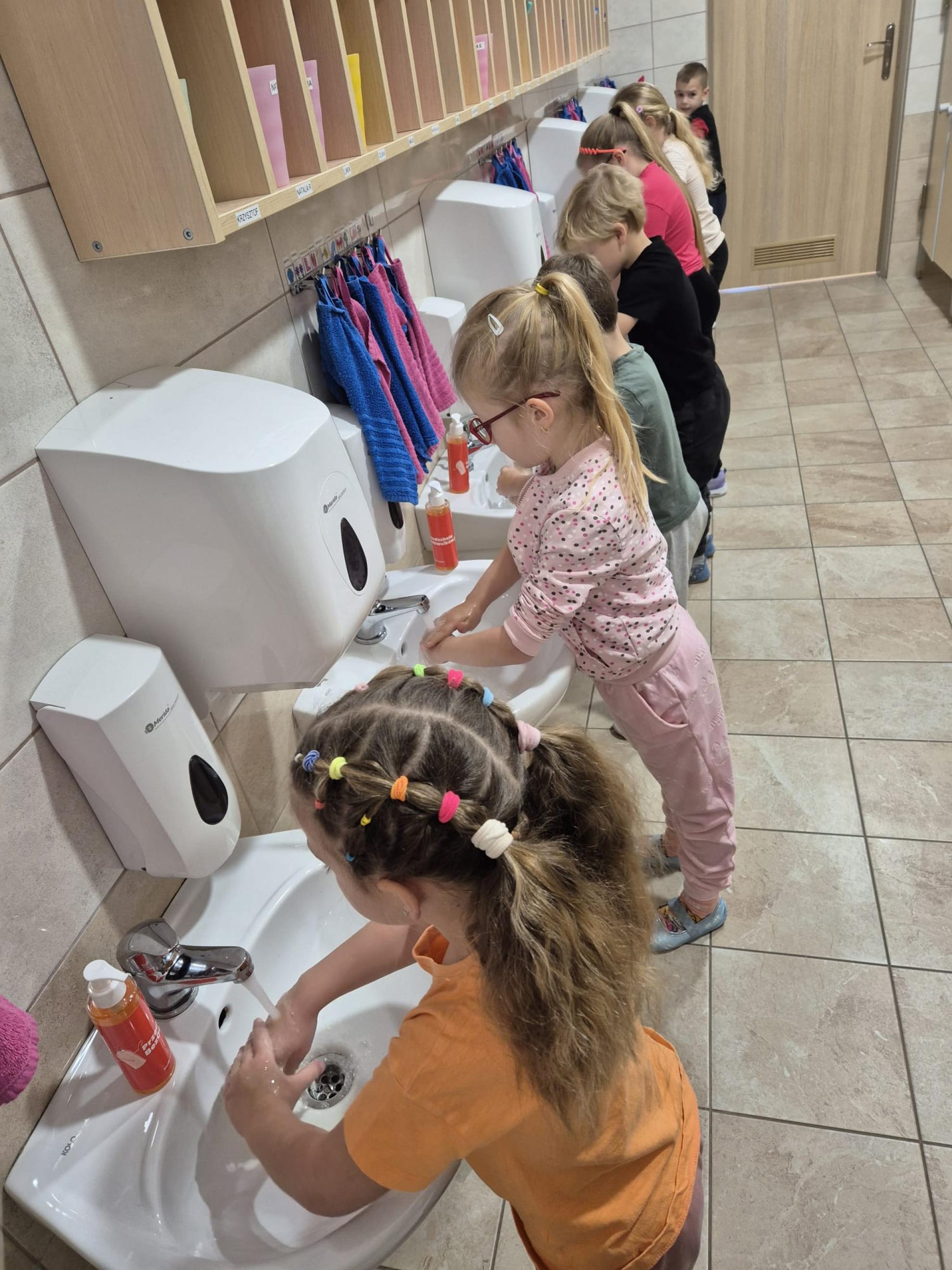 Podczas zajęć dzieci uczestniczyły w warsztatach edukacyjnych,dowiedziały sie kiedy należy myć ręce,w jaki sposób należy to dokładnie wykonać, stworzyły piękne prace plastyczne oraz pod okiem swoich Pań przeniosły usłyszaną teorię do praktyki