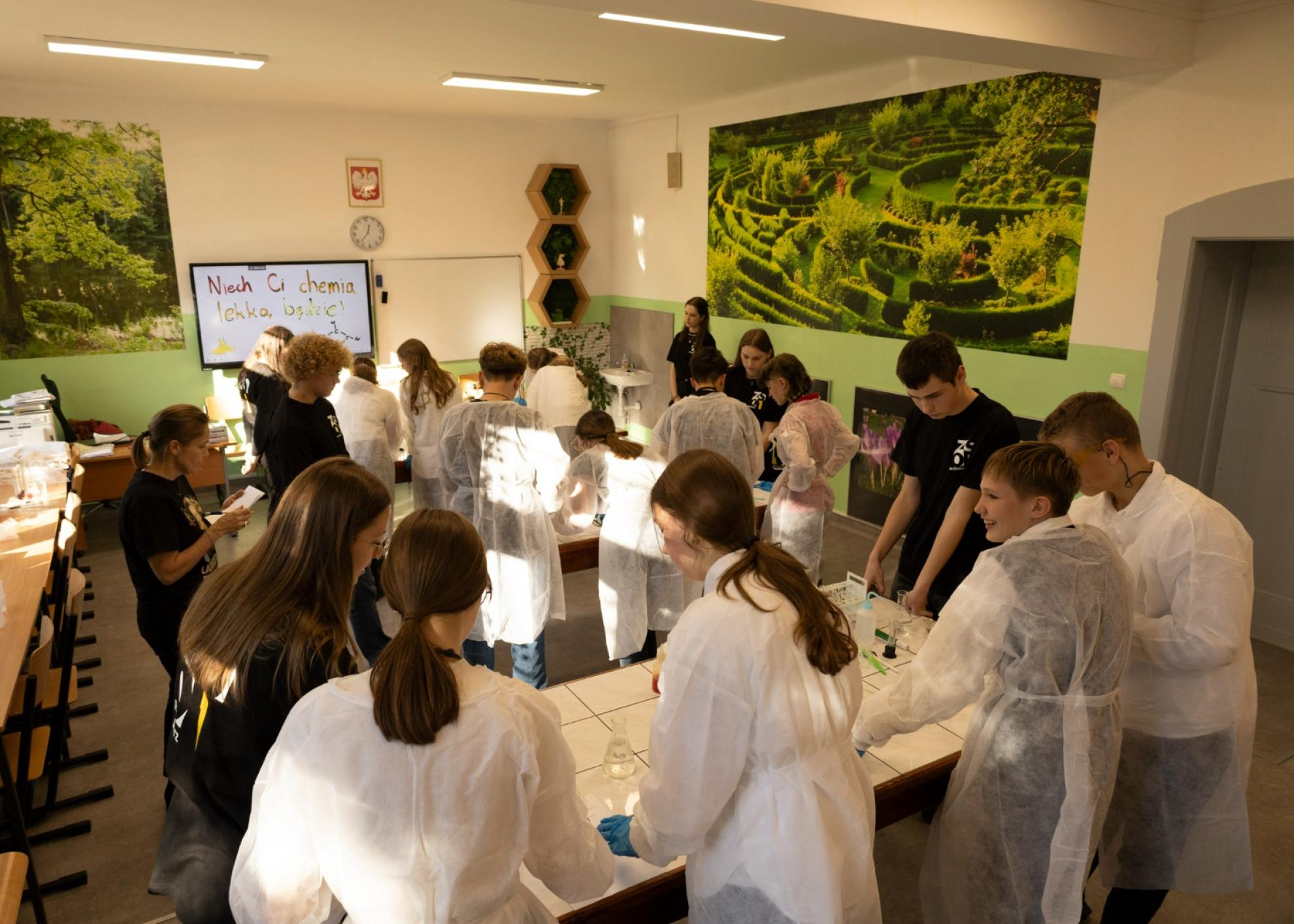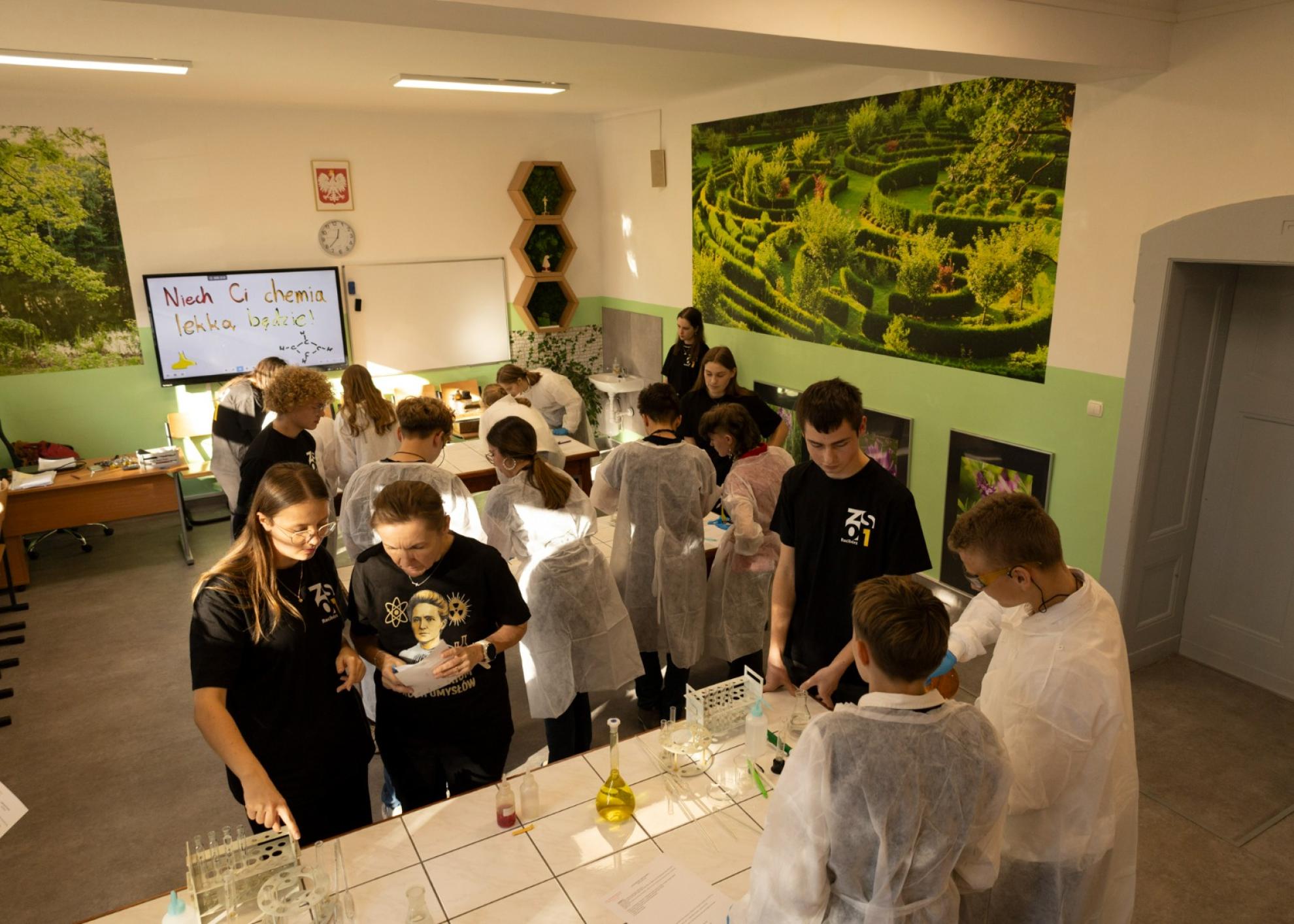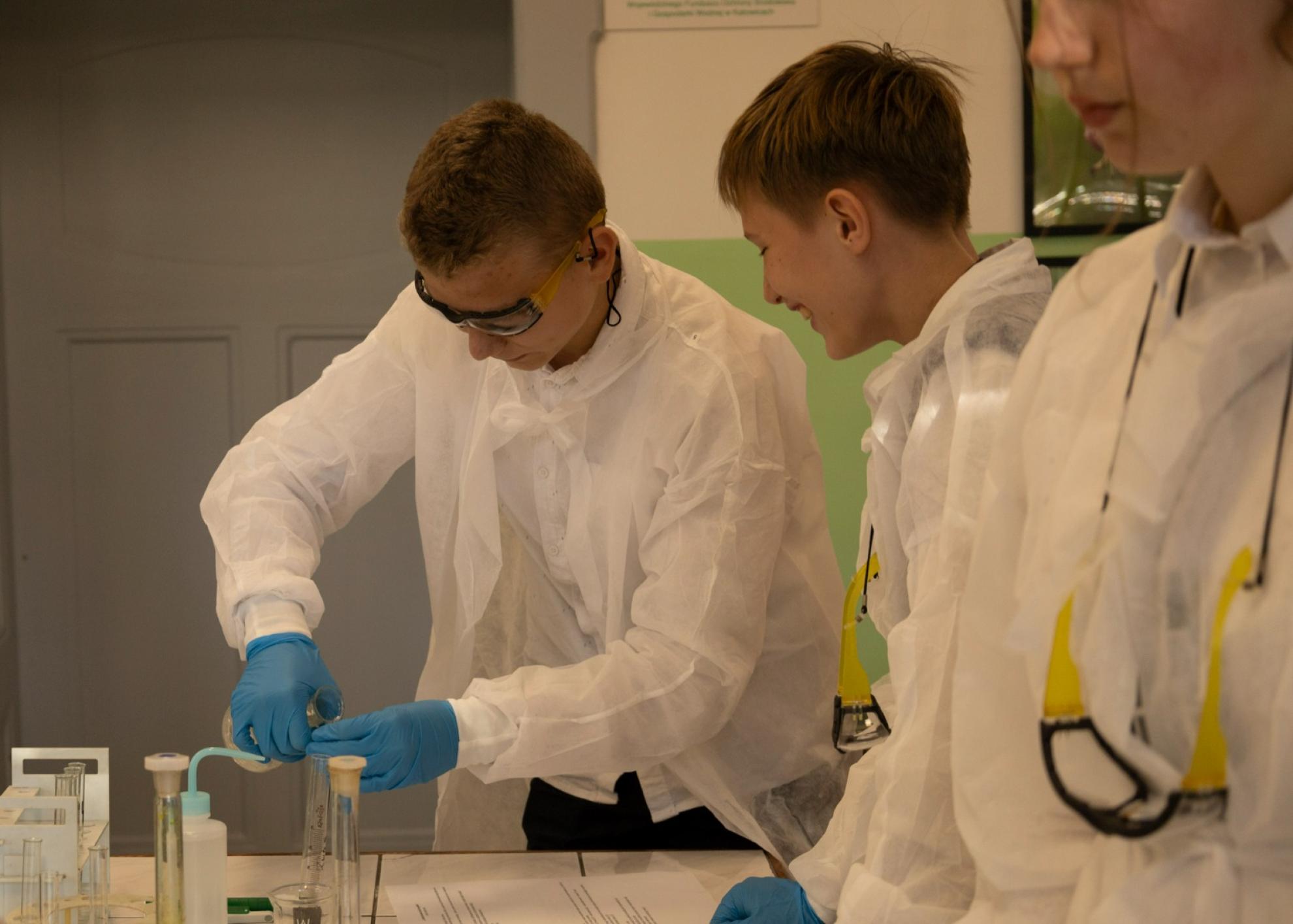 W części praktycznej nasi uczniowie mieli okazję zmierzyć się z prawdziwą chemią laboratoryjną. To było dla nich spore wyzwanie, wymagające precyzji, koncentracji i umiejętności praktycznego zastosowania wiedzy.