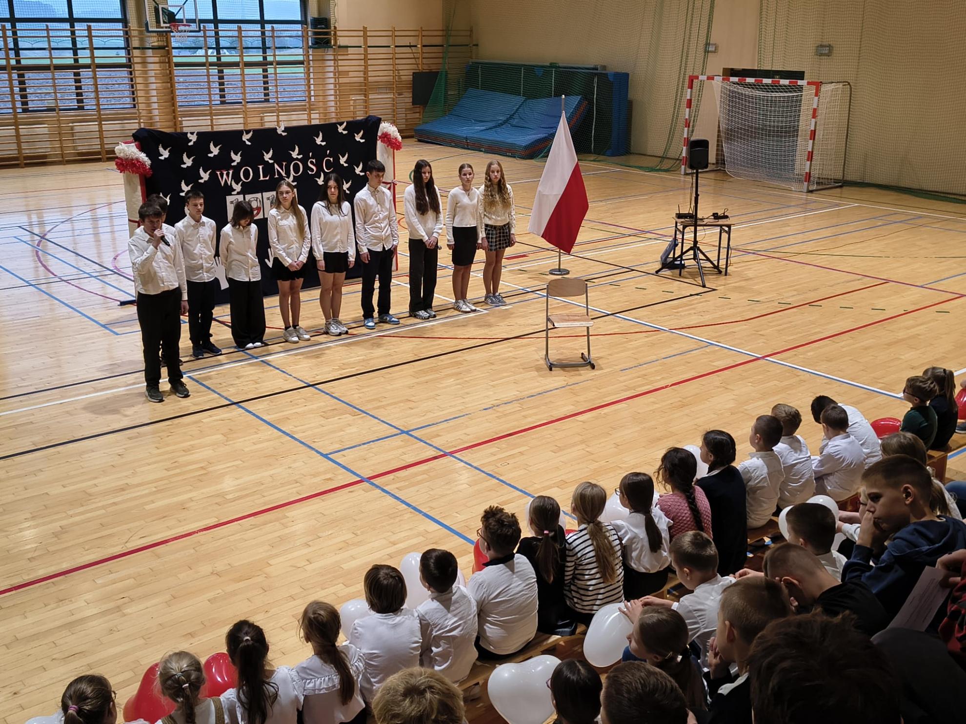 Z okazji przypadającej 11 listopada 2025 roku 107-tej rocznicy Narodowego Święta Niepodległości,uczniowie klasy siódmej oraz klas 1-3 przygotowali apel patriotyczny upamiętniający ten ważny w historii Polski dzień.W poniedziałek 17 listopada 2025 roku cała społeczność szkolna spotkała się o godzinie 11.45 w hali gimnastycznej .Wspólnie,w obecności pocztu sztandarowego szkoły zaśpiewano hymn narodowy. Klasa siódma przedstawiła dramę sceniczno-muzyczną pt"Wolność",która był tematem przewodnim apelu.