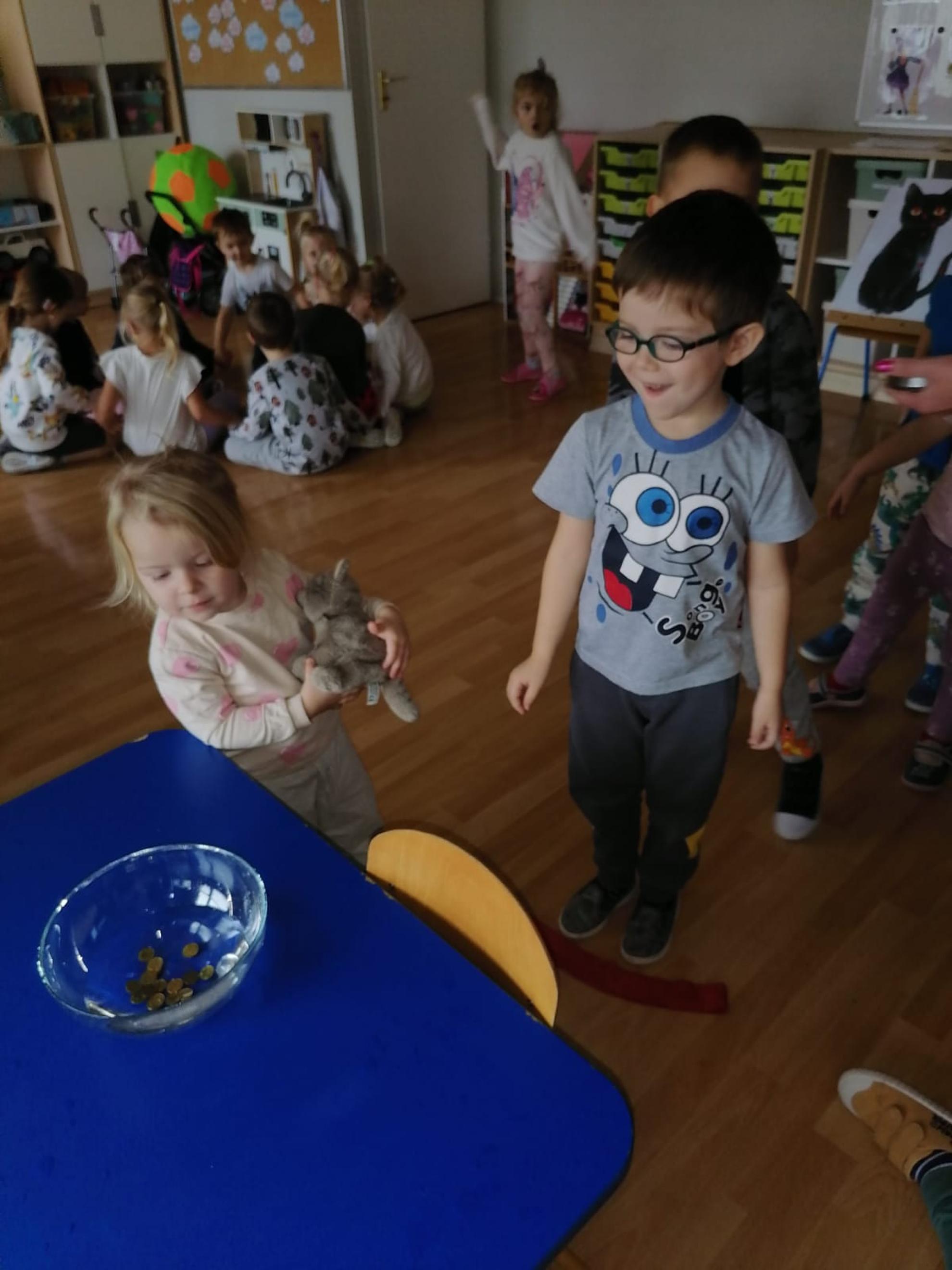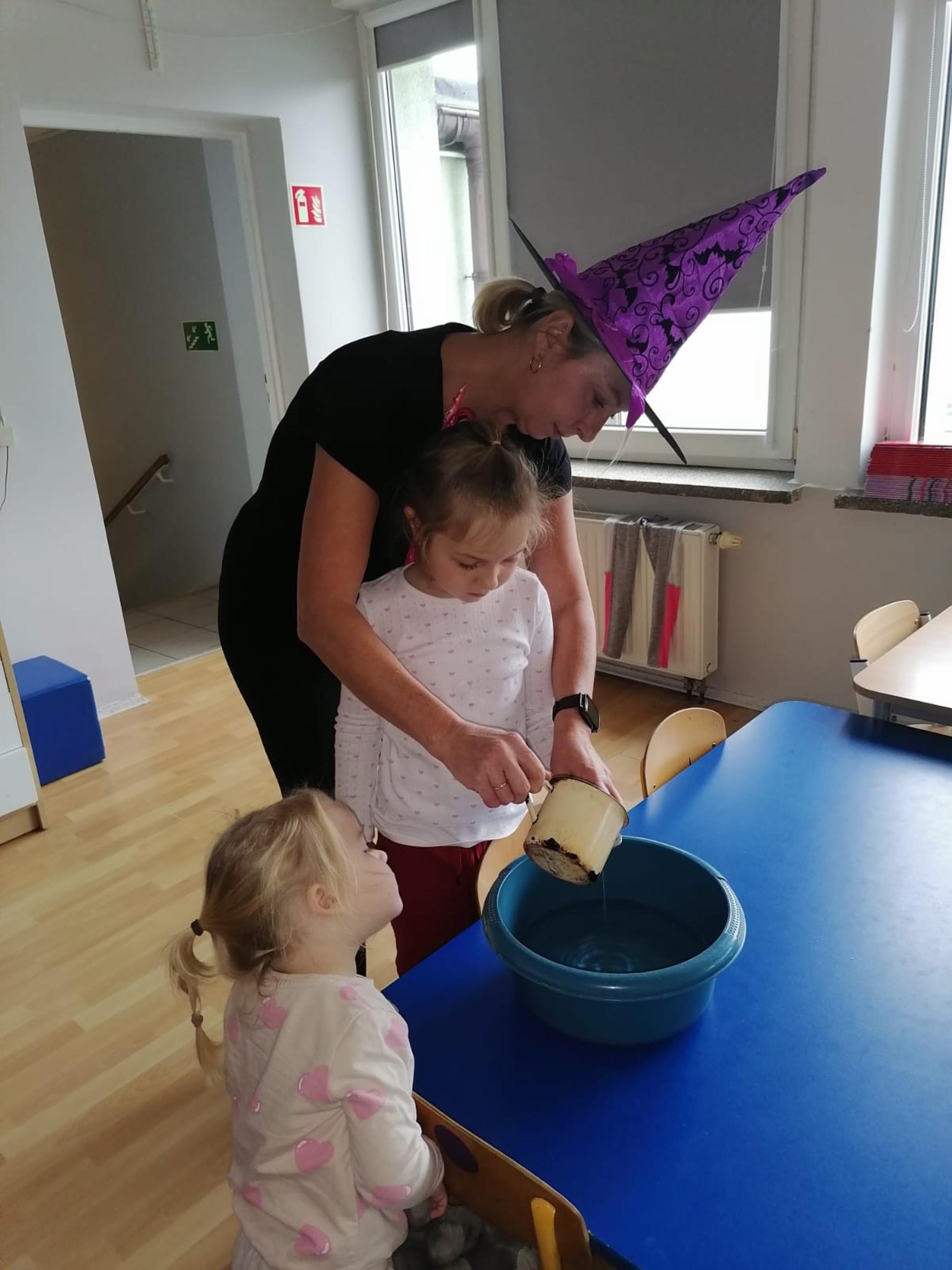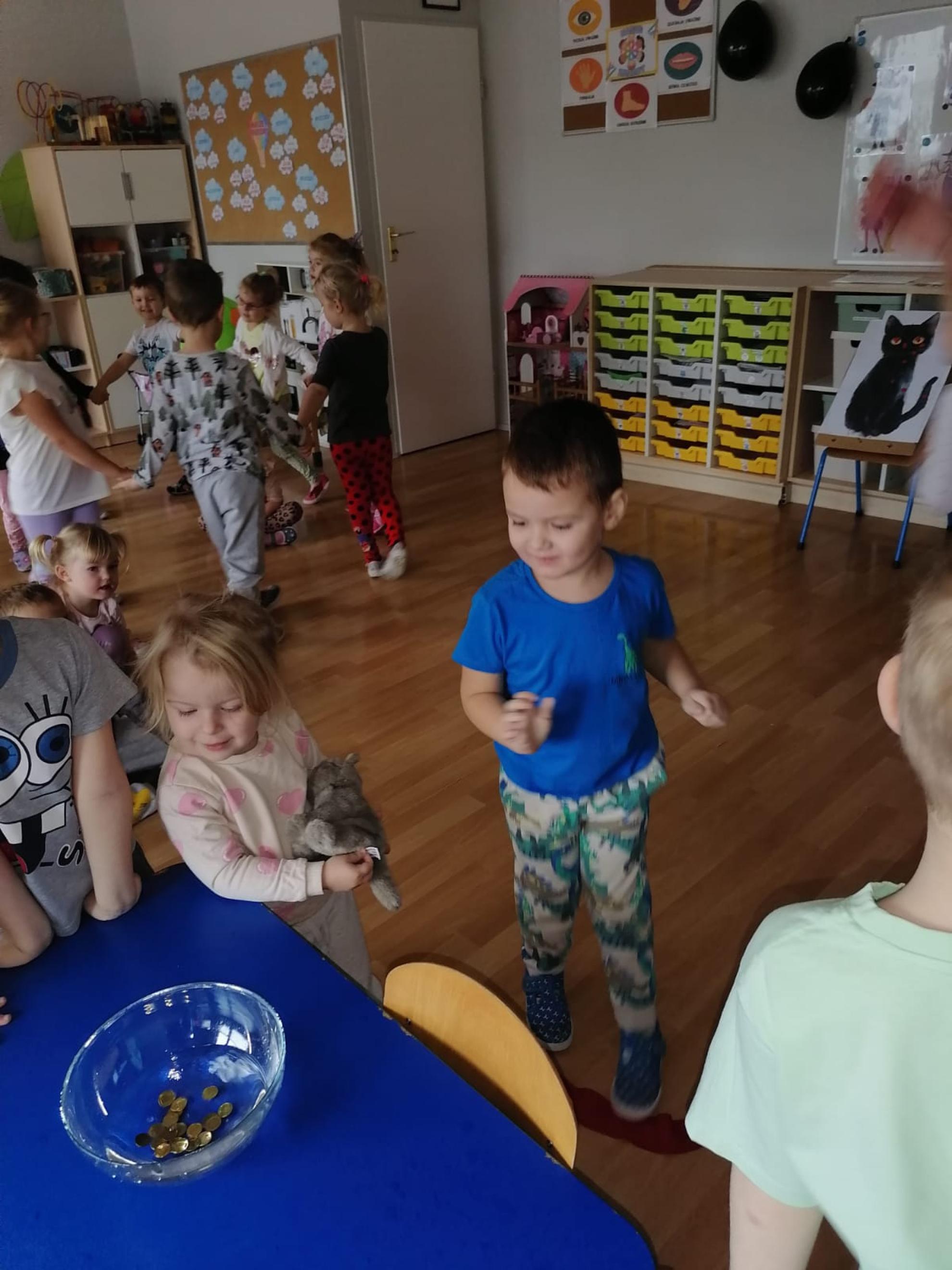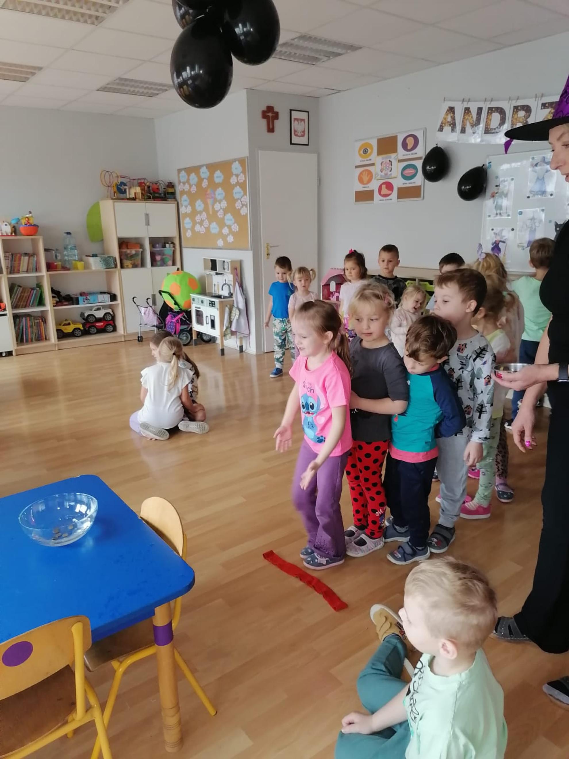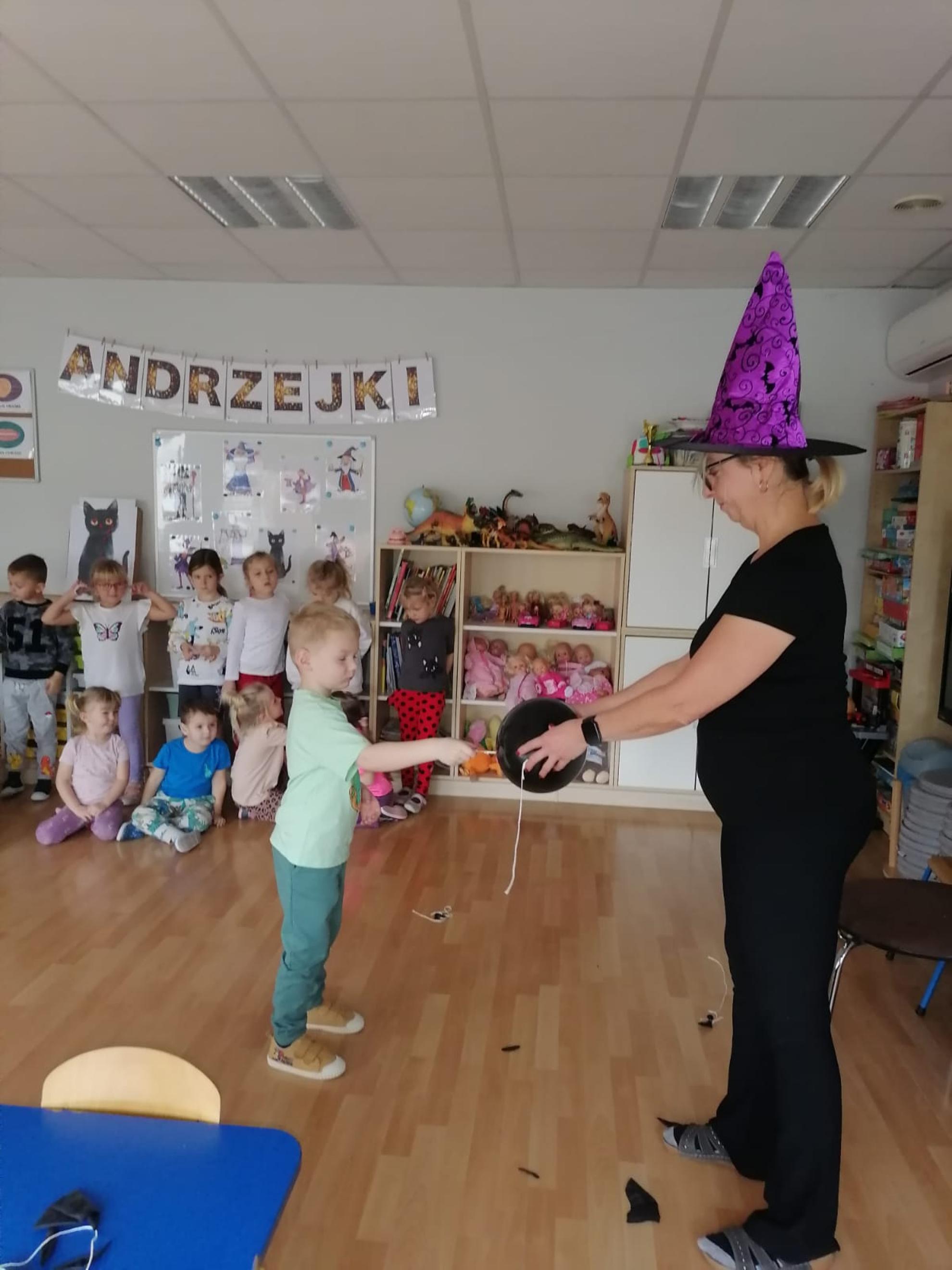 Ten dzień w naszym przedszkolu był dniem radosnych zabaw i wróżb, w których dzieci mogły poznać swoją bliższą i dalszą przyszłość. Nie zabrakło między innymi lania wosku, ustawiania kapci w kierunku drzwi, przebijania balonów z wróżbami, rzucania grosików do miski z wodą - jak dziecko trafi do miski, spełnią się jego marzenia. Na koniec zabawy przedszkolaki raczyły się słodkim poczęstunkiem.