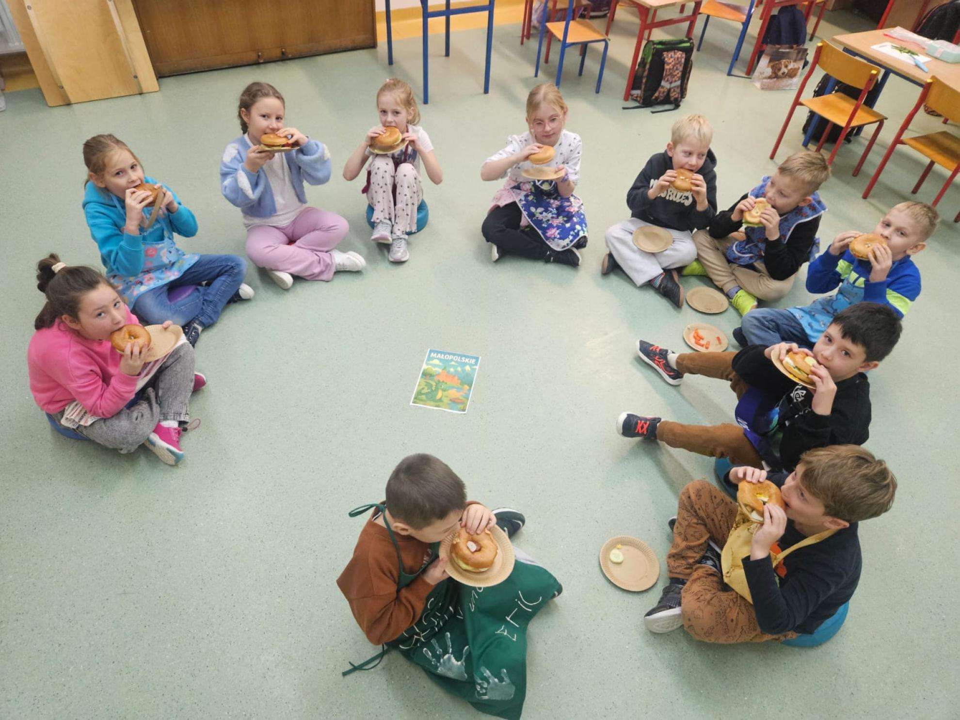 Uczniowie klas 1 i 2 wyruszyli w niezwykłą, pełną wrażeń podróż po naszym kraju. Pierwszoklasiści odwiedzili województwo małopolskie, gdzie poznali najważniejsze miejscowości regionu i wysłuchali fascynującej legendy o smoku wawelskim. Nie zabrakło także regionalnych smaków – dzieci spróbowały krakowskich bajgli, z których przygotowały kolorowe, pyszne kanapki, oraz zakopiańskich oscypków, którymi z dumą poczęstowały starszych kolegów i koleżanki z klas 2 i 3.