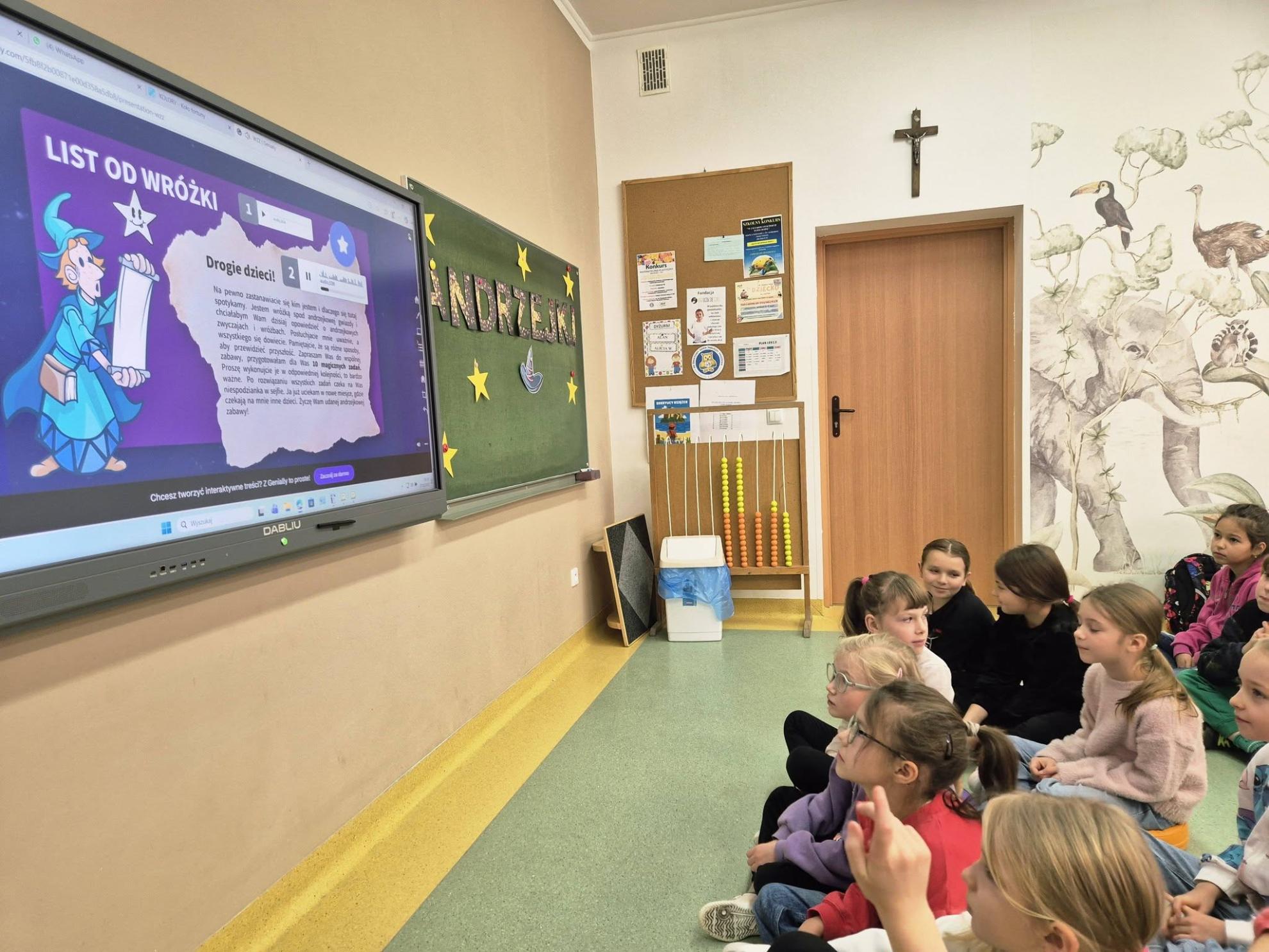 Uczniowie otrzymali specjalny list od Wróżki, w którym ukryte były zadania do wykonania. Dzieci z wielkim zaangażowaniem odkrywały kolejne polecenia i świetnie się przy tym bawiły.