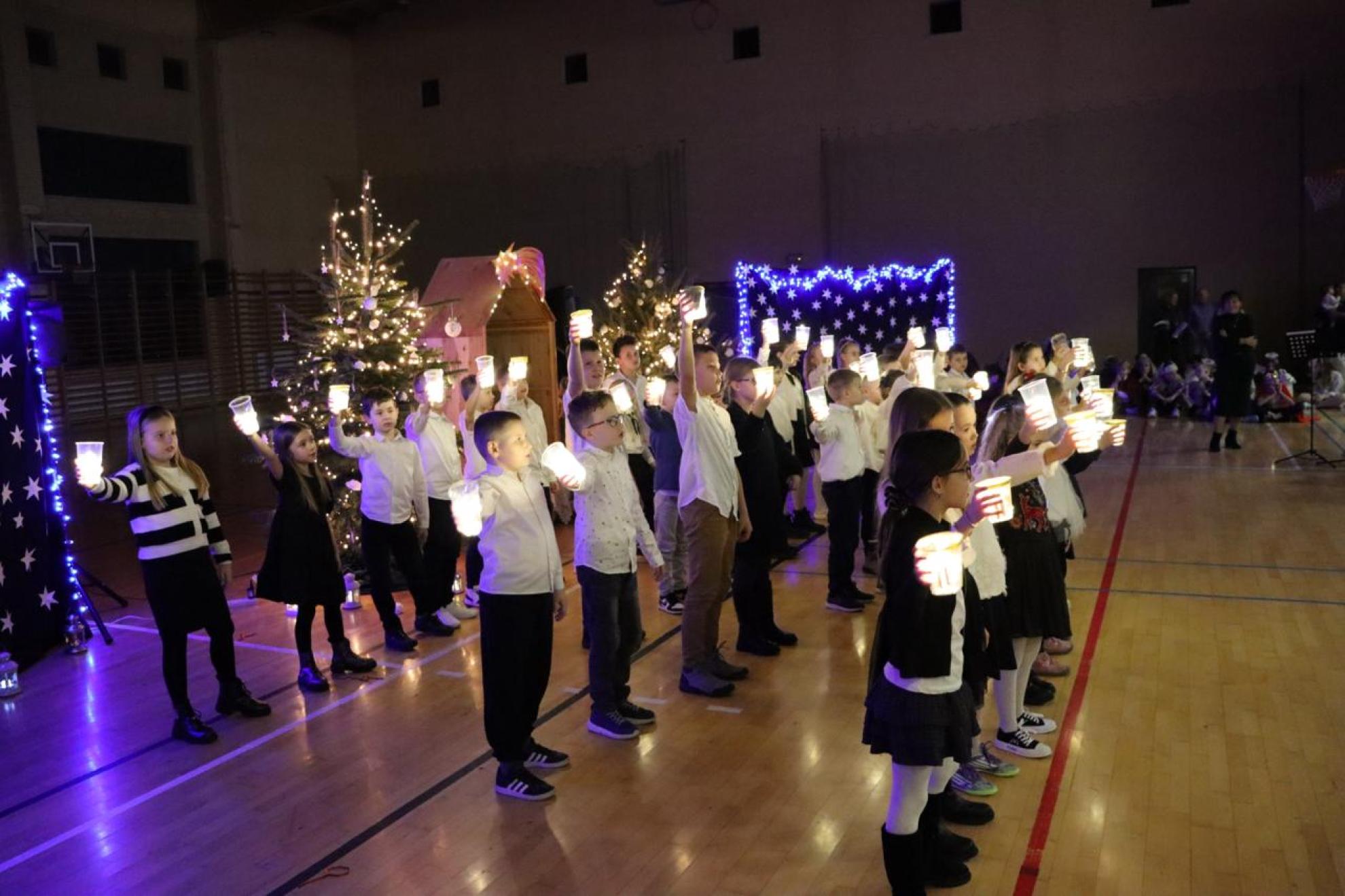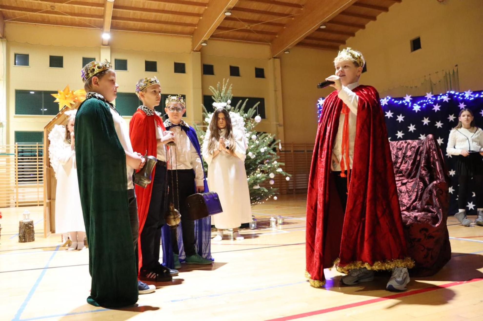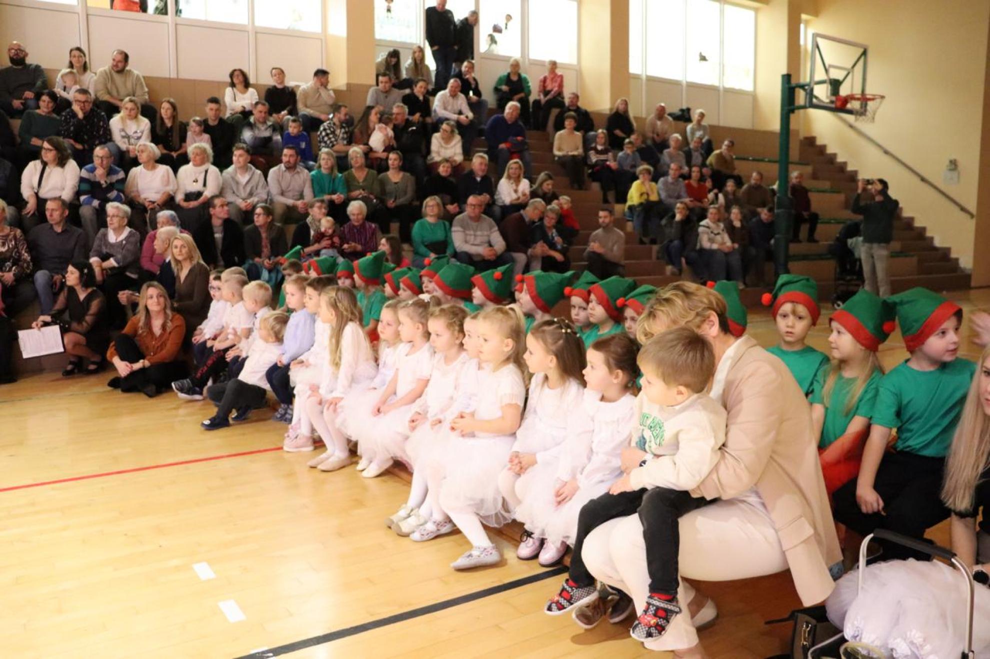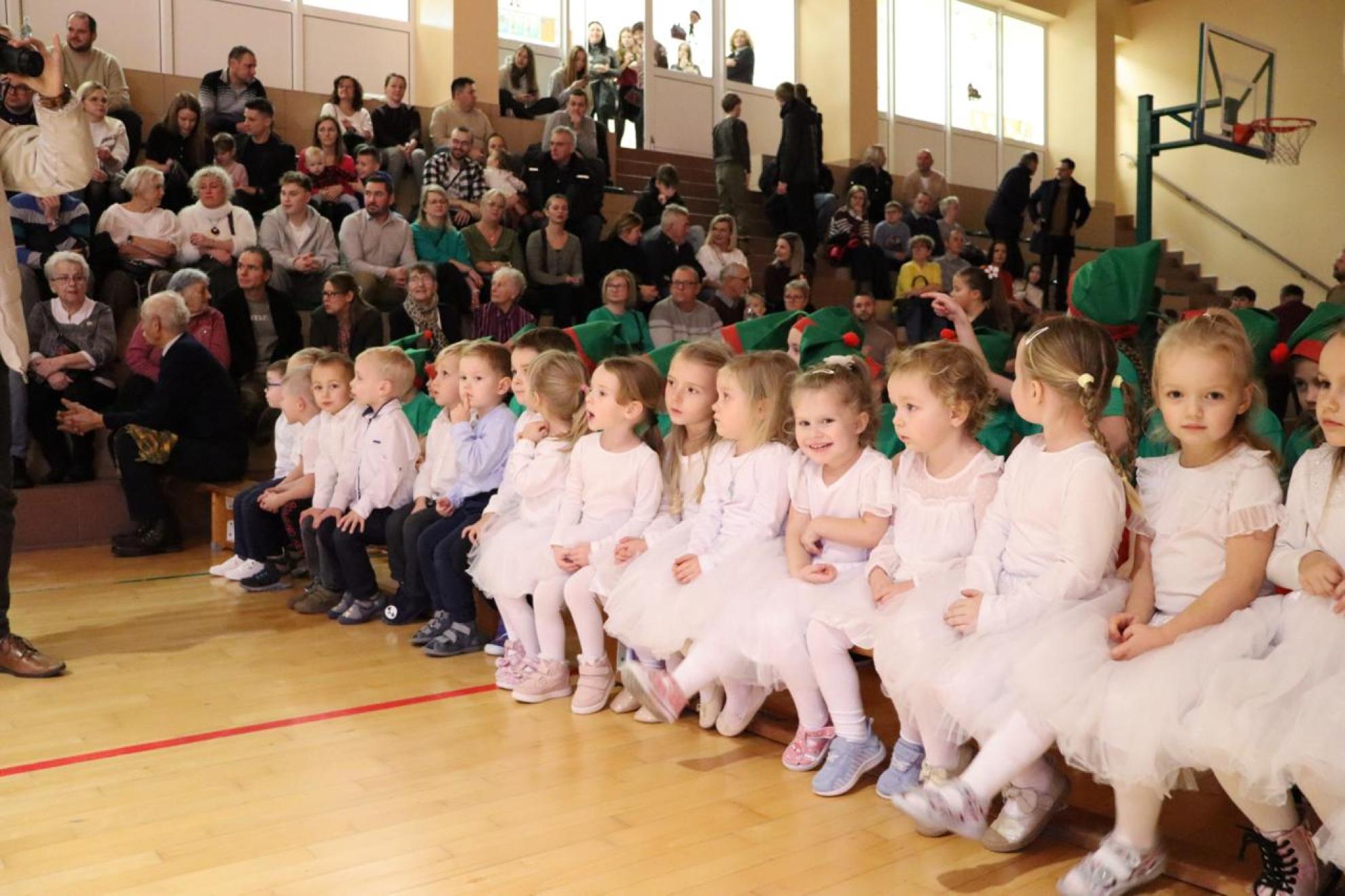 Szczególnym momentem były jasełka w wykonaniu uczniów klas IV–VII, które wprowadziły wszystkich w refleksyjny, bożonarodzeniowy nastrój. Kolejną część programu wypełniły występy najmłodszych artystów. Przedszkolaki z grupy maluszków zaprezentowały taniec do piosenki „Światełka Basi”, natomiast grupa starszaków zachwyciła energicznym tańcem do utworu „Jingle Bells”. Na zakończenie części artystycznej uczniowie klas I–III zaśpiewali świąteczną piosenkę „Wesołych Świąt”.
