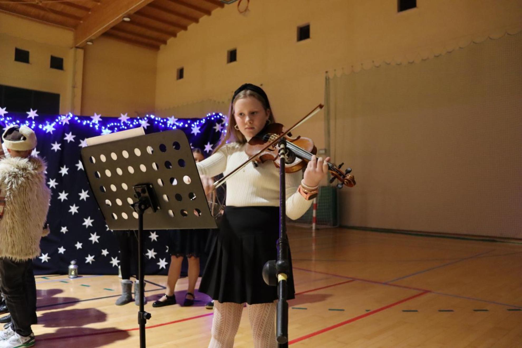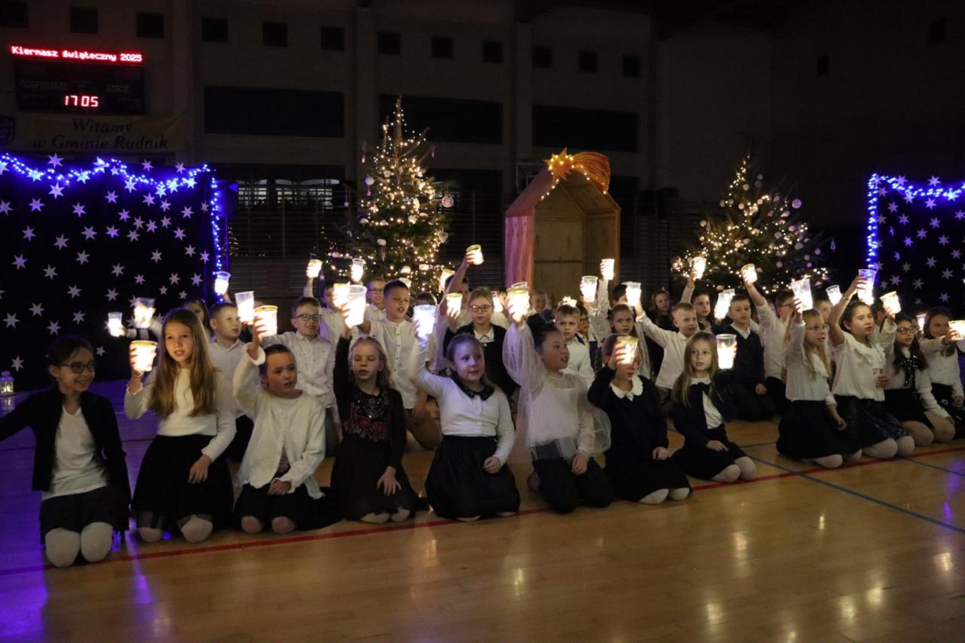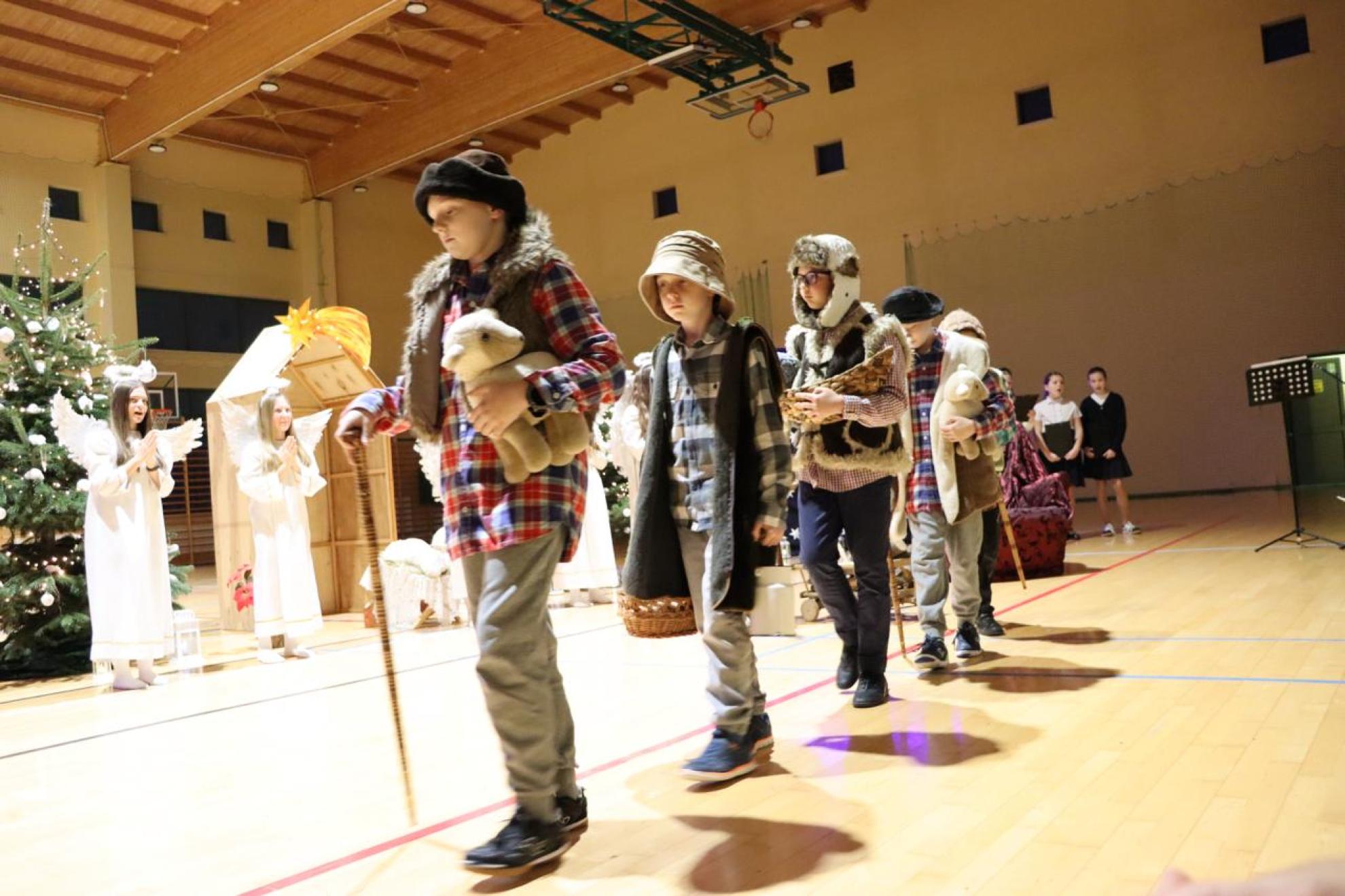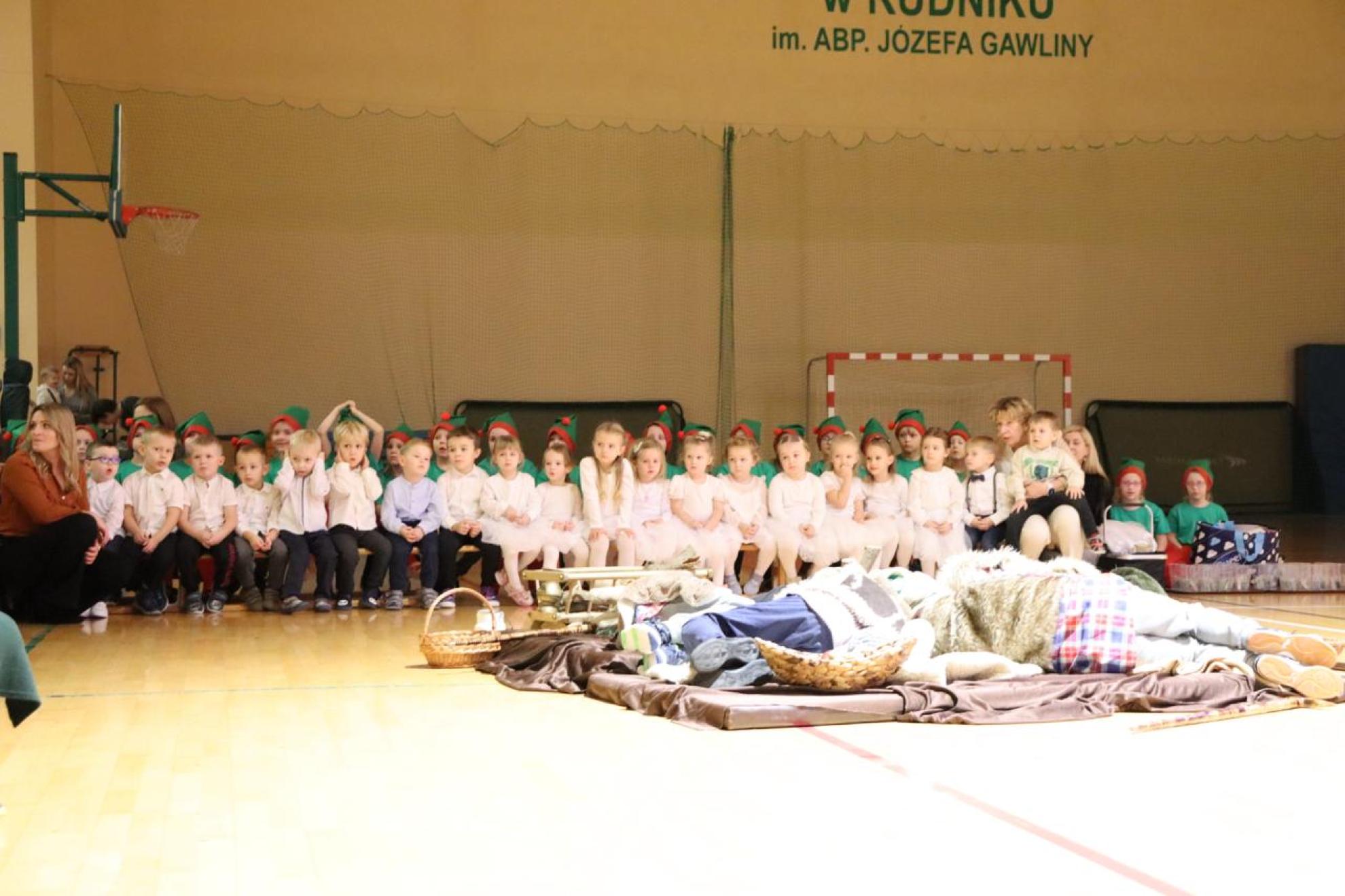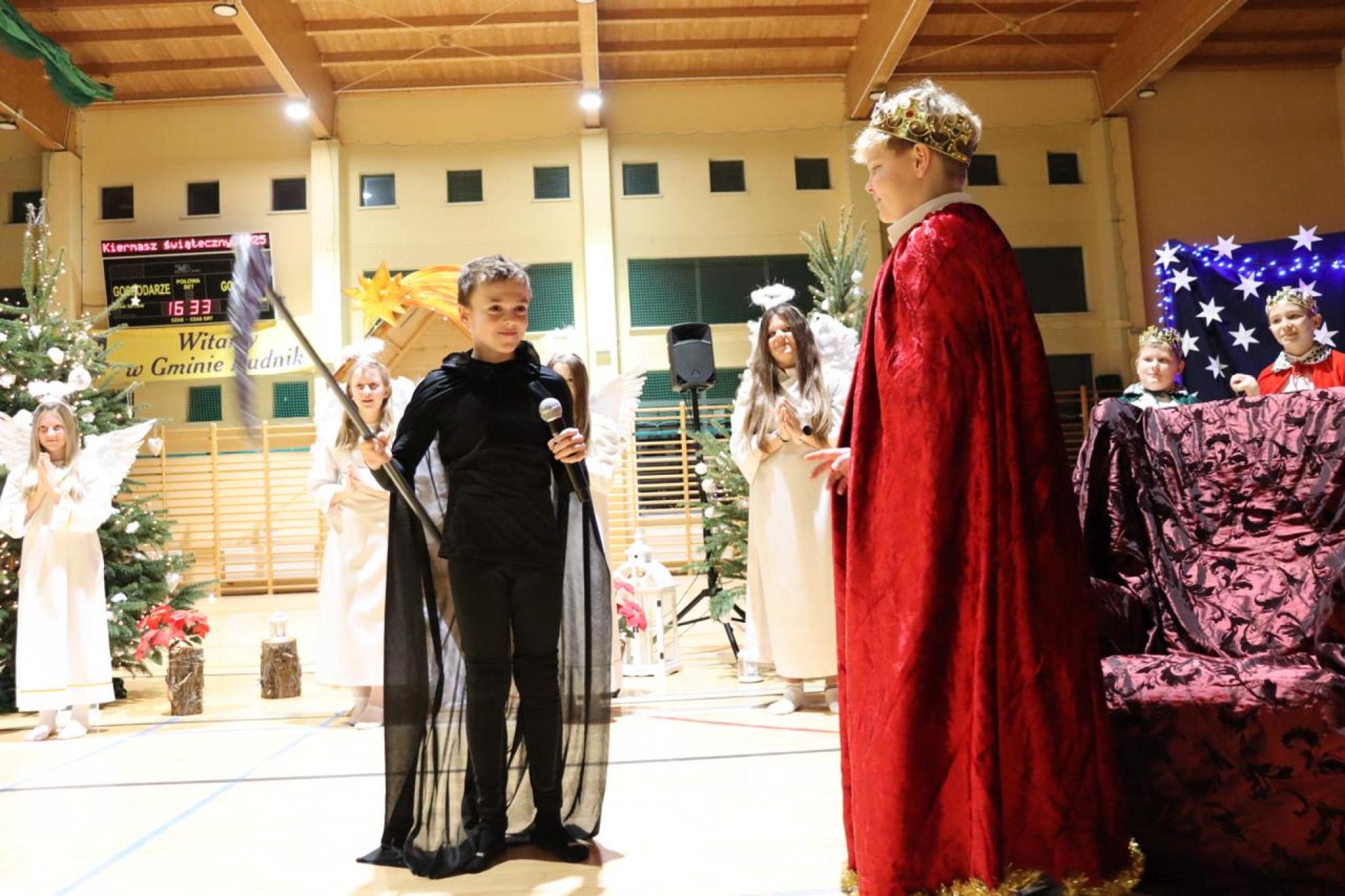 Szczególnym momentem były jasełka w wykonaniu uczniów klas IV–VII, które wprowadziły wszystkich w refleksyjny, bożonarodzeniowy nastrój. Kolejną część programu wypełniły występy najmłodszych artystów. Przedszkolaki z grupy maluszków zaprezentowały taniec do piosenki „Światełka Basi”, natomiast grupa starszaków zachwyciła energicznym tańcem do utworu „Jingle Bells”. Na zakończenie części artystycznej uczniowie klas I–III zaśpiewali świąteczną piosenkę „Wesołych Świąt”.