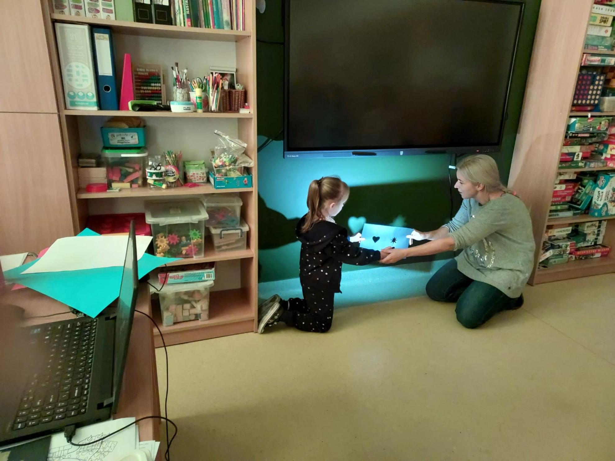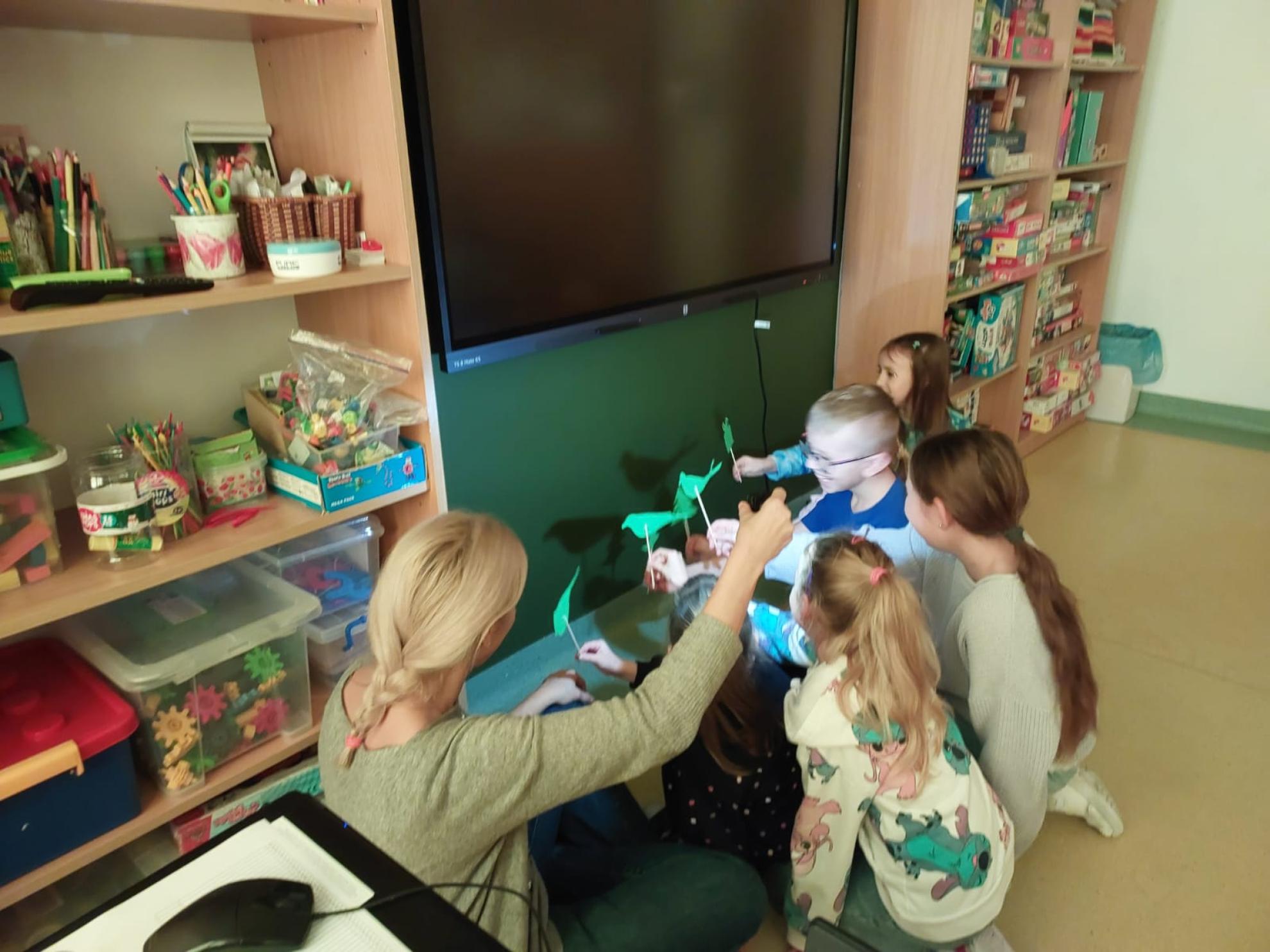 Na zakończenie zajęć, w ramach ewaluacji, dzieci wykonały własnoręcznie kukiełki z bloku technicznego, a następnie stworzyły wyjątkowy teatrzyk cieni, w którym mogły twórczo wykorzystać zdobytą wiedzę i własną wyobraźnię.