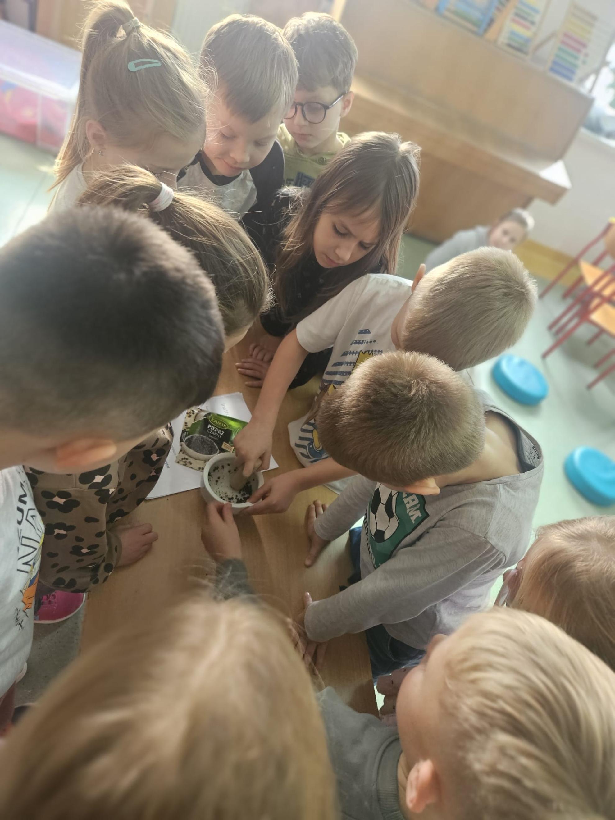 Dodatkowo przeprowadzono eksperyment z moździerzem i pieprzem, który obrazowo pokazał wpływ rozgrzewki na nasze stawy. Były to bardzo ciekawe zajęcia, dzięki którym uczniowie pogłębili wiedzę na temat tak ważnego elementu aktywności fizycznej, jakim jest rozgrzewka.