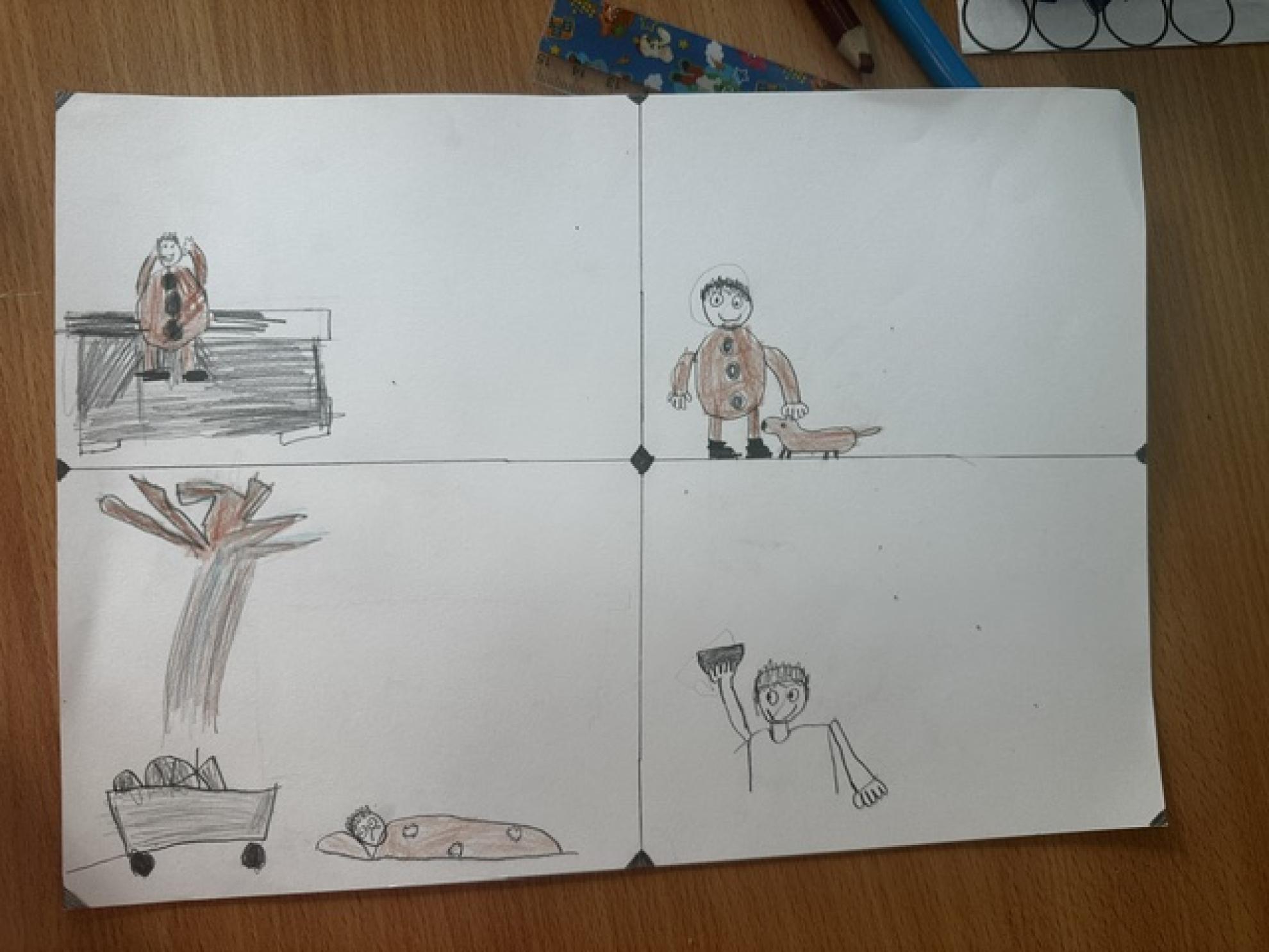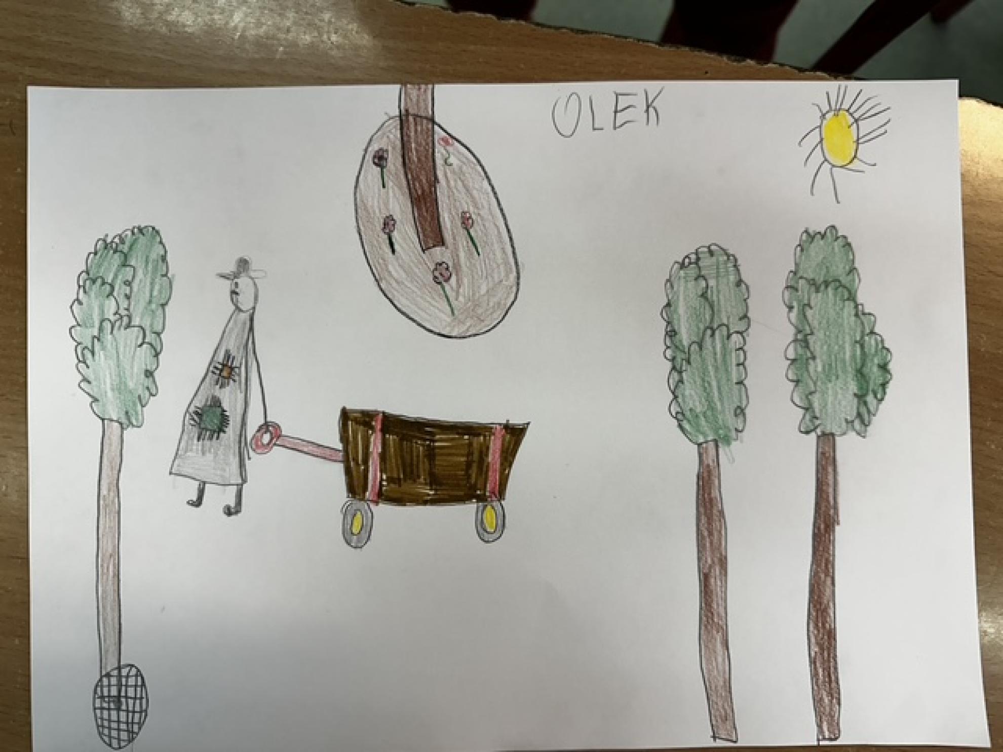 Na zakończenie każde dziecko samodzielnie zilustrowało opowiadanie — każdy na swój wyjątkowy sposób — dając wyraz swojej wrażliwości i kreatywności.