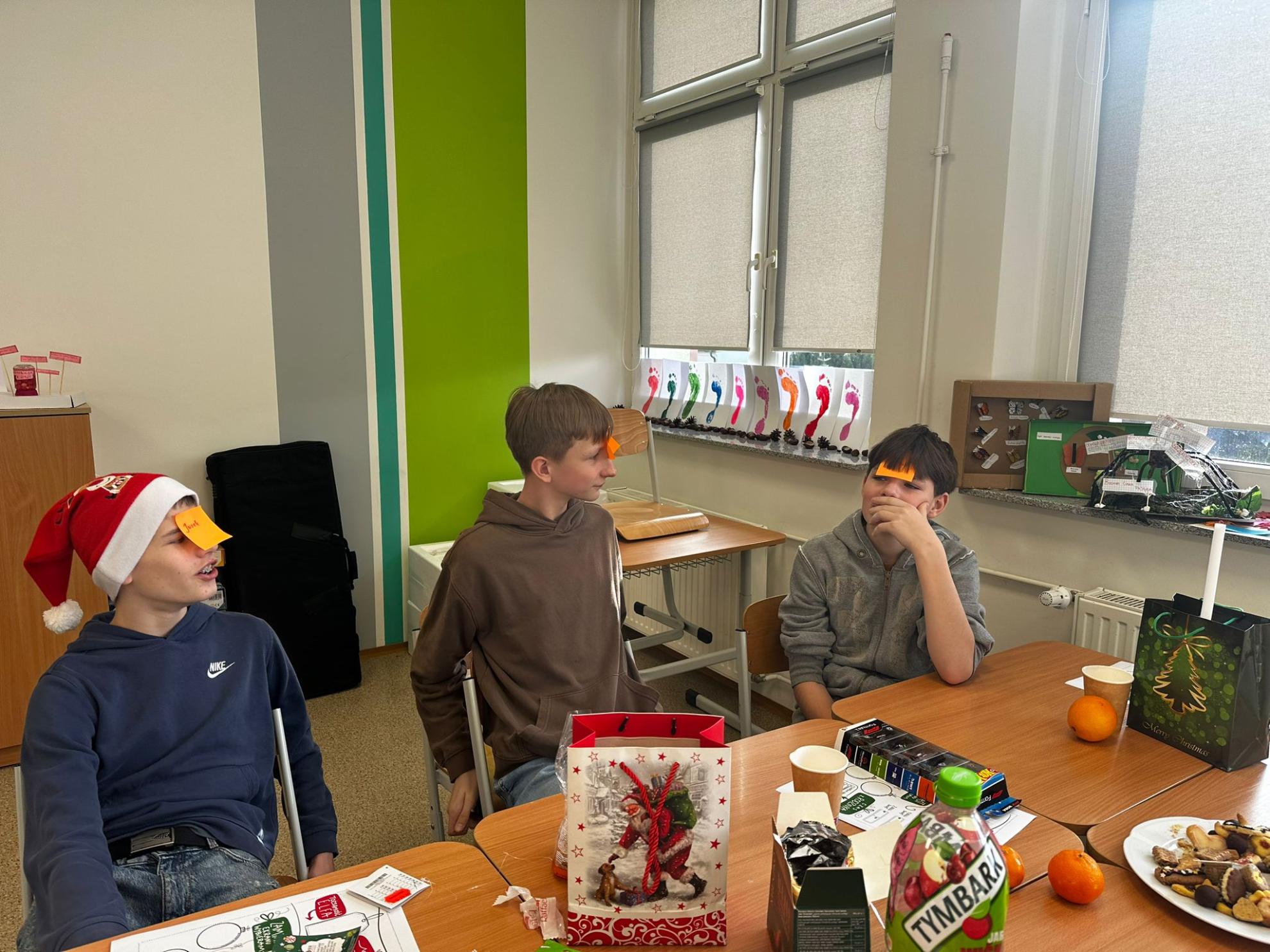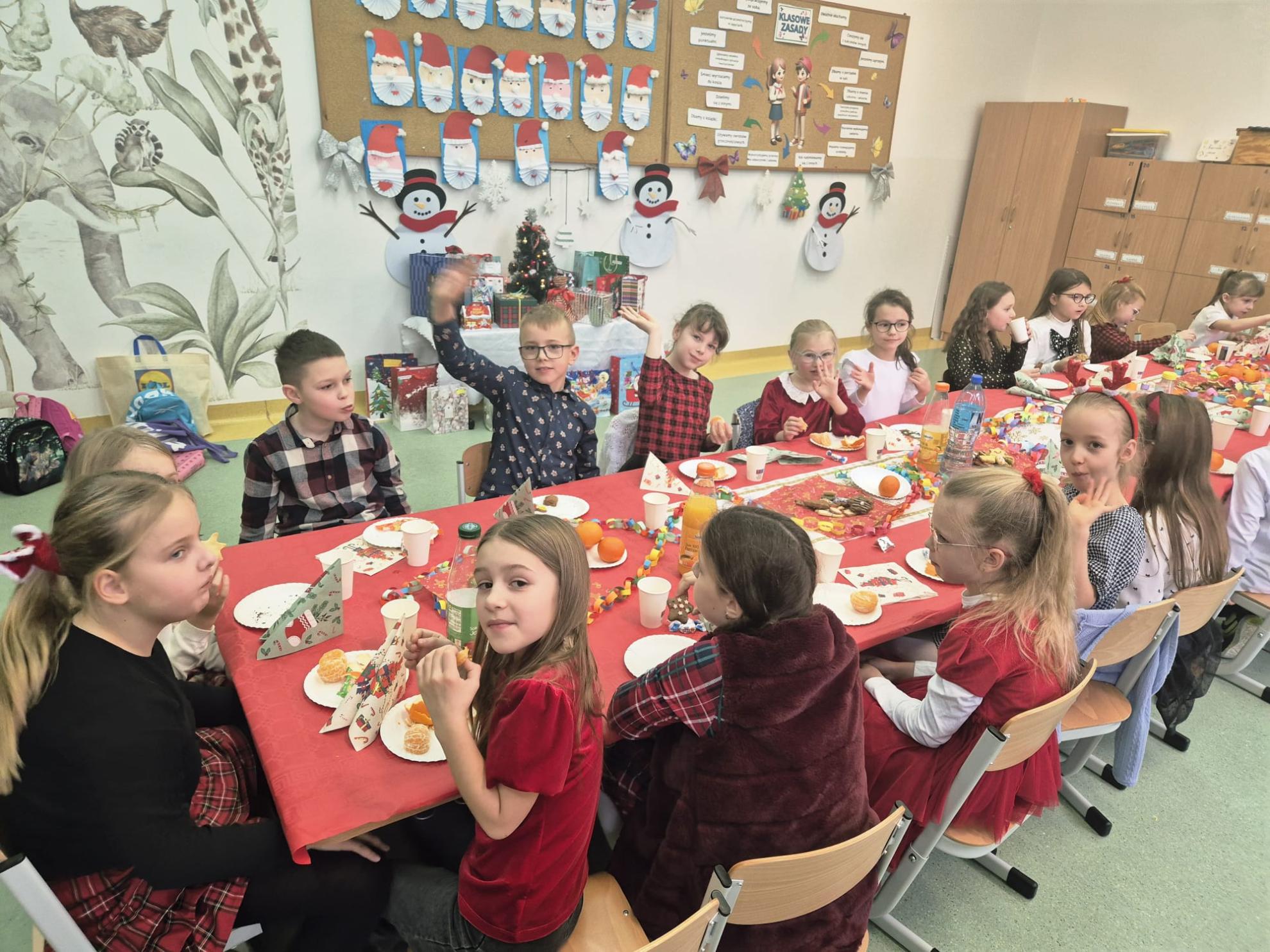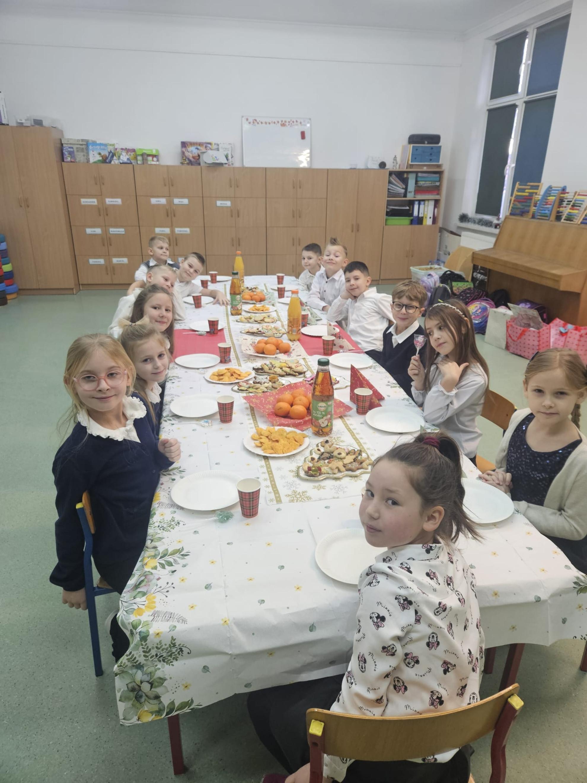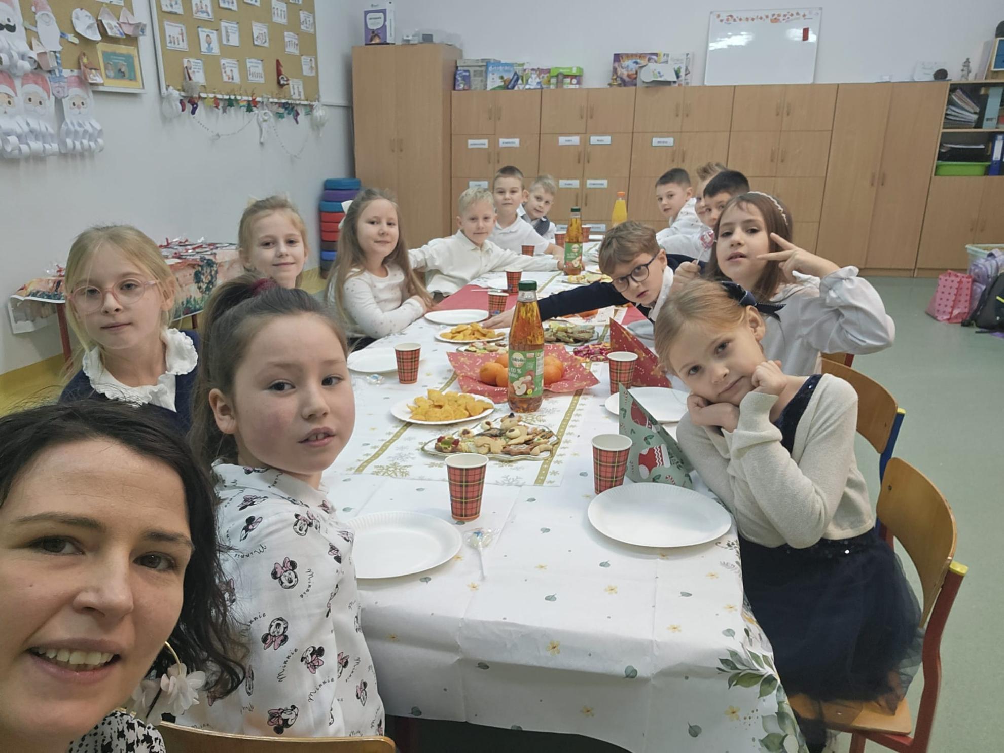 Następnie uczniowie udali się do swoich klas na spotkania opłatkowe. W gronie koleżanek i kolegów składali sobie życzenia, wspólnie zasiedli do wigilijnego stołu oraz obdarowali się drobnymi upominkami.