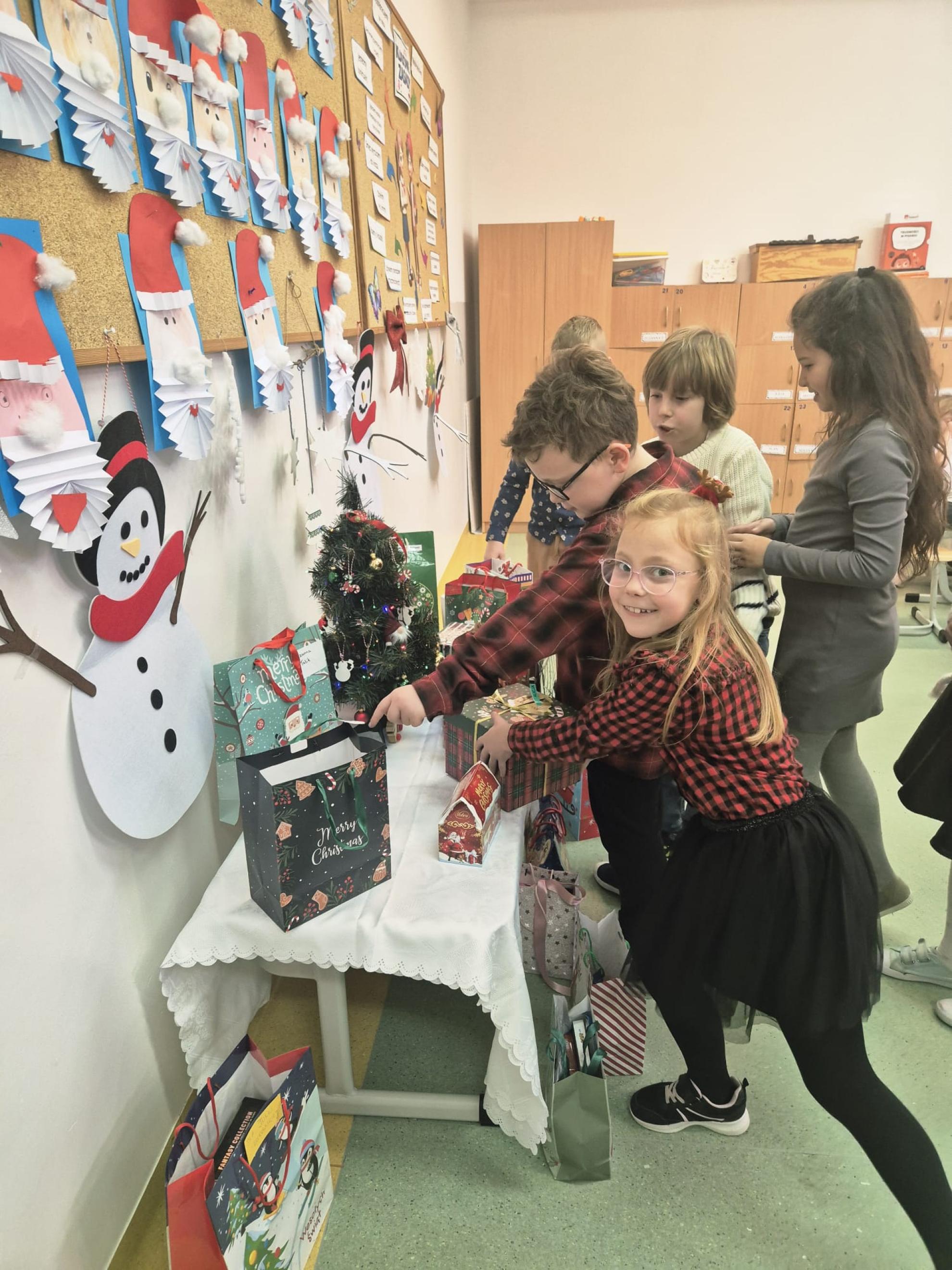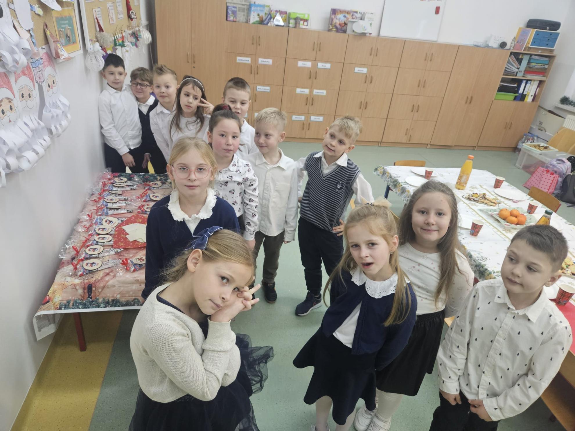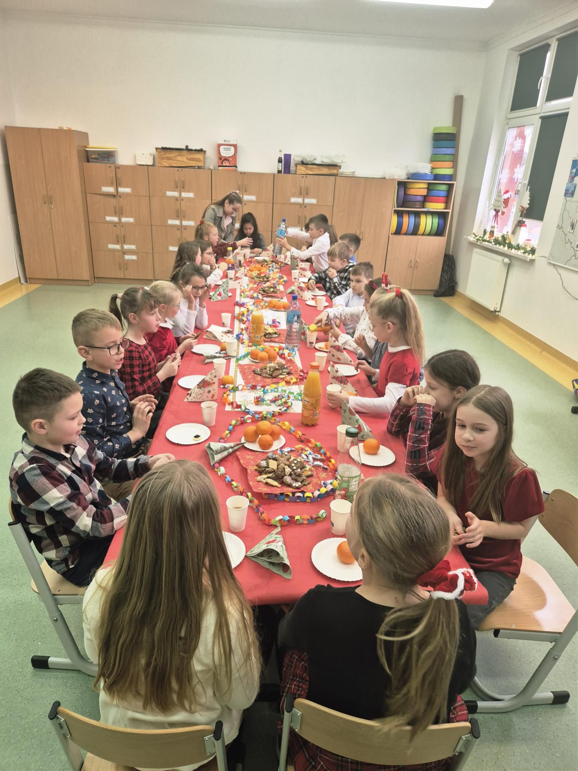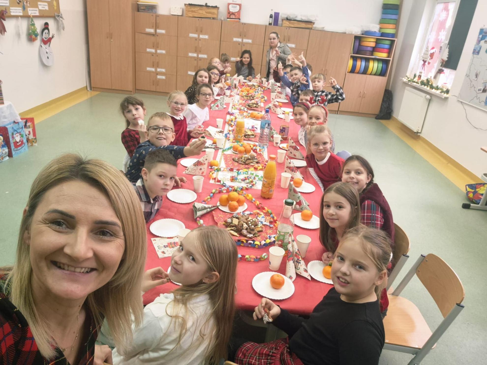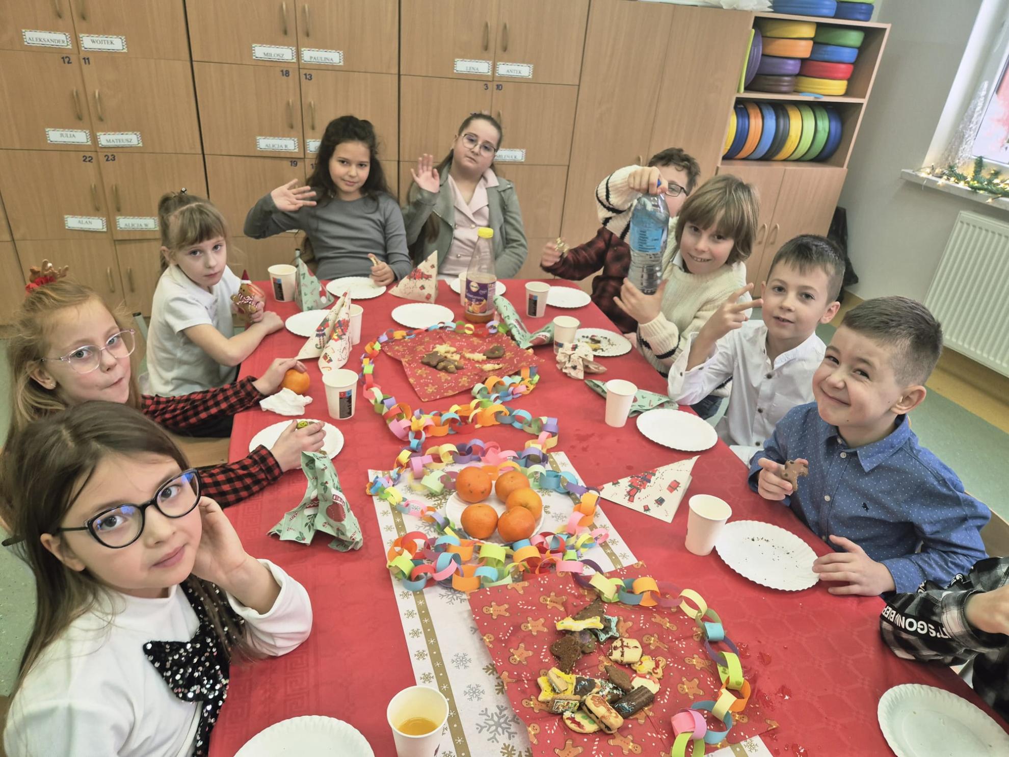 Następnie uczniowie udali się do swoich klas na spotkania opłatkowe. W gronie koleżanek i kolegów składali sobie życzenia, wspólnie zasiedli do wigilijnego stołu oraz obdarowali się drobnymi upominkami.