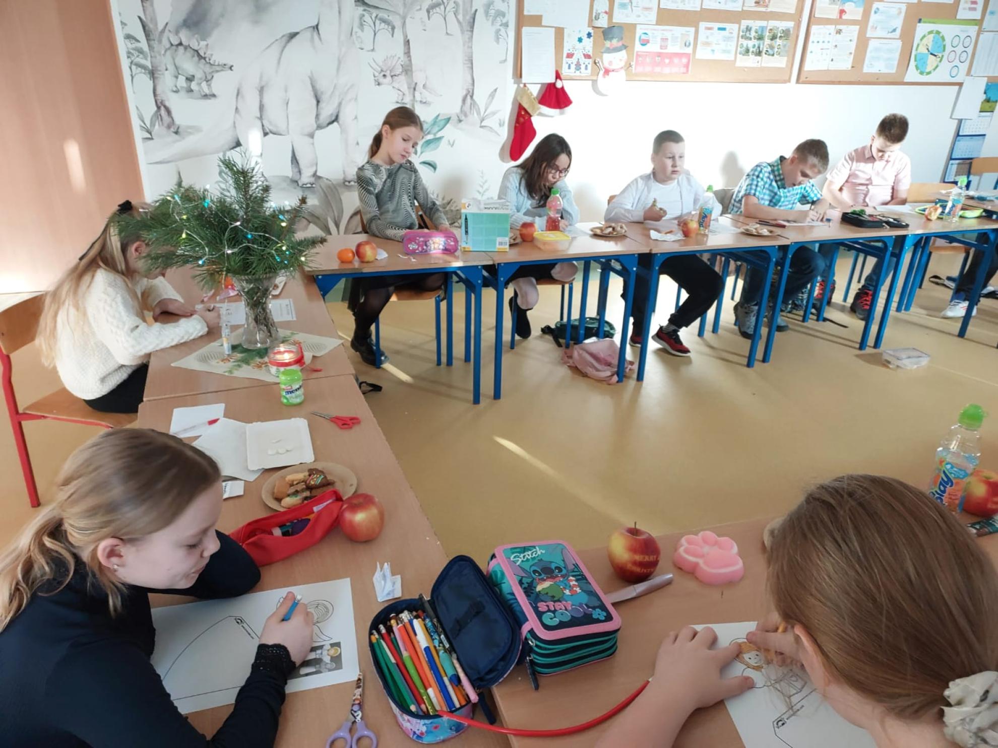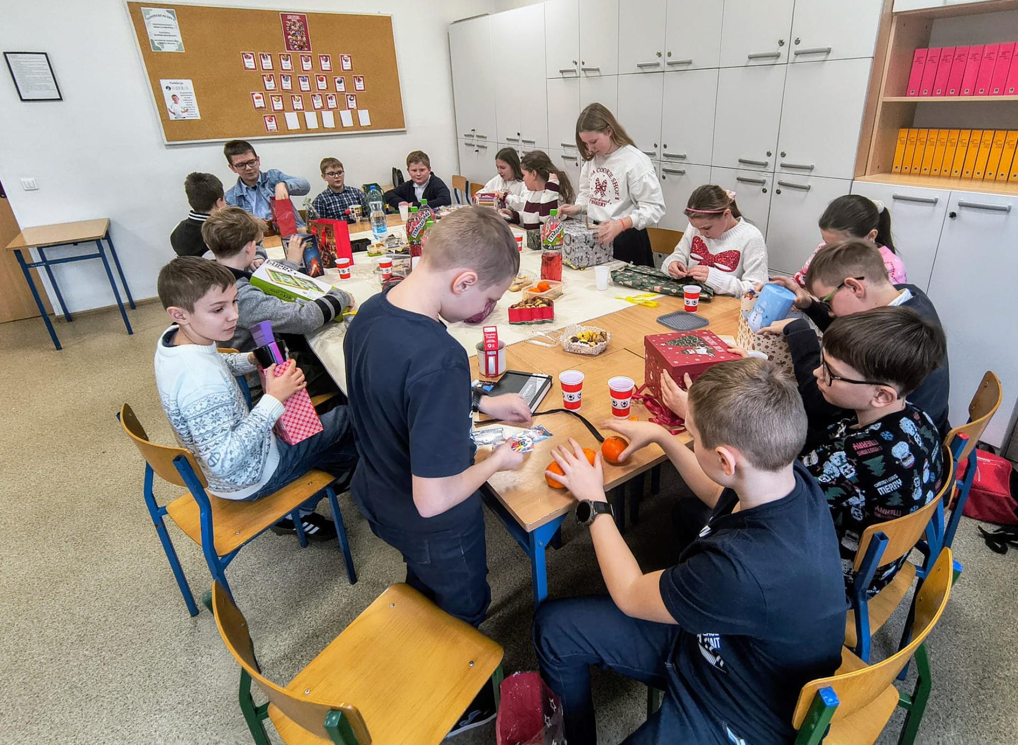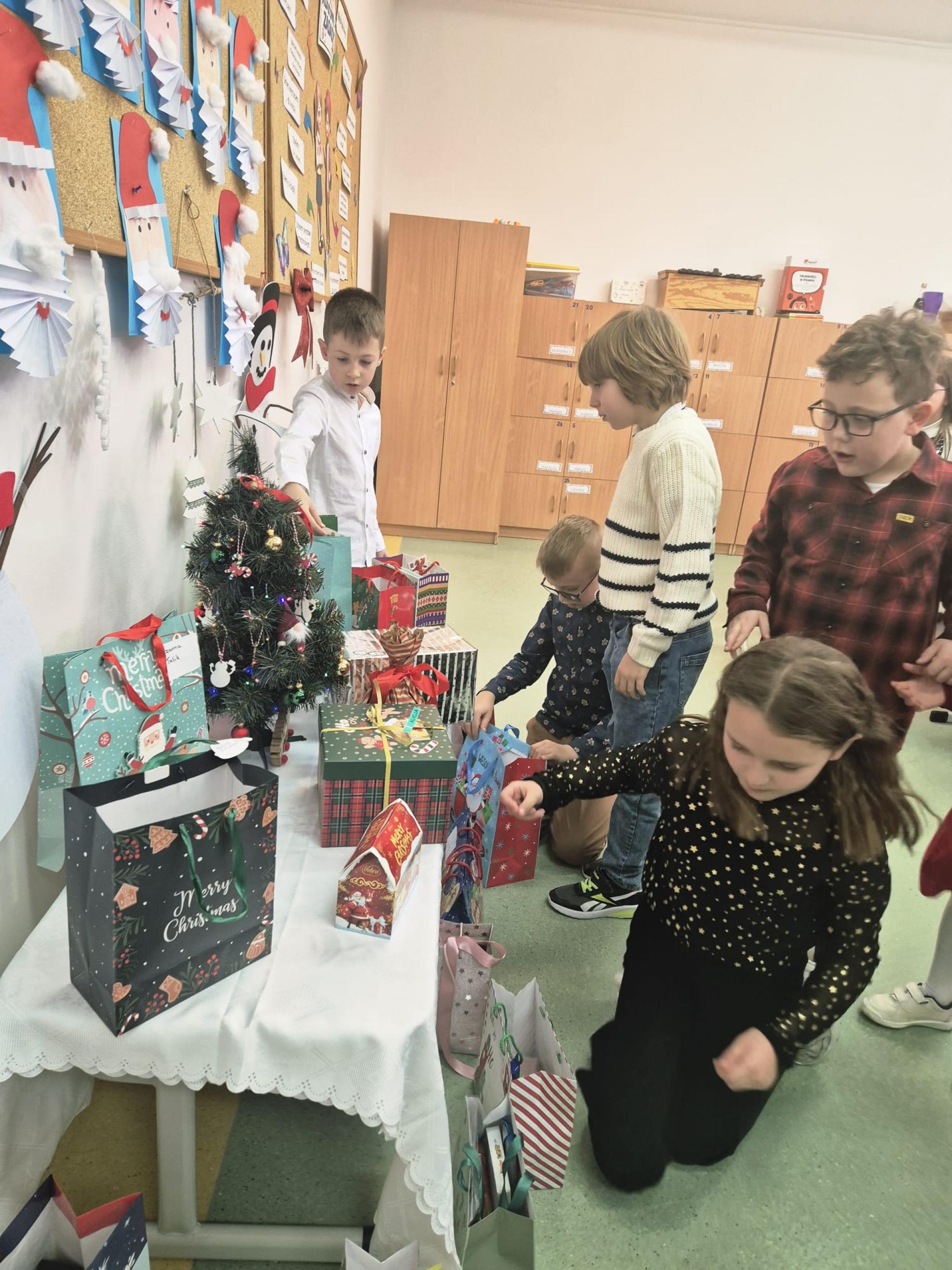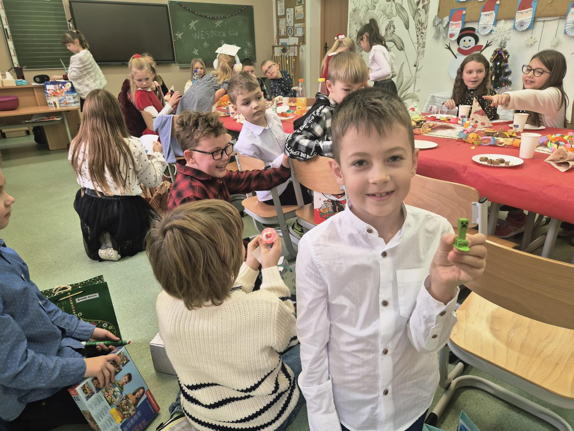 Następnie uczniowie udali się do swoich klas na spotkania opłatkowe. W gronie koleżanek i kolegów składali sobie życzenia, wspólnie zasiedli do wigilijnego stołu oraz obdarowali się drobnymi upominkami.