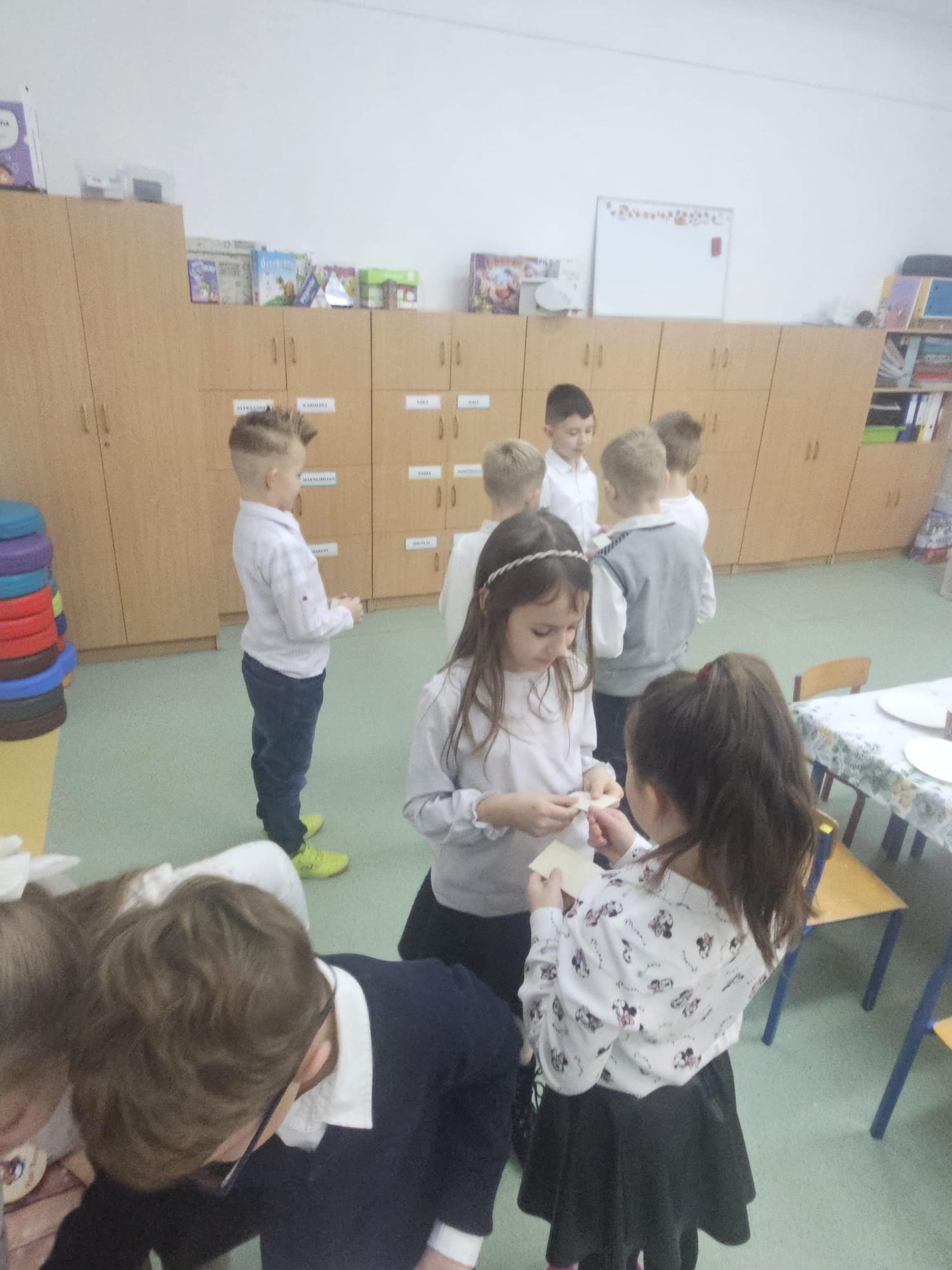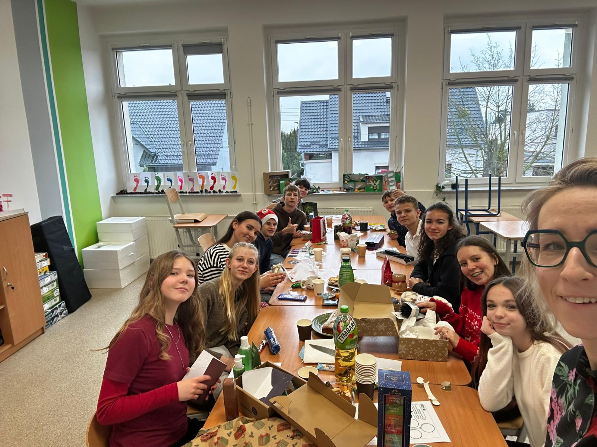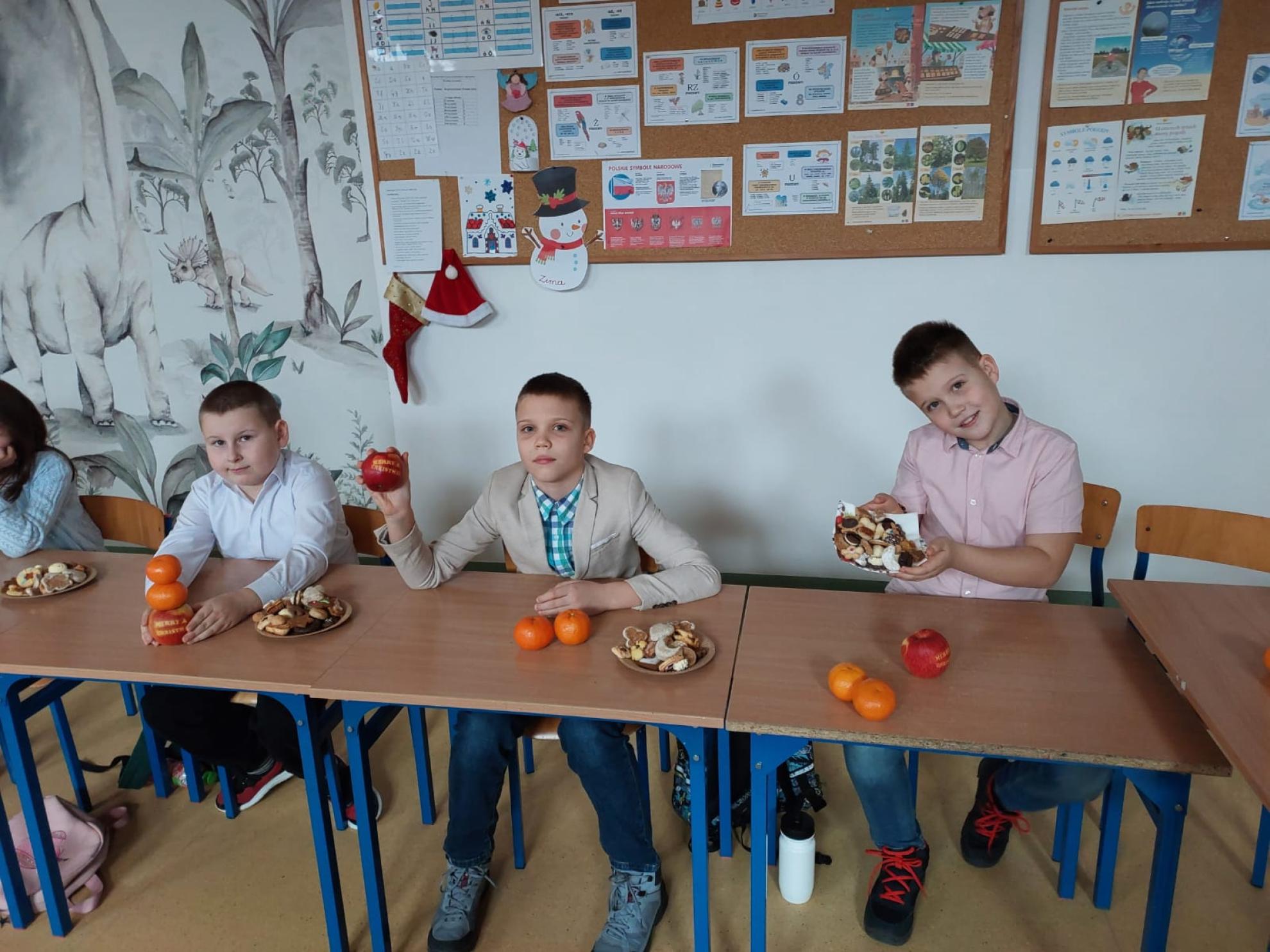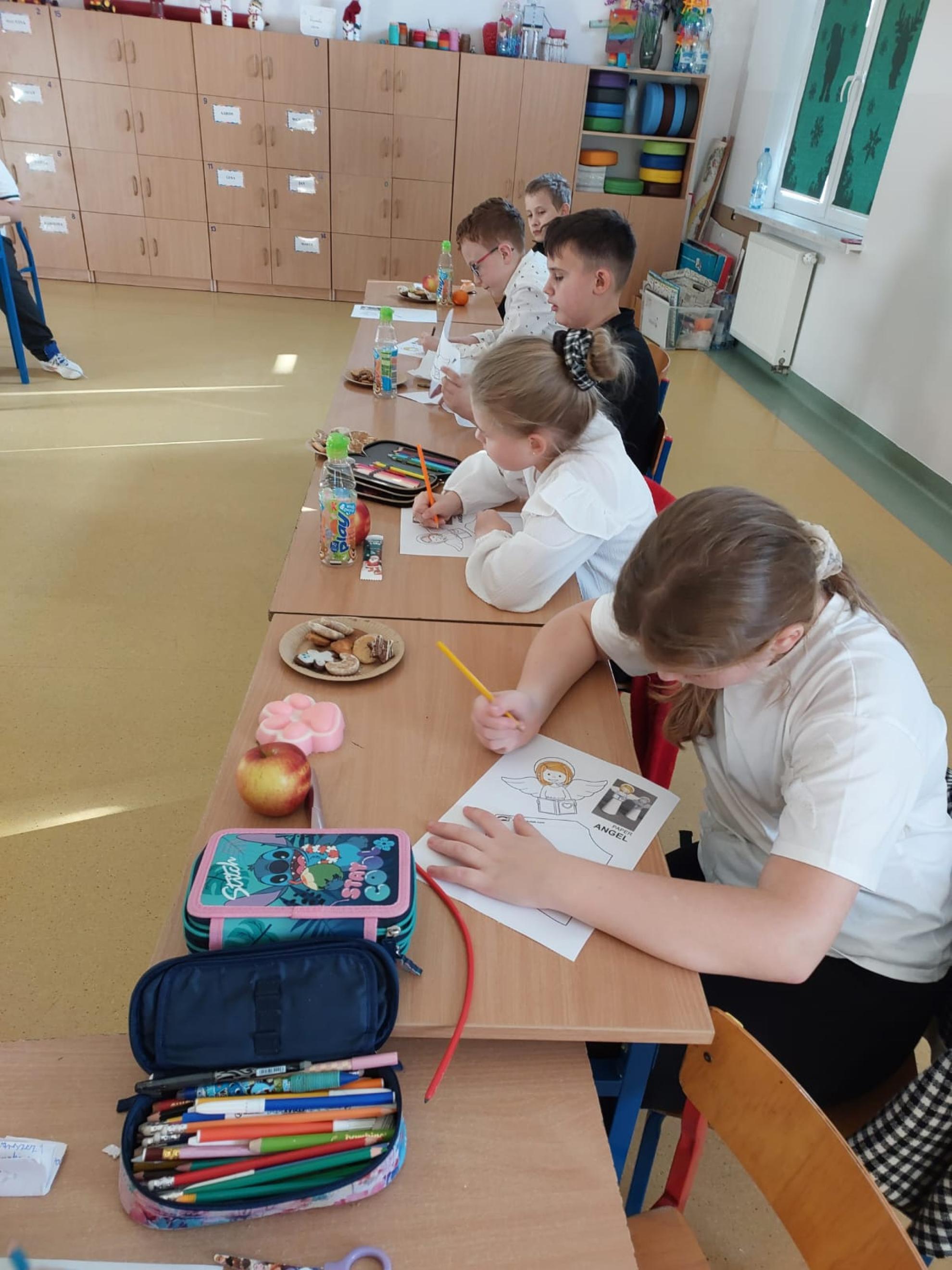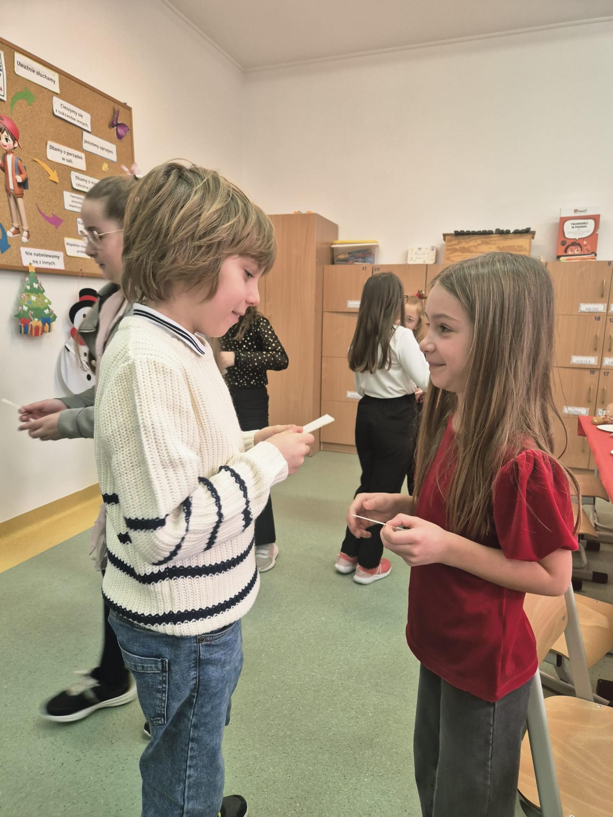 Następnie uczniowie udali się do swoich klas na spotkania opłatkowe. W gronie koleżanek i kolegów składali sobie życzenia, wspólnie zasiedli do wigilijnego stołu oraz obdarowali się drobnymi upominkami.