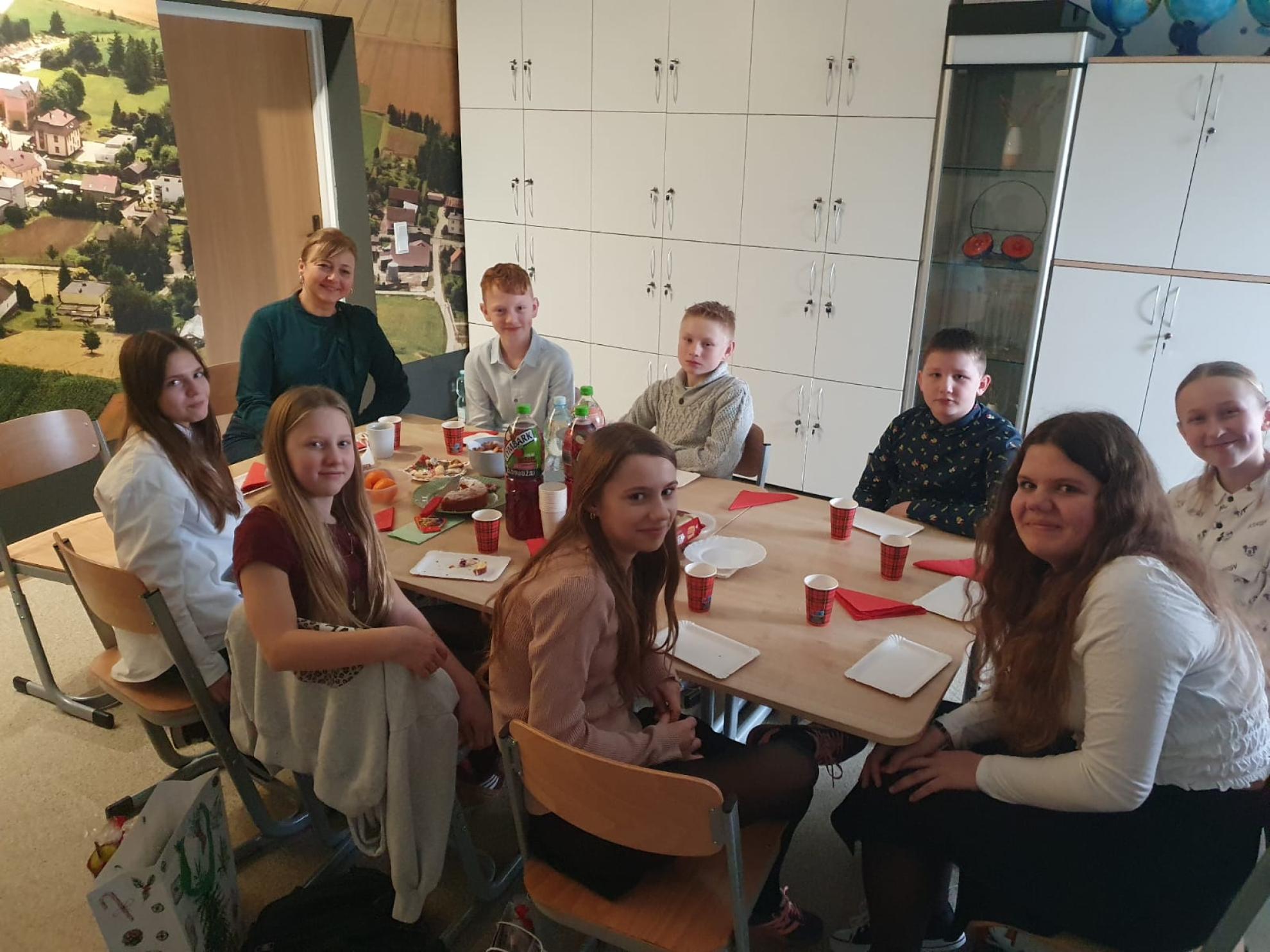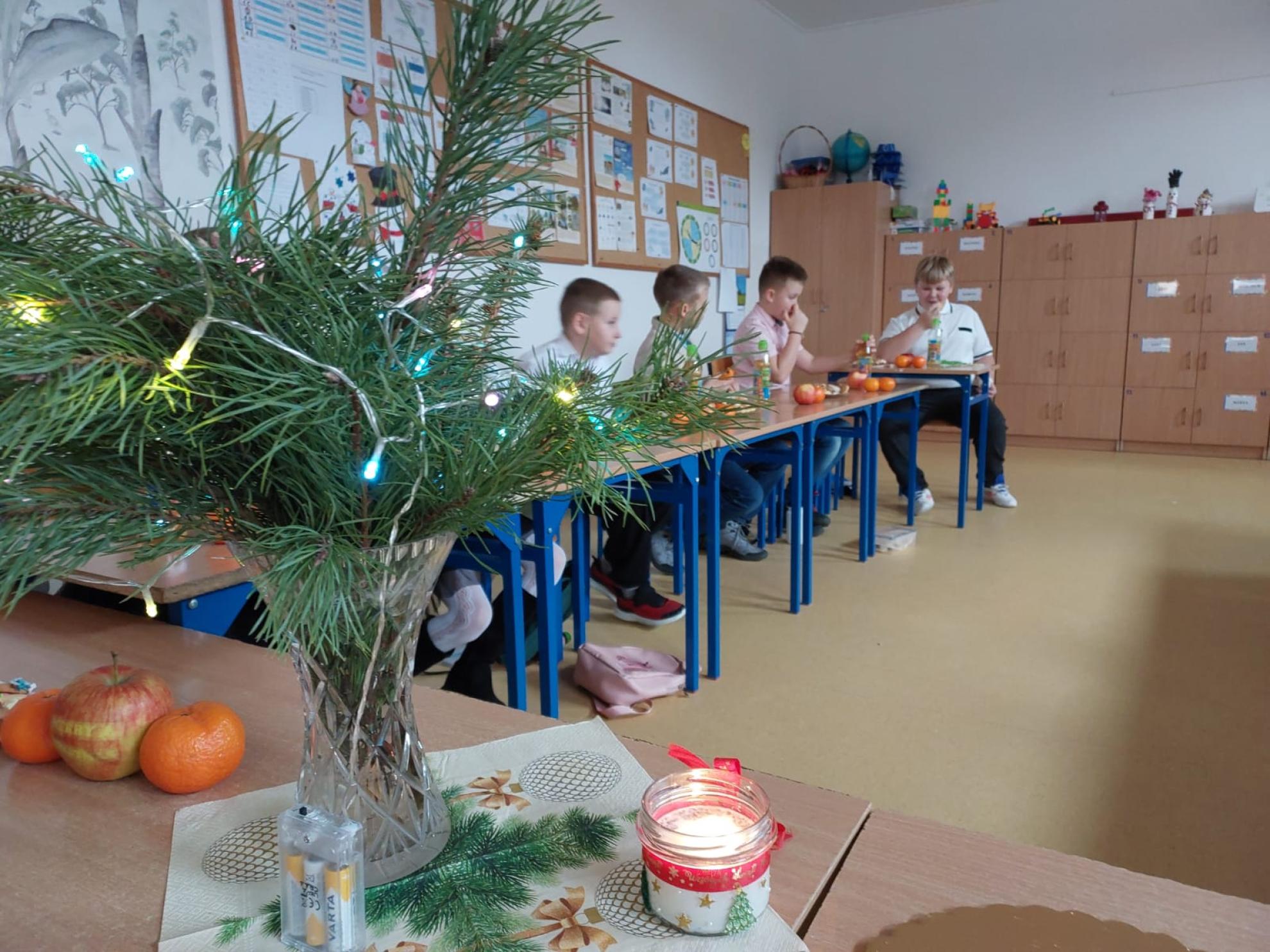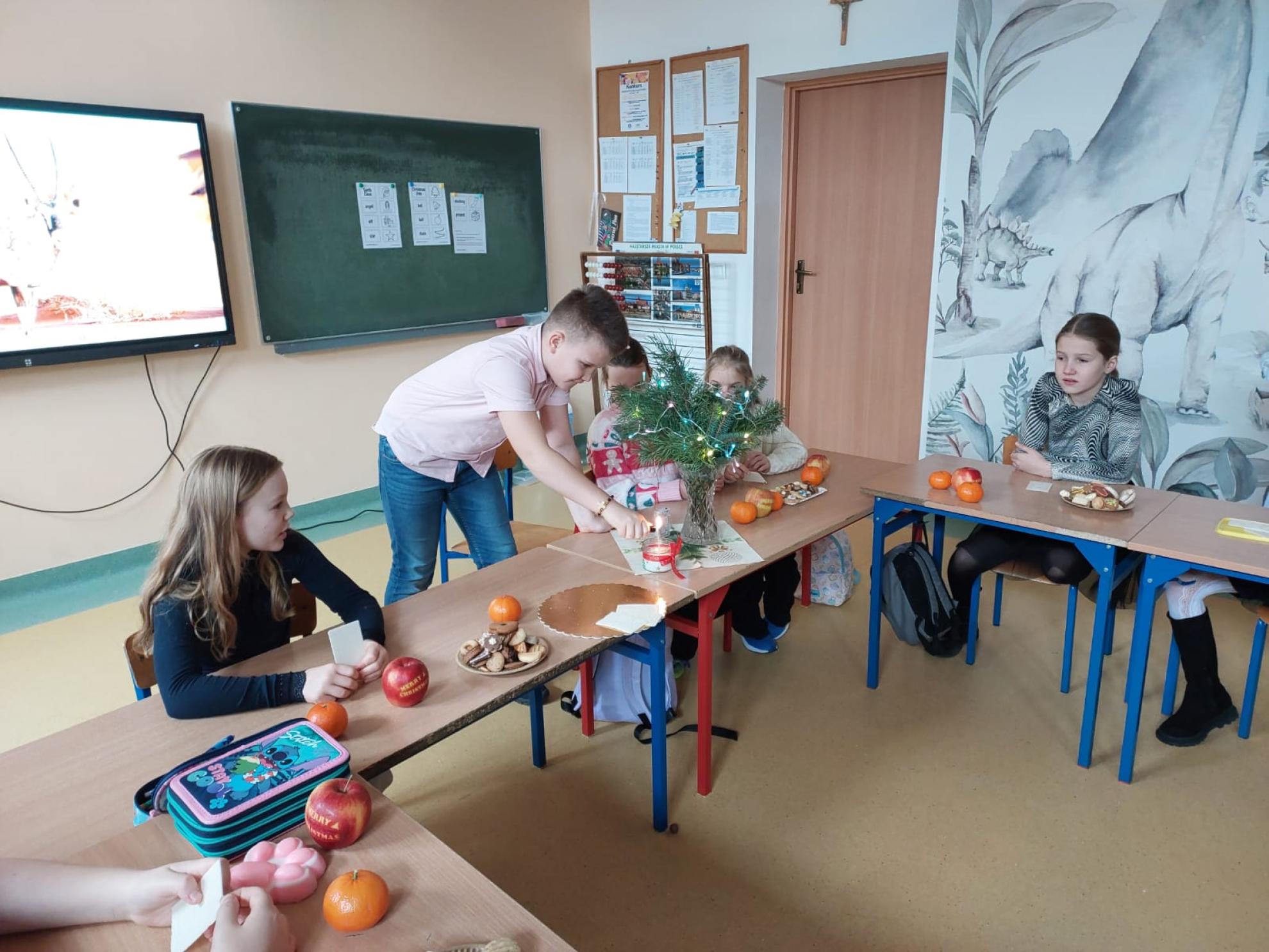 Wspólnie śpiewano kolędy oraz wysłuchano pięknej opowieści wigilijnej przygotowanej przez uczniów klasy VIII.