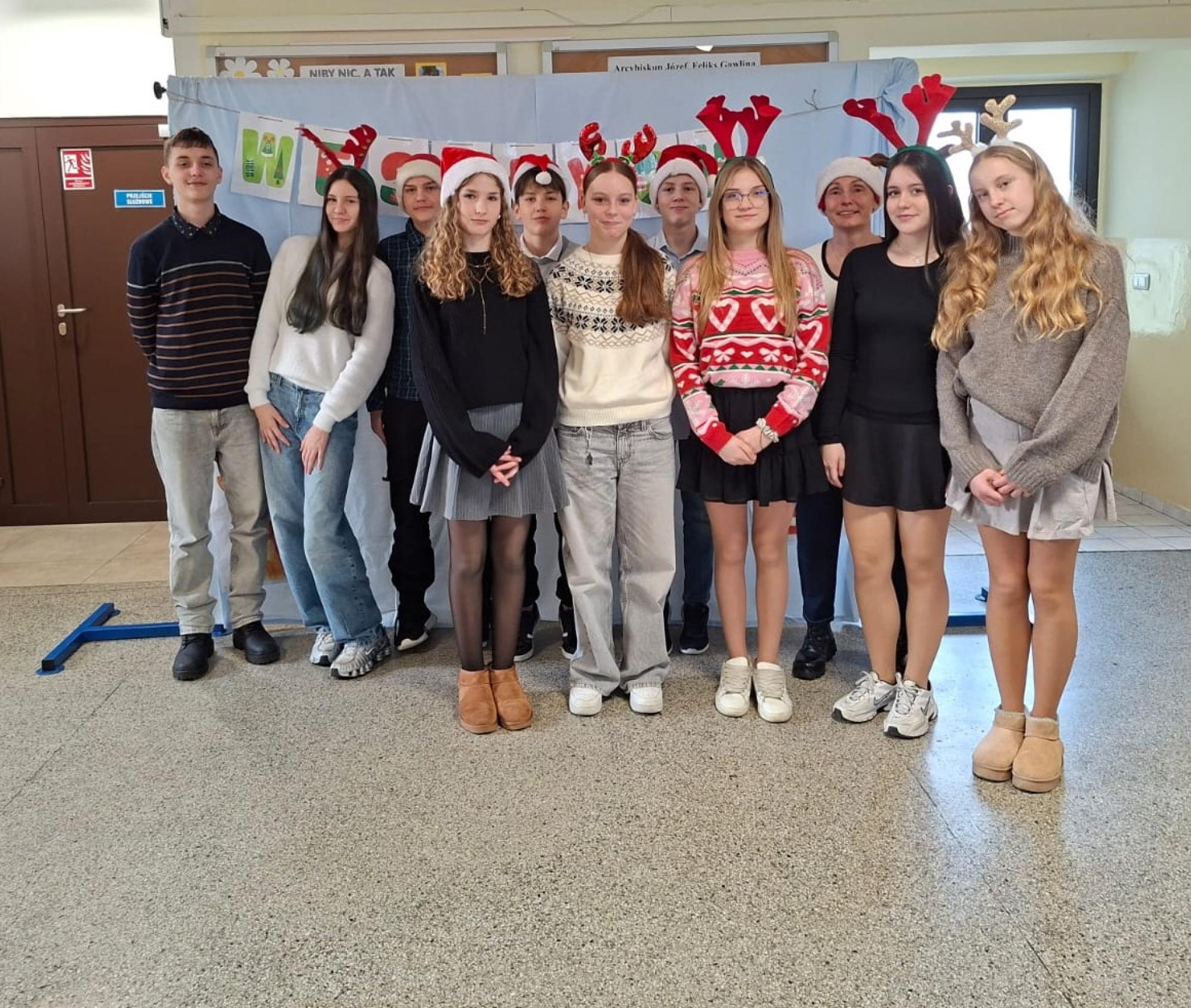 Pani Dyrektor złożyła uczniom oraz nauczycielom serdeczne życzenia świąteczne, a także przypomniała o zasadach bezpieczeństwa podczas przerwy świątecznej.