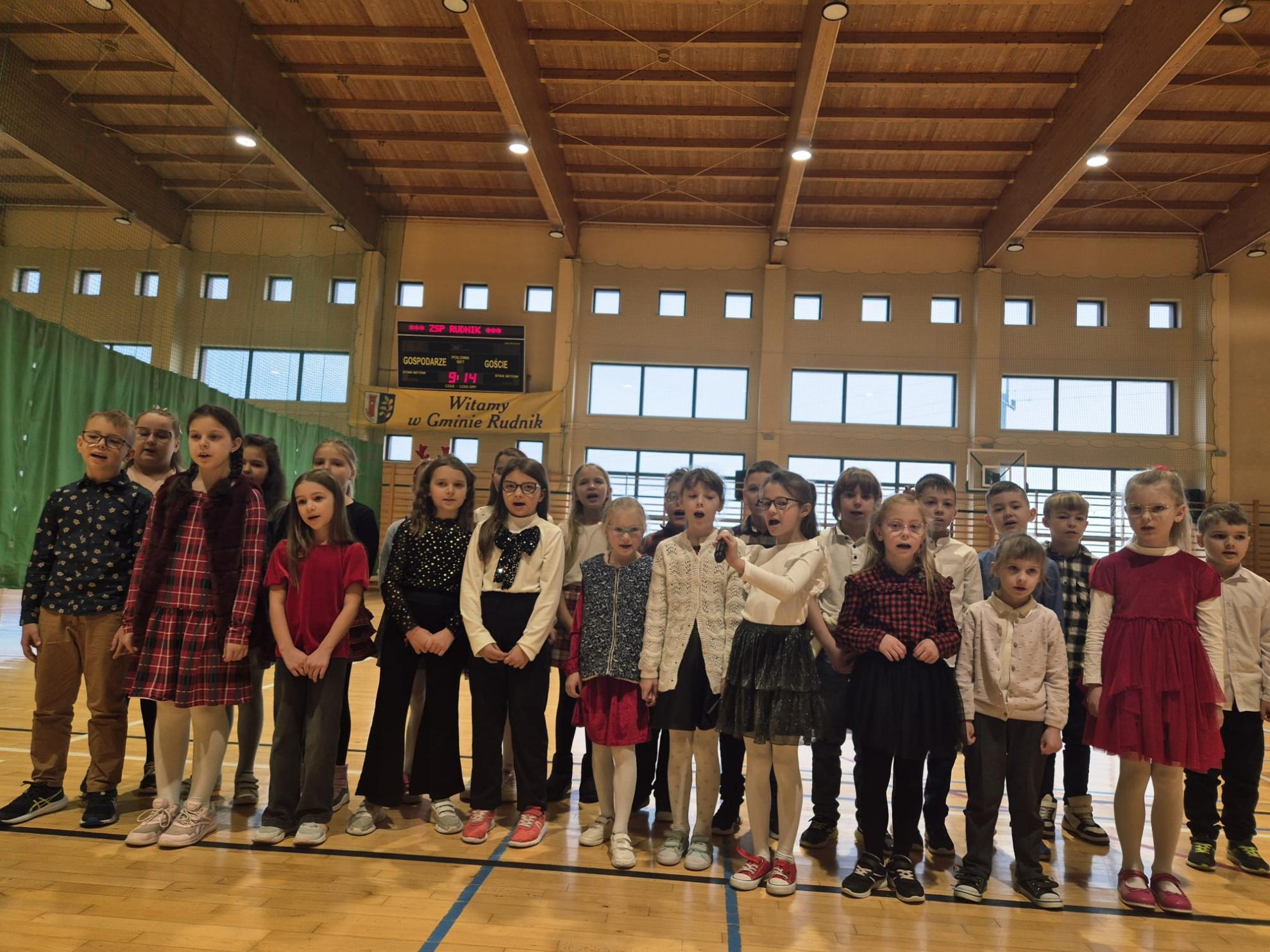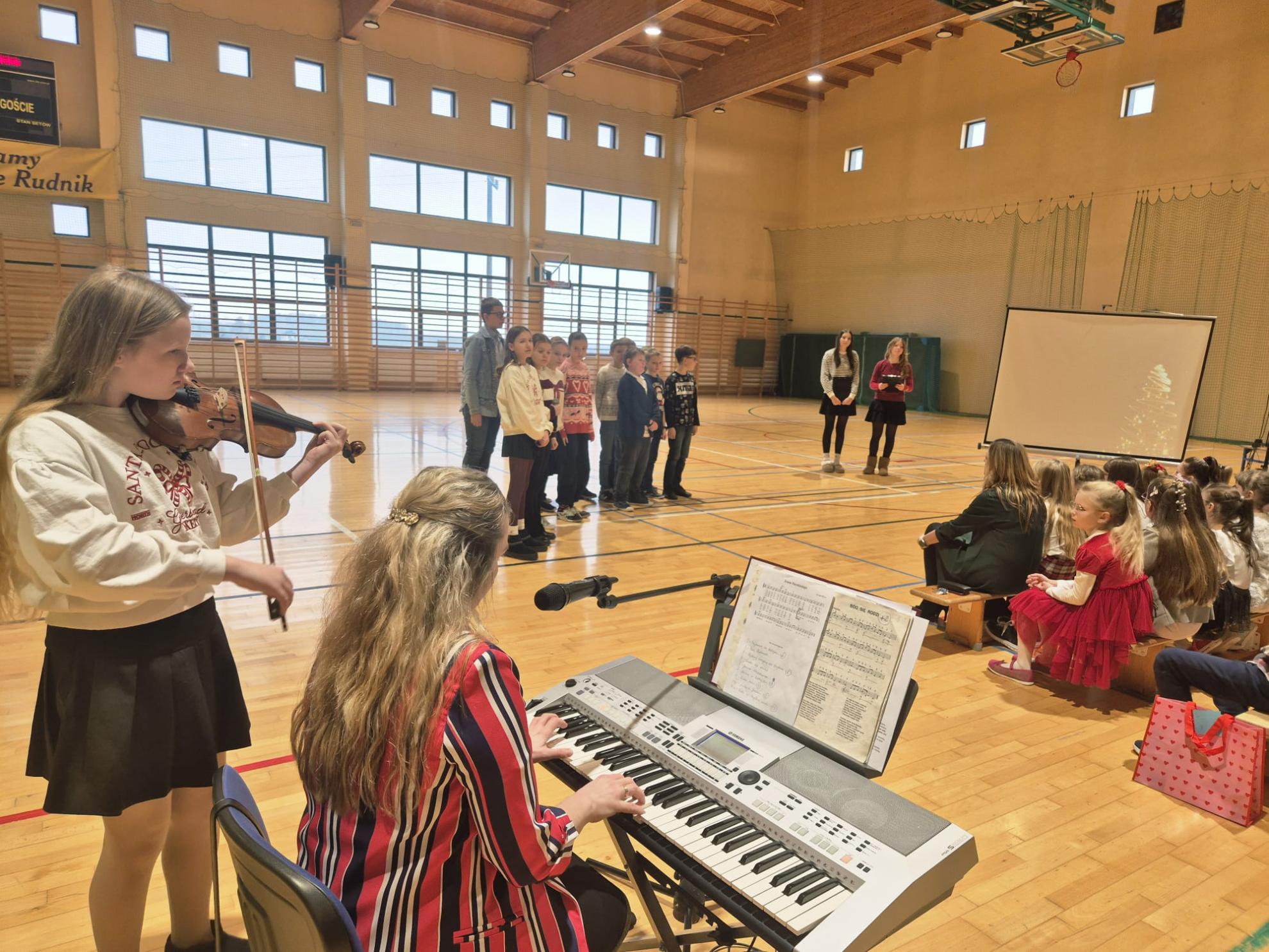 19 grudnia w Zespole Szkolno-Przedszkolnym w Rudniku panowała niezwykle ciepła, świąteczna atmosfera. Cała społeczność szkolna wspólnie wsłuchała się w fragment Pisma Świętego, a następnie każda klasa zaprezentowała przygotowaną przez siebie kolędę lub pastorałkę.