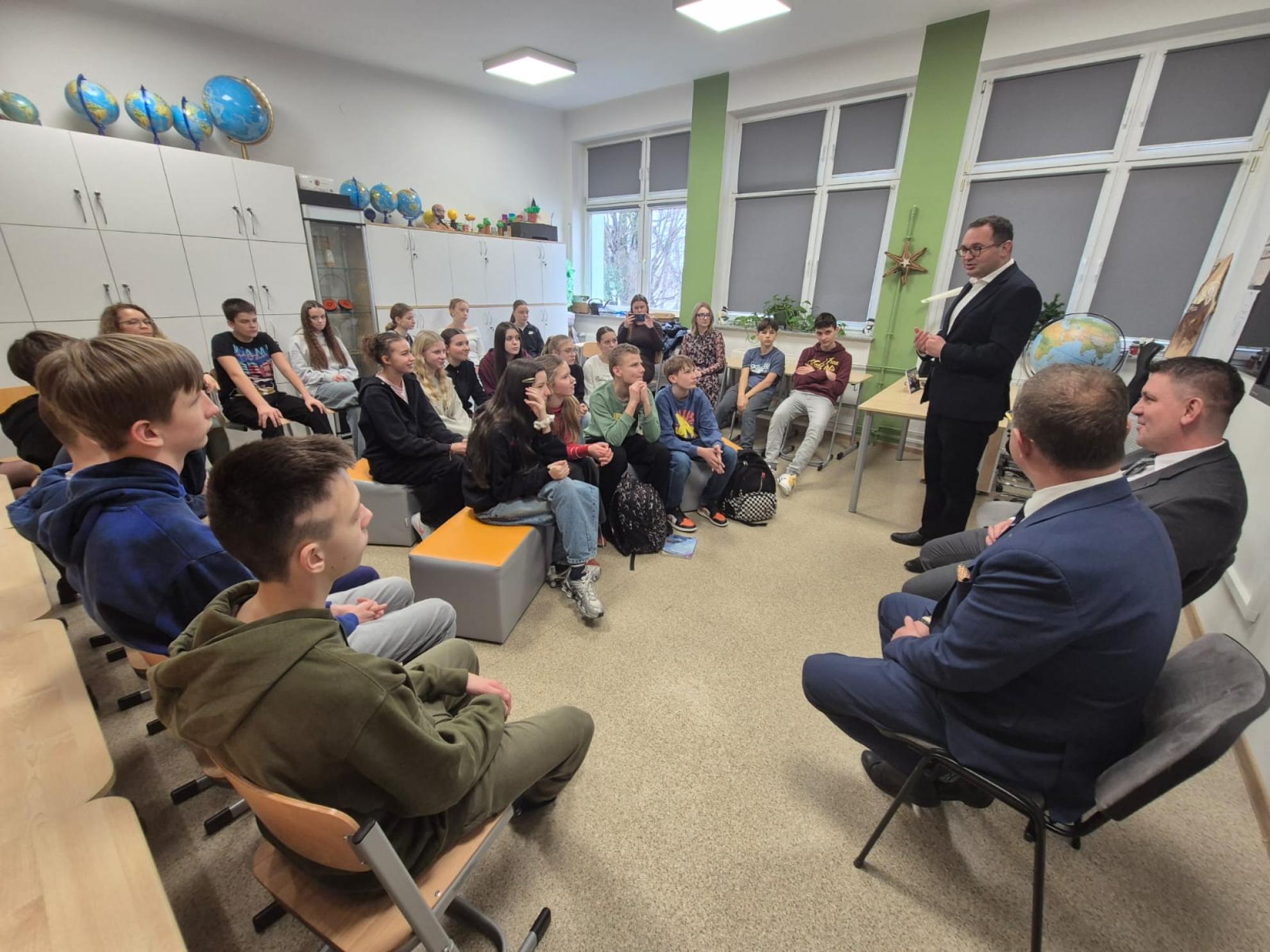 Podczas godzinnego spotkania uczniowie dowiedzieli się czym jest administracja, kto może kandydować w wyborach, czym zajmuje się gmina i jakie są jej organy. Ponadto pan wicewojewoda w bardzo przystępny sposób opowiedział młodym ludziom jak ukształtowane są szczeble samorządu terytorialnego - gmina, powiat i województwo oraz czym zajmuje się Urząd Wojewódzki.