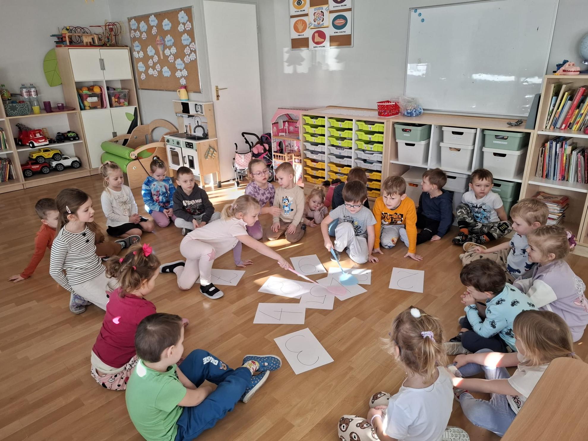 Podczas codziennych zabaw dzieci uczą się poprzez doświadczanie – liczą, porównują, klasyfikują, układają rytmy i rozwiązują proste zadania matematyczne, wykorzystując gry, pomoce dydaktyczne oraz elementy zabaw ruchowych. Matematyka towarzyszy nam w naturalnych sytuacjach dnia codziennego, dzięki czemu staje się dla dzieci ciekawa, zrozumiała i przyjemna.
