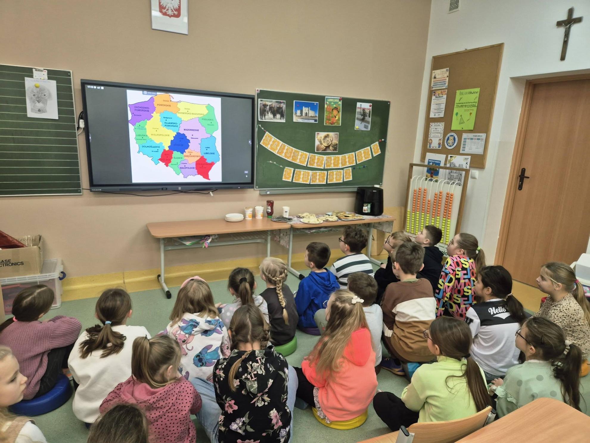Dziś w klasie II odbyła się kolejna lekcja w ramach innowacji „Podróż przez Polskę”. Tym razem wybraliśmy się na Lubelszczyznę, poznając województwo lubelskie.