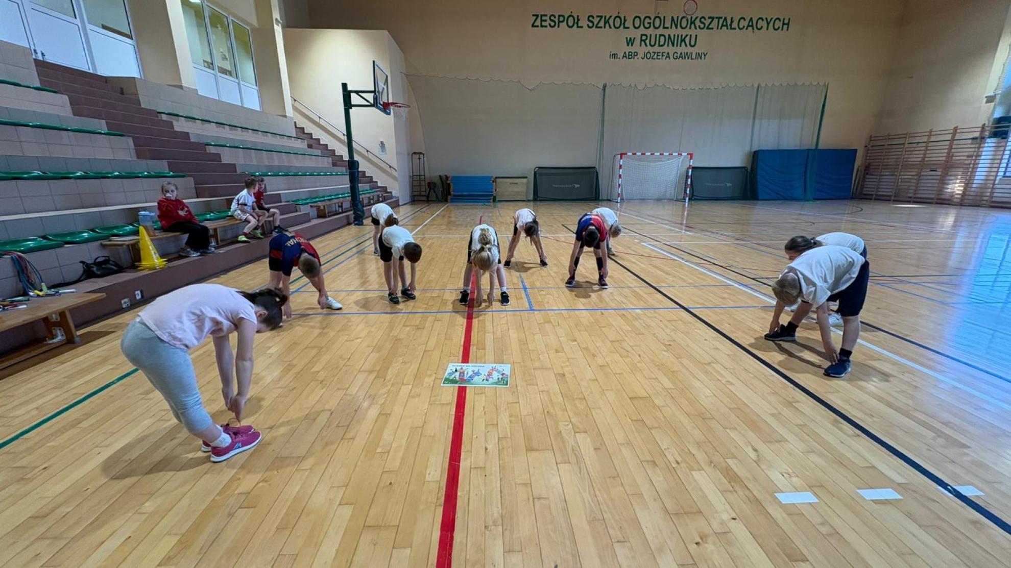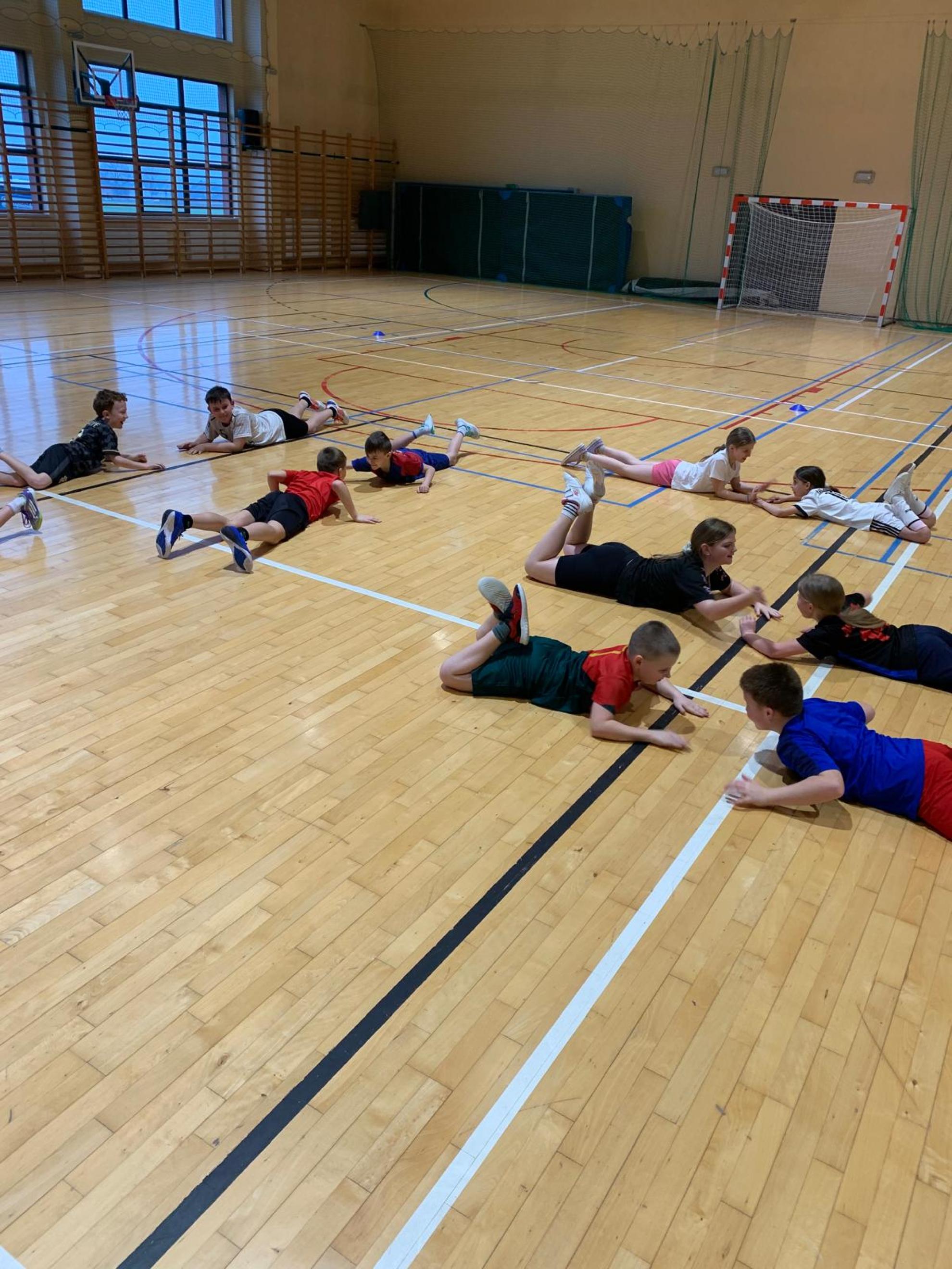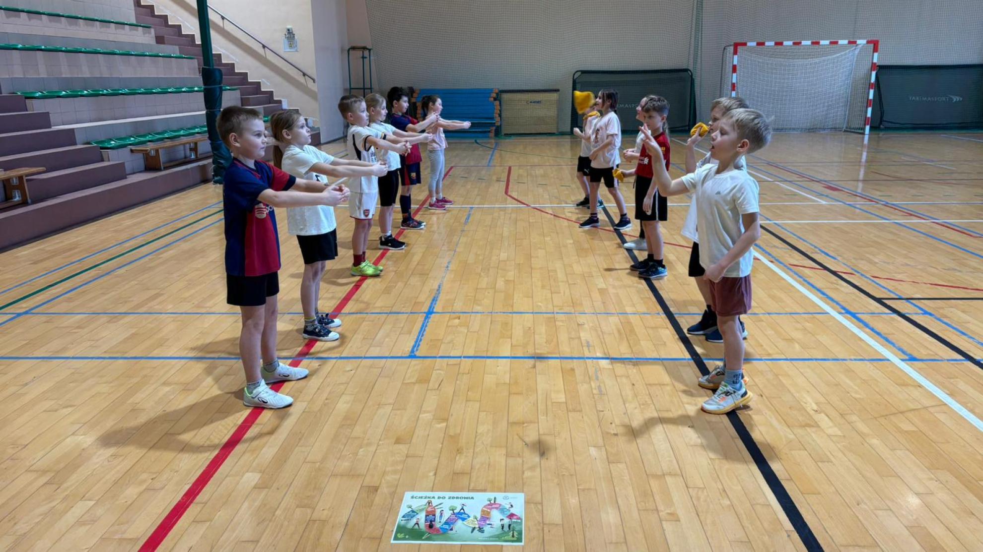 Następnie podczas zajęć wychowania fizycznego uczniowie wzięli udział w zabawach ruchowych pod hasłem „Ścieżka dla zdrowia”. W trakcie aktywności dzieci wykazały się doskonałą współpracą, zaangażowaniem oraz umiejętnością działania w grupie. Zajęcia te podkreśliły, jak ważny jest nie tylko rozwój fizyczny, ale także rozwój społeczny oraz budowanie pozytywnych relacji z rówieśnikami.