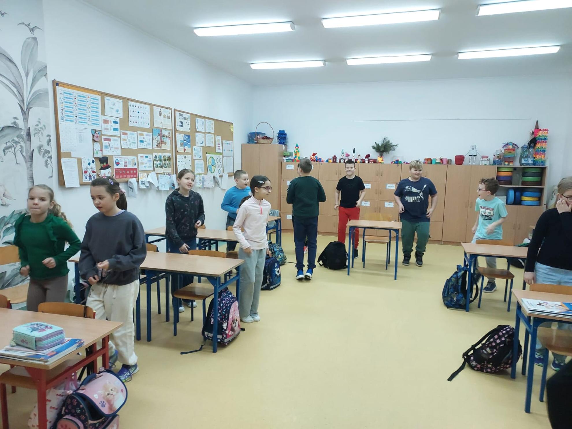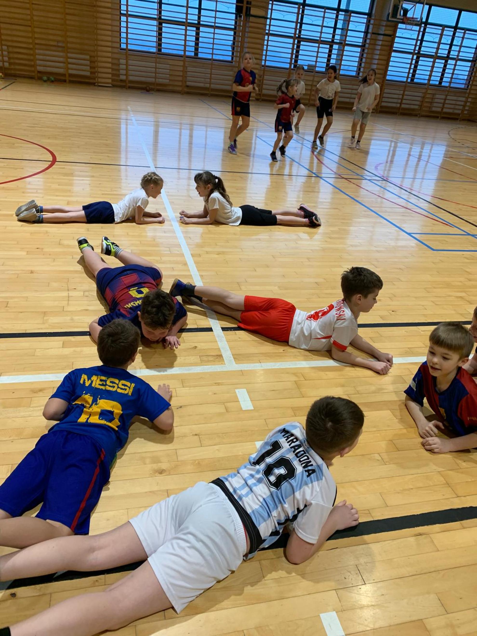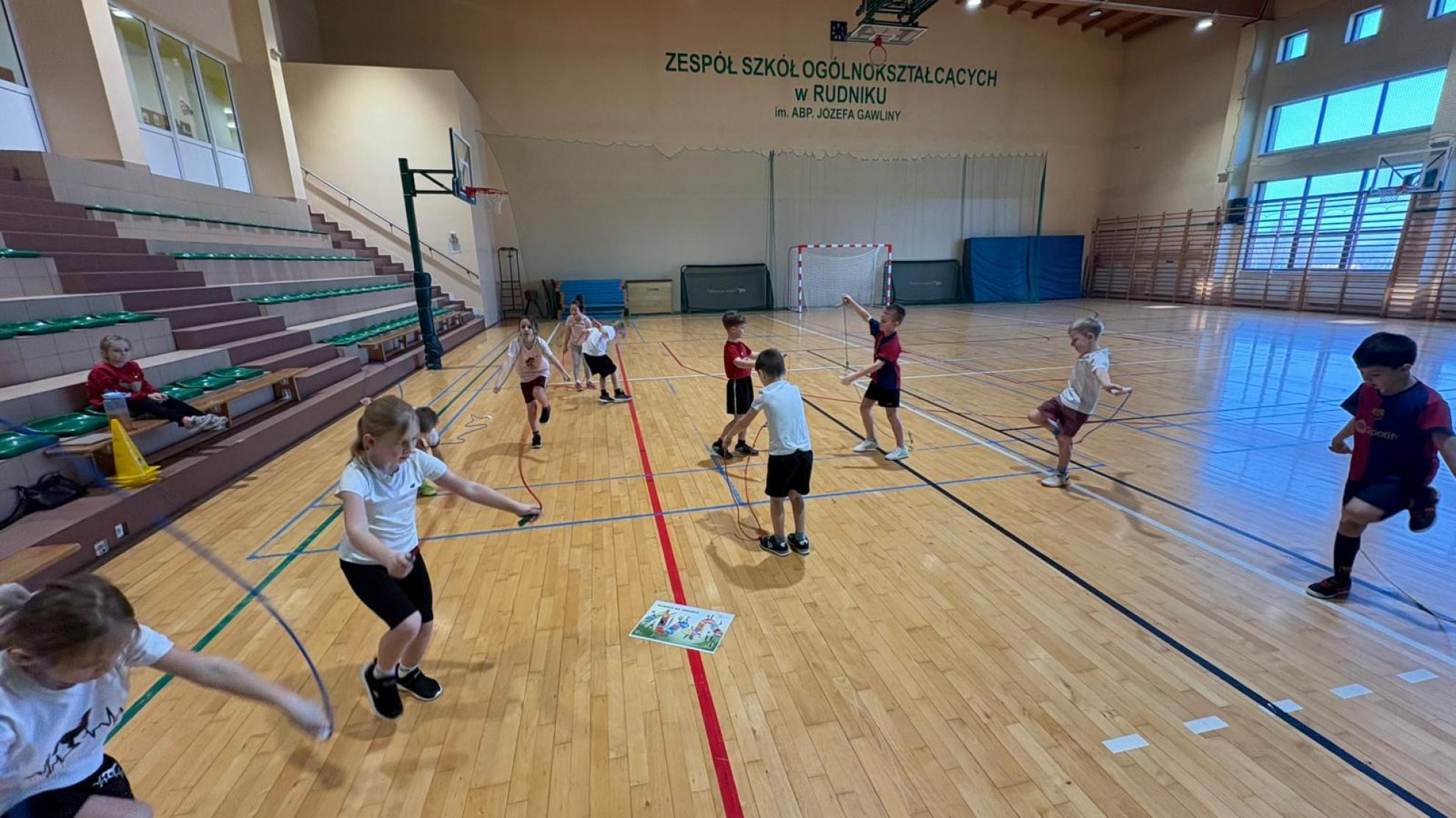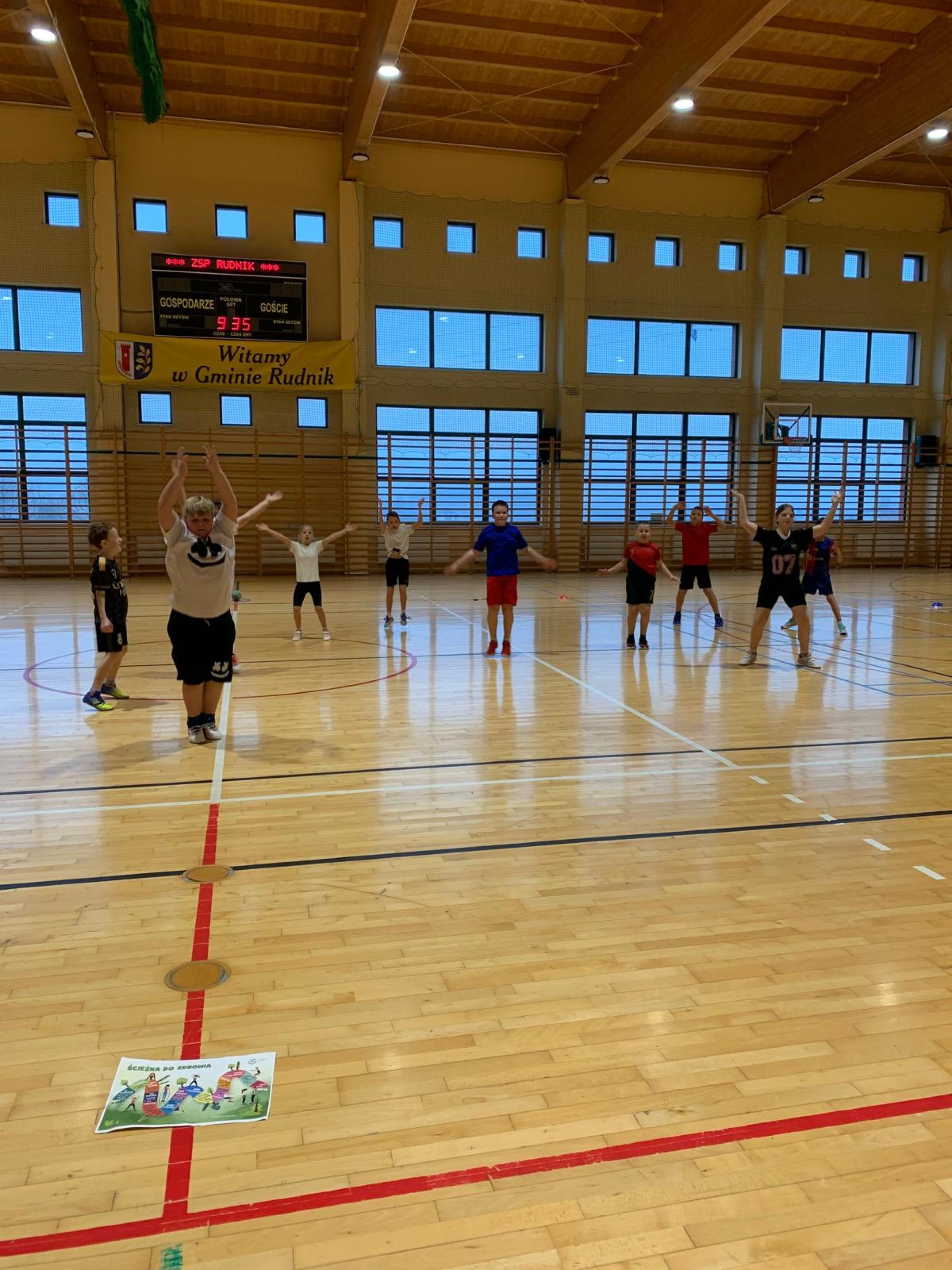 Następnie podczas zajęć wychowania fizycznego uczniowie wzięli udział w zabawach ruchowych pod hasłem „Ścieżka dla zdrowia”. W trakcie aktywności dzieci wykazały się doskonałą współpracą, zaangażowaniem oraz umiejętnością działania w grupie. Zajęcia te podkreśliły, jak ważny jest nie tylko rozwój fizyczny, ale także rozwój społeczny oraz budowanie pozytywnych relacji z rówieśnikami.