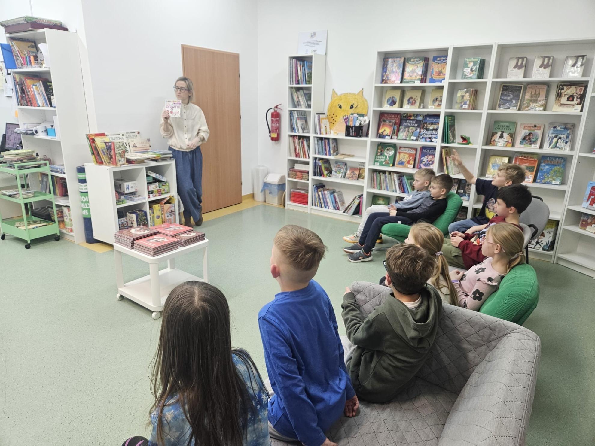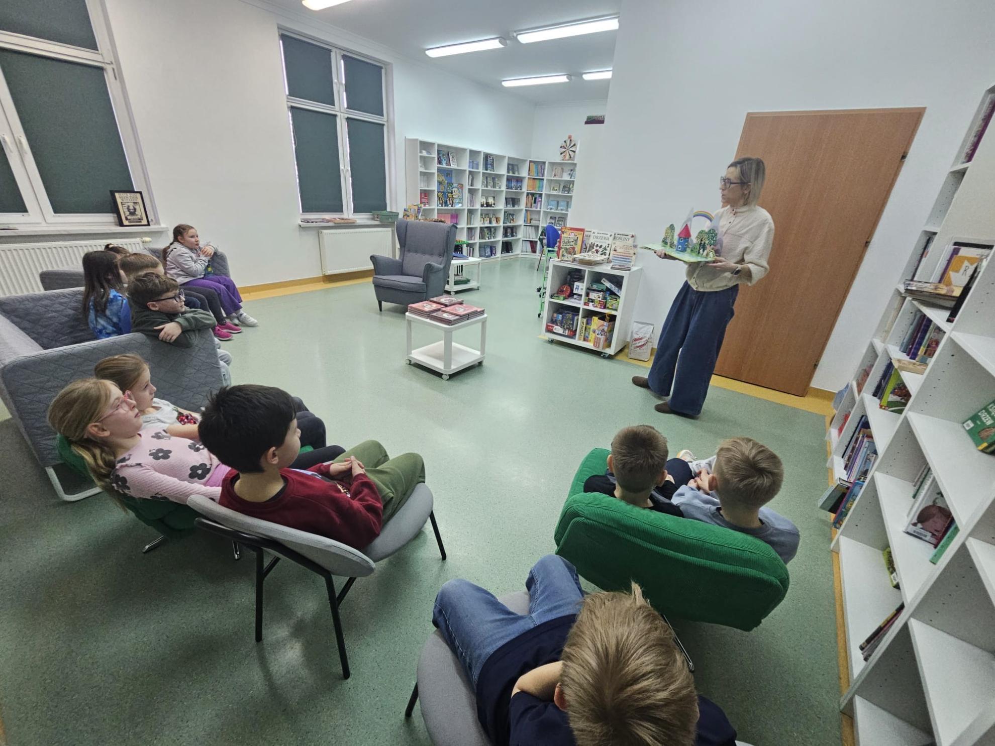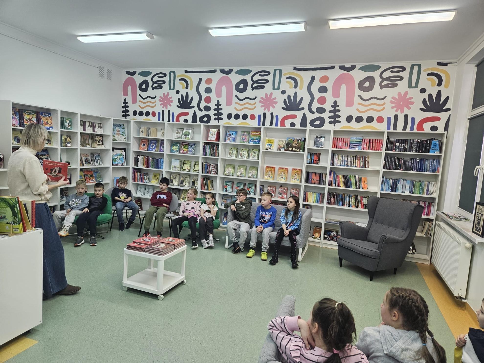 Podczas spotkania uczniowie poznali zasady funkcjonowania biblioteki, jej działy oraz różnorodność książek, które na nich czekają. Następnie wspólnie odkrywaliśmy, jakie supermoce daje czytanie – możliwość przenoszenia się w czasie i do niezwykłych miejsc, rozwijania zainteresowań czy poznawania ciekawostek, np. przepisów inspirowanych światem Kubusia Puchatka lub Harry’ego Pottera.