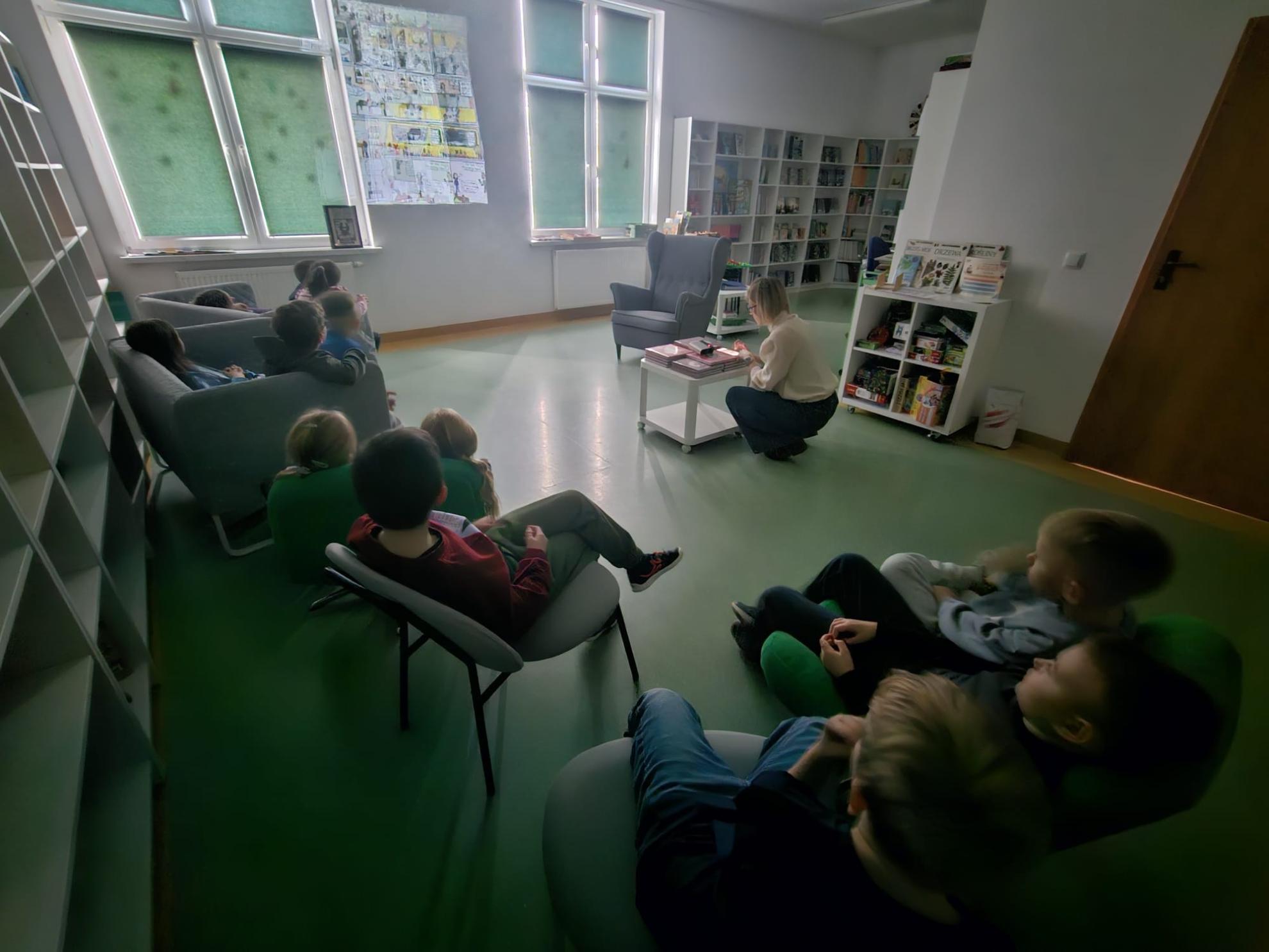 Warto podkreślić, że pierwszoklasiści już od dawna są stałymi gośćmi biblioteki – podczas przerw chętnie przychodzą czytać, grać w planszówki, rozwiązywać łamigłówki oraz podejmować różne wyzwania czytelnicze w ramach aktywnych przerw.