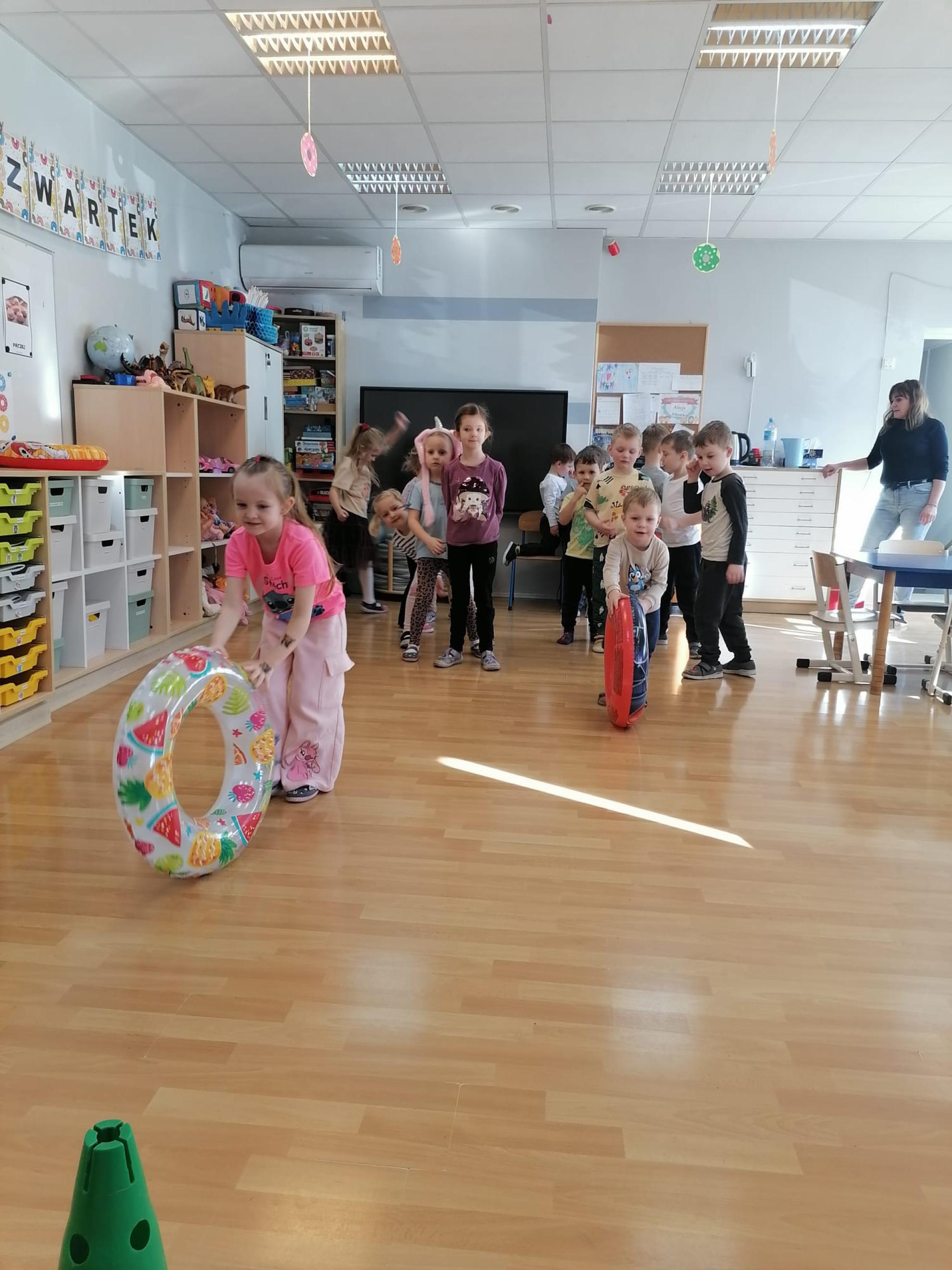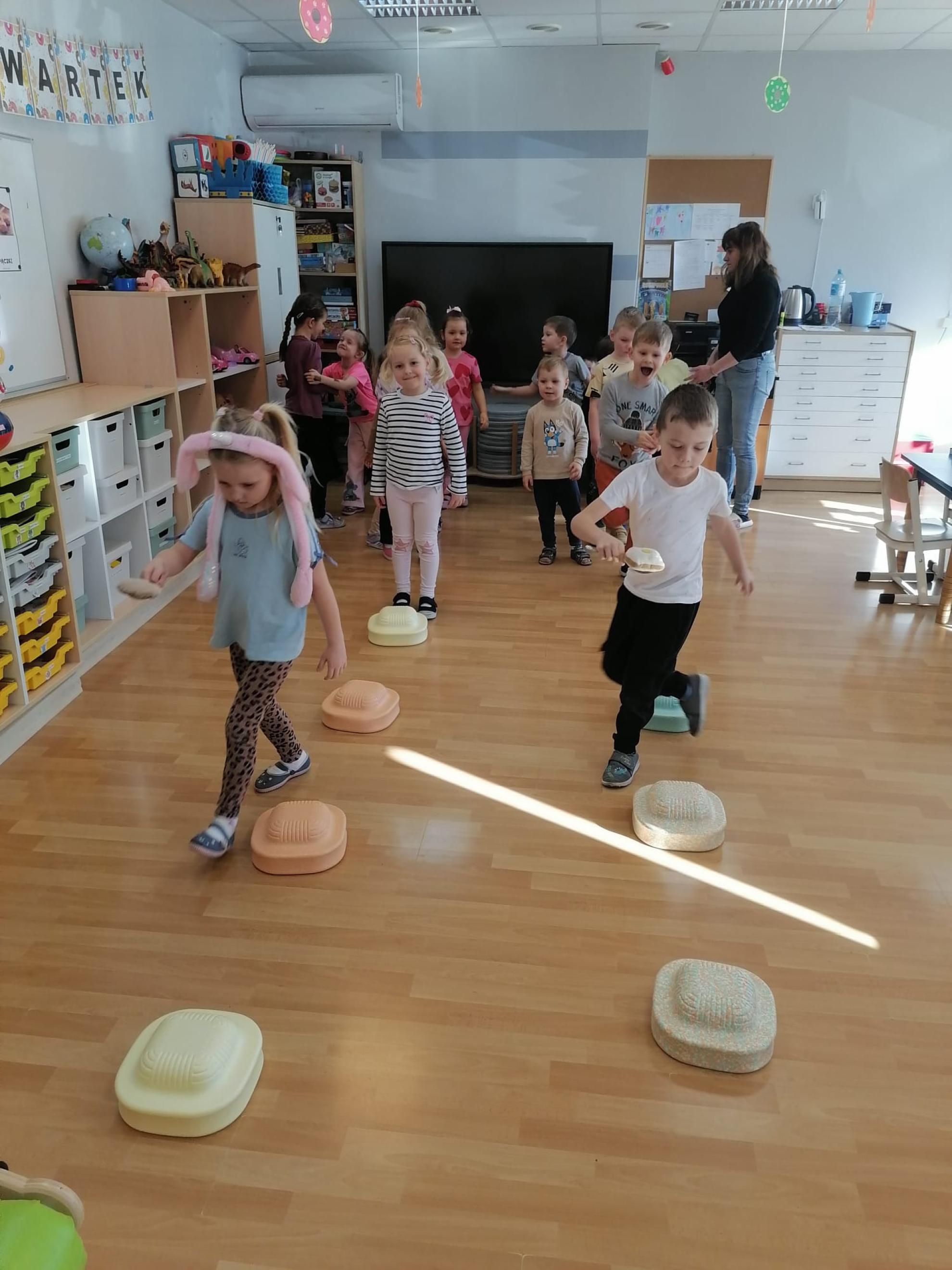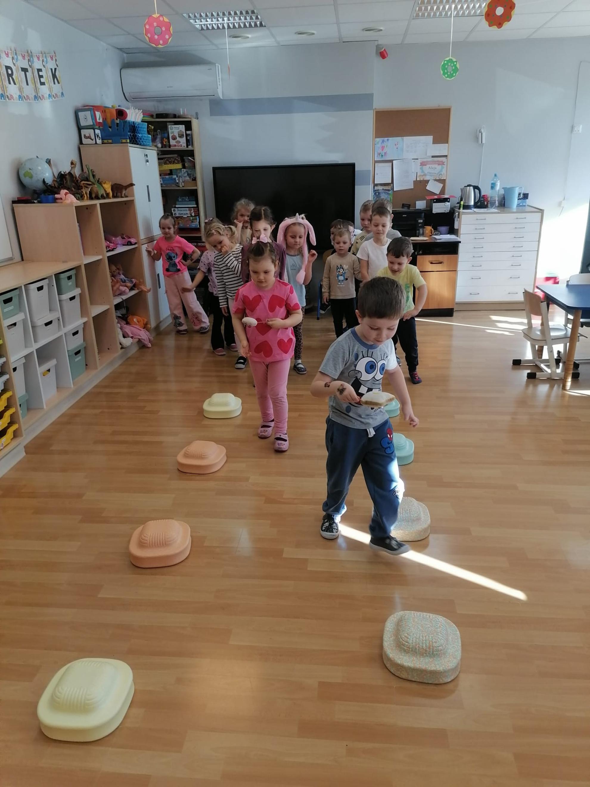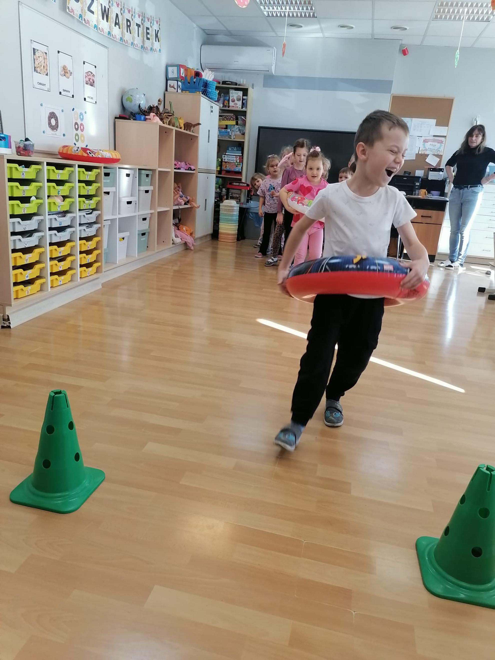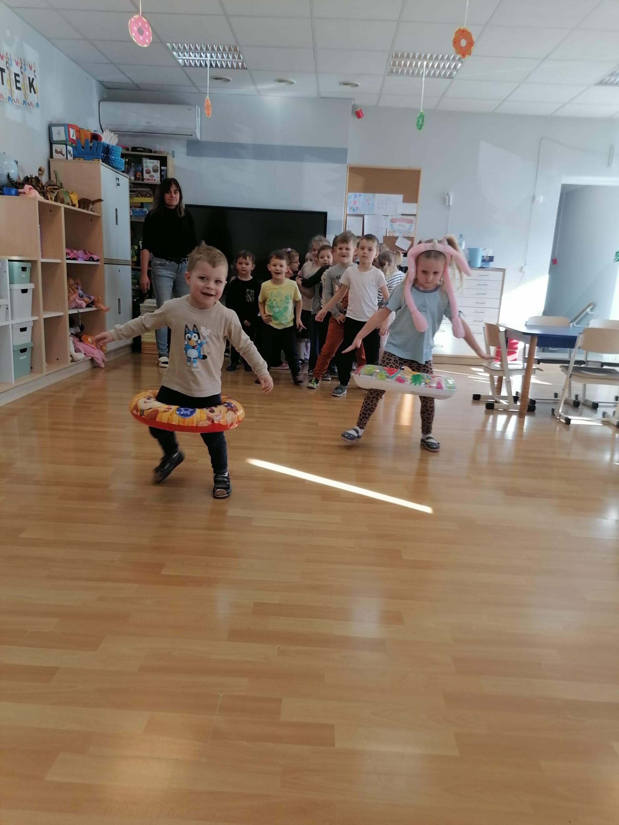 Przedszkolaki uczestniczyły w,, pączkowych" zabawach i konkurencjach: