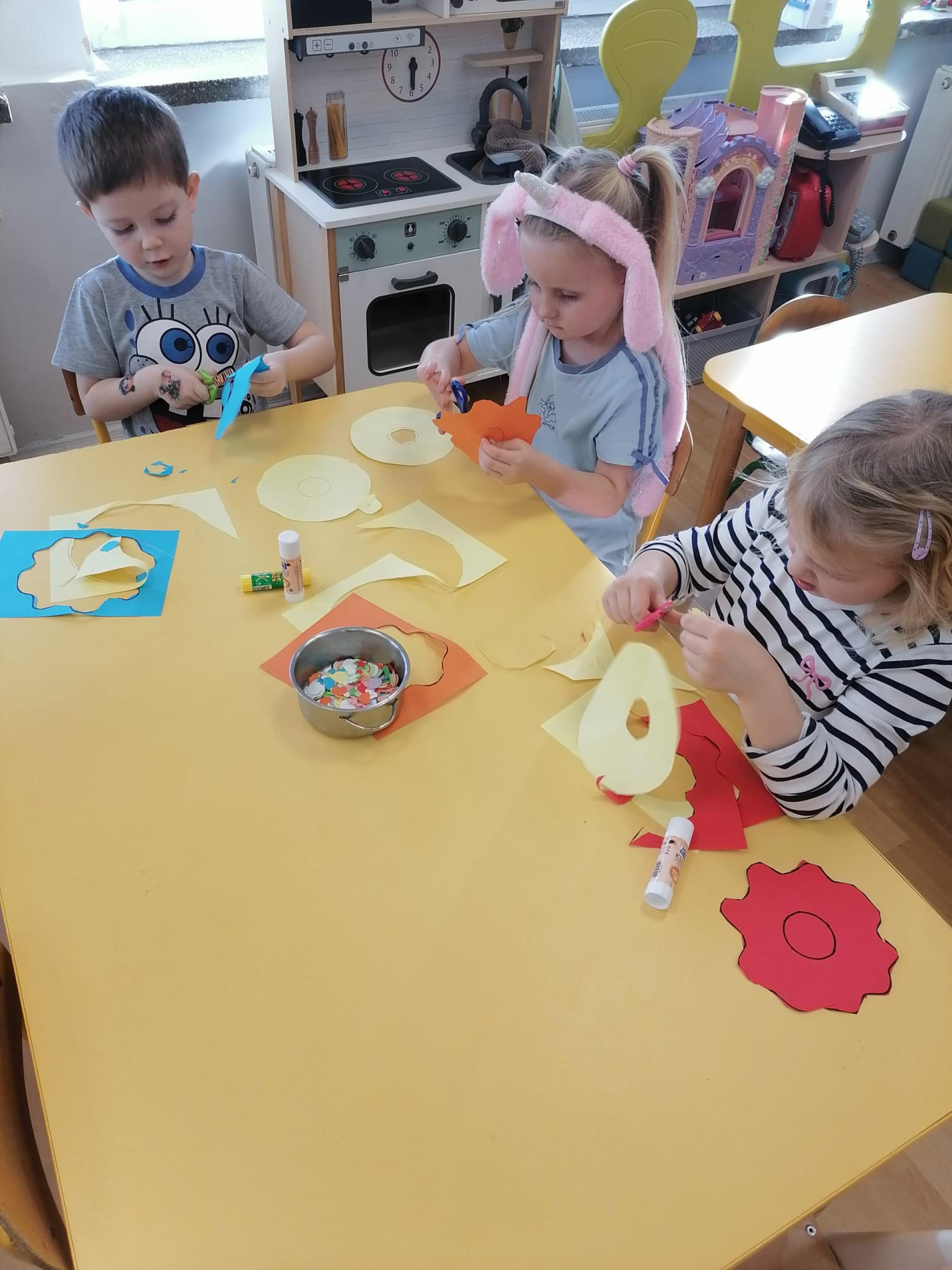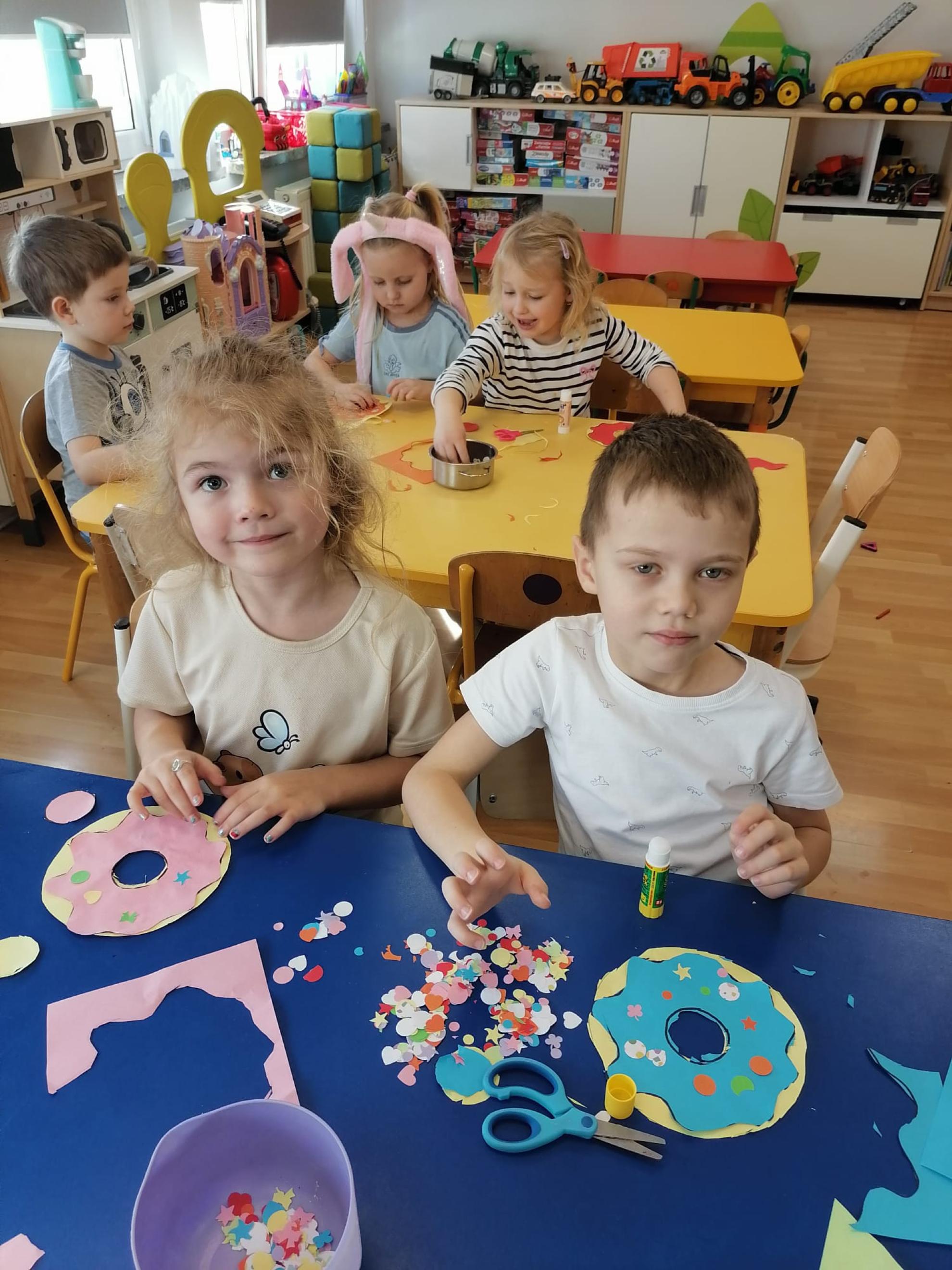 Dzieci wykonały pączki z papieru, które ozdobiły według własnego pomysłu.