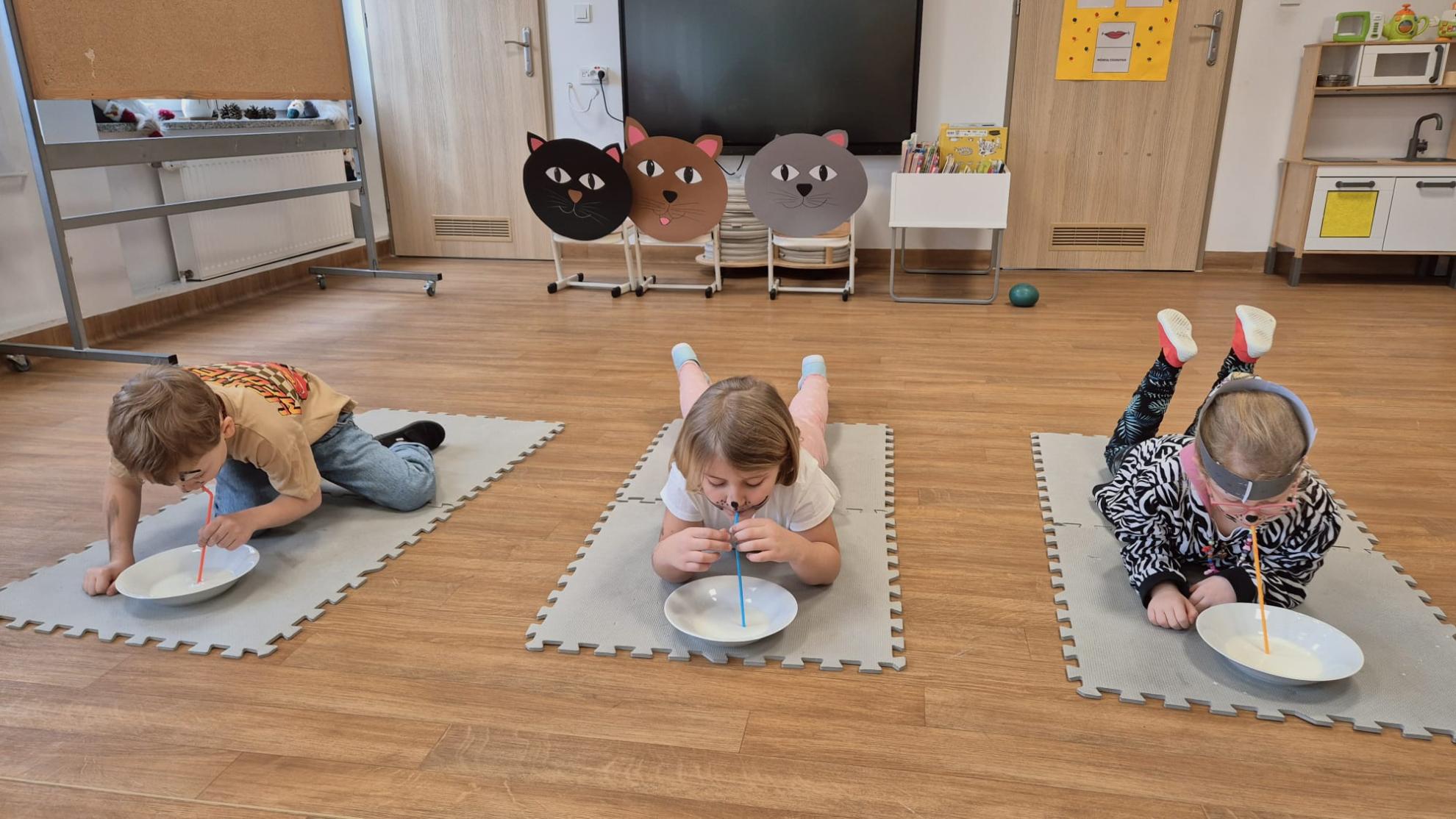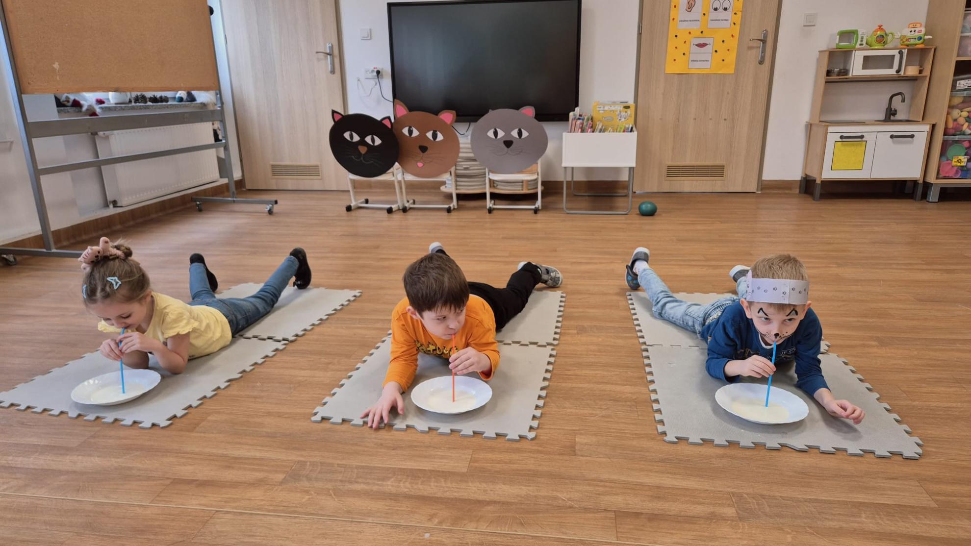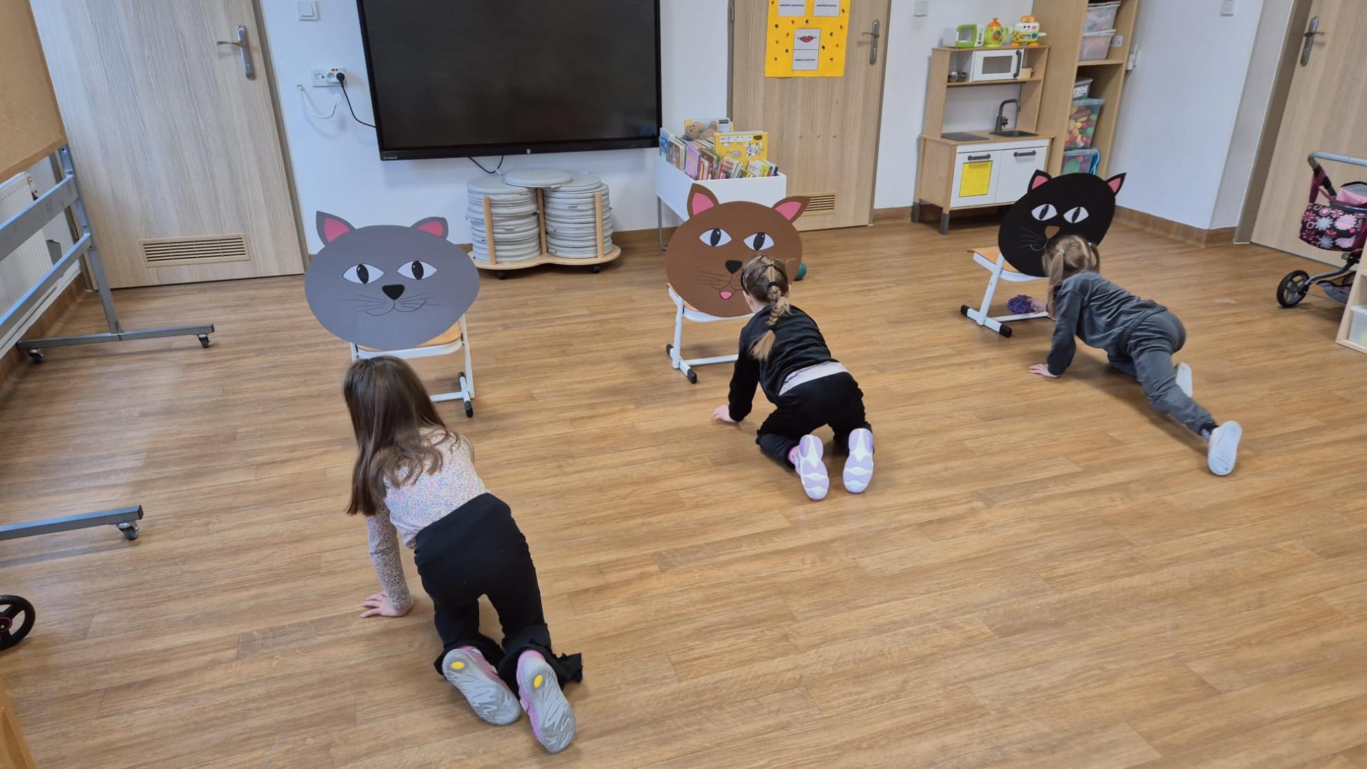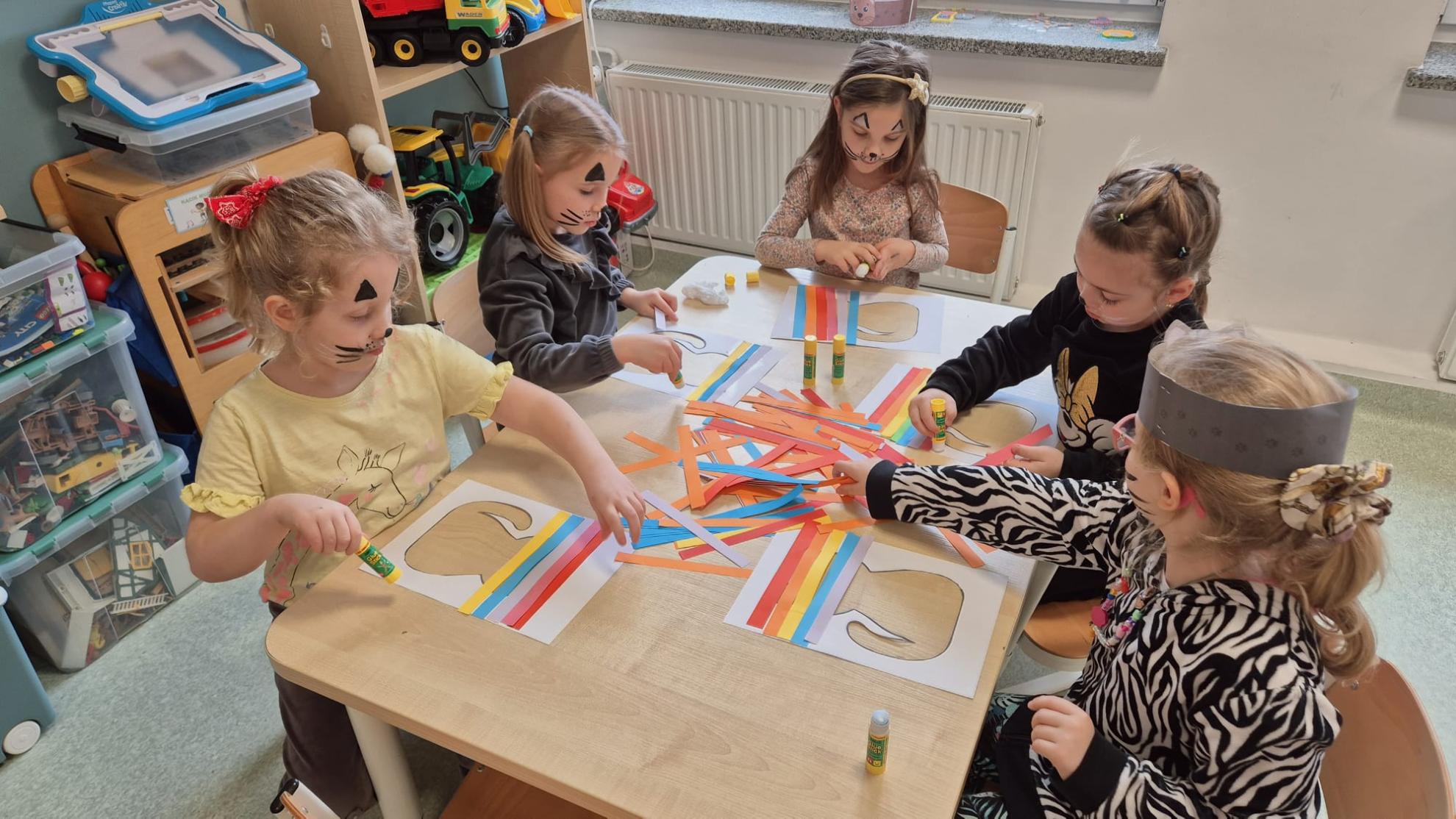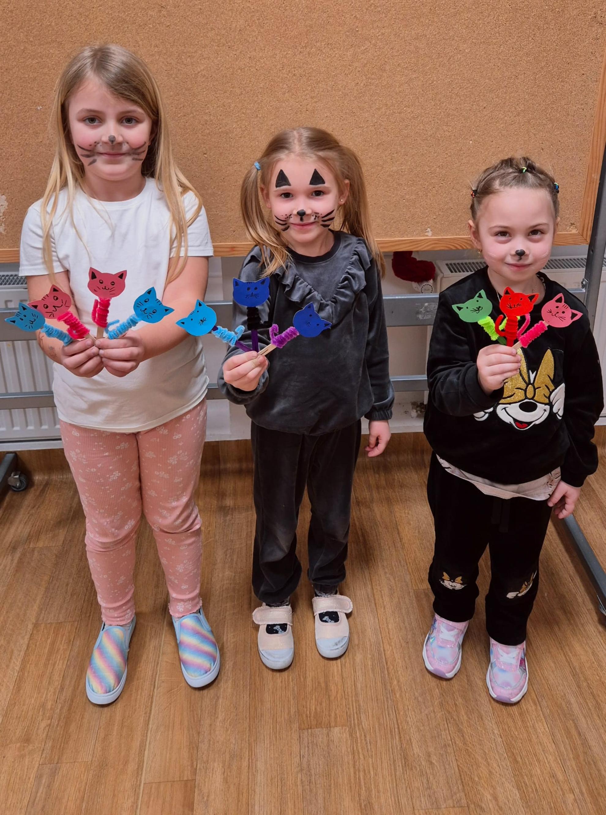 Ten dzień był pełen radości, uśmiechu i kocich atrakcji. Dzieci miały okazję poznać ciekawostki o kotach, dowiedzieć się, jak należy o nie dbać oraz dlaczego zwierzęta zasługują na naszą troskę i miłość. Nie zabrakło również wesołych zabaw ruchowych, kocich konkursów oraz kreatywnych prac plastycznych, podczas których powstały przepiękne kotki.