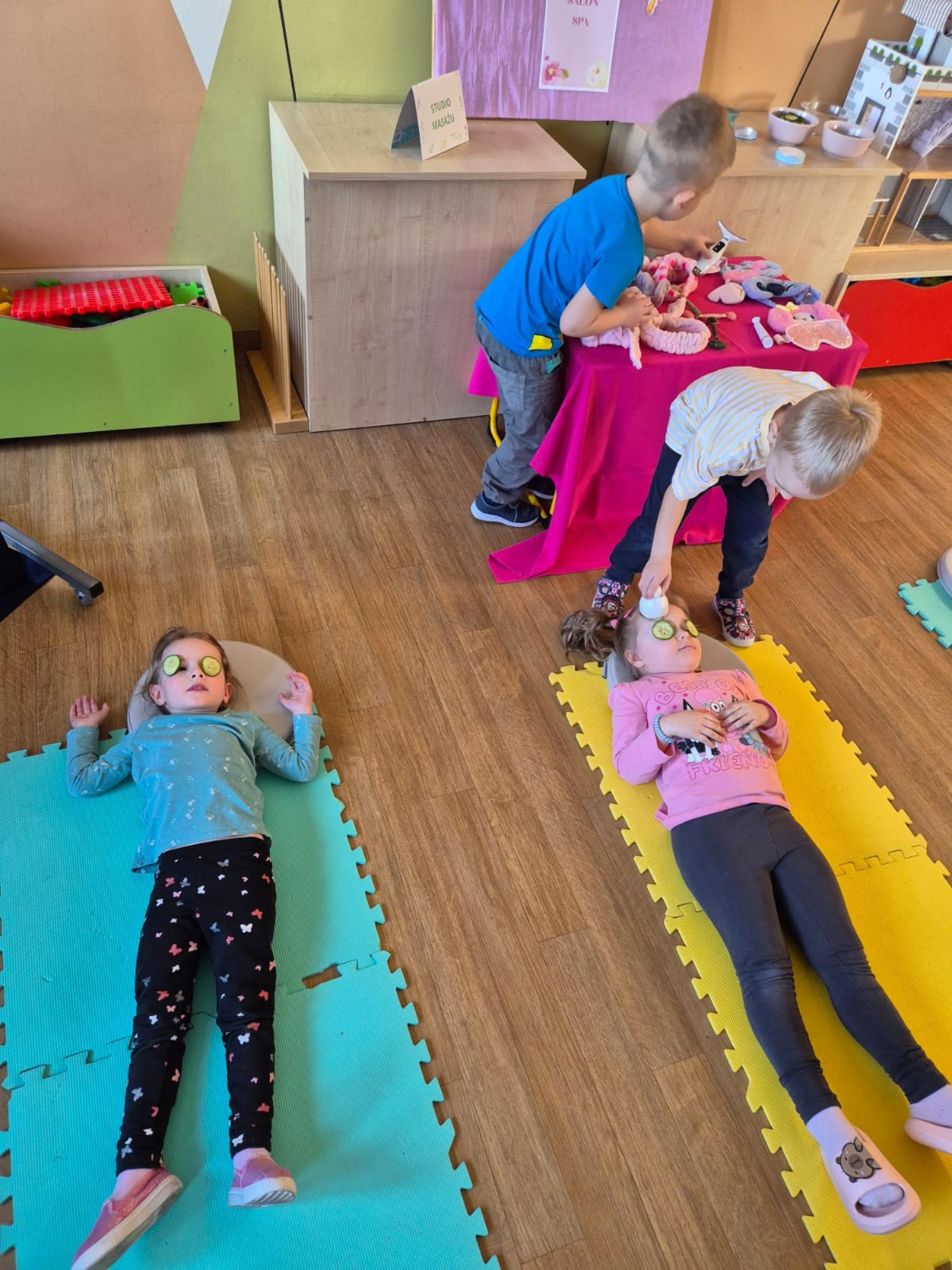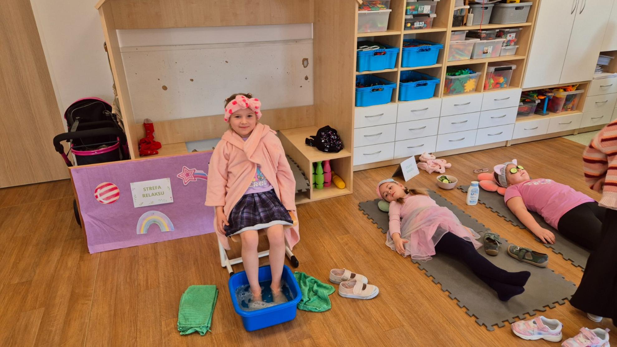 Z tej okazji w salach zostały przygotowane specjalne „salony SPA”, w których dziewczynki mogły poczuć się naprawdę wyjątkowo. Czekały tam na nie różne strefy relaksu: kącik odpoczynku z delikatną muzyką i pachnącymi świeczkami, strefa masażu z maseczką z ogórka, w której chłopcy jak prawdziwi masażyści, masowali swoje koleżanki, a także strefy tatuaży, manicure oraz makijażu.