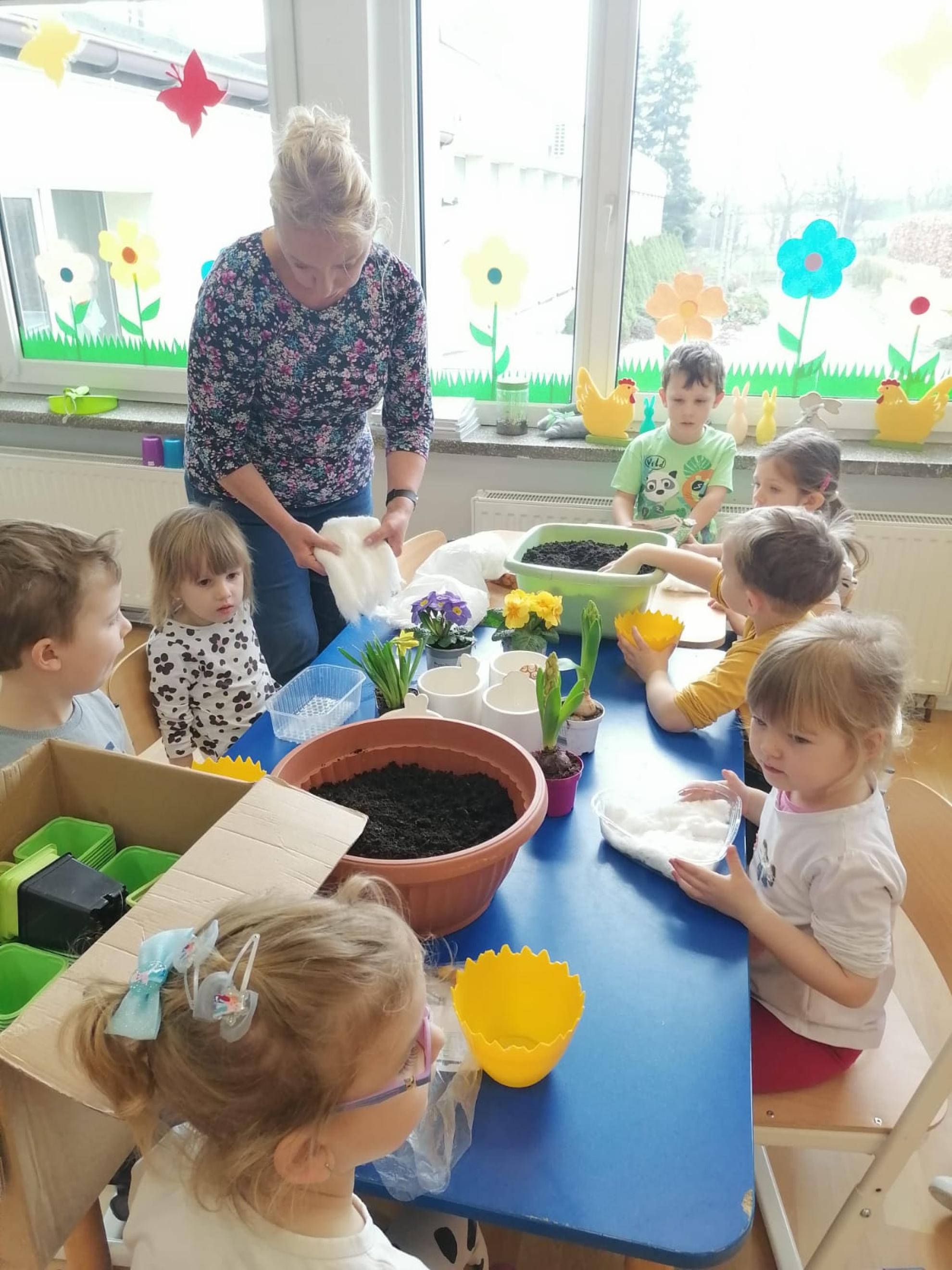 Dzieci dowiedziały się co jest potrzebne do hodowli roślin oraz jak należy się nimi opiekować. W sali zrobiło się kolorowo i wiosennie.