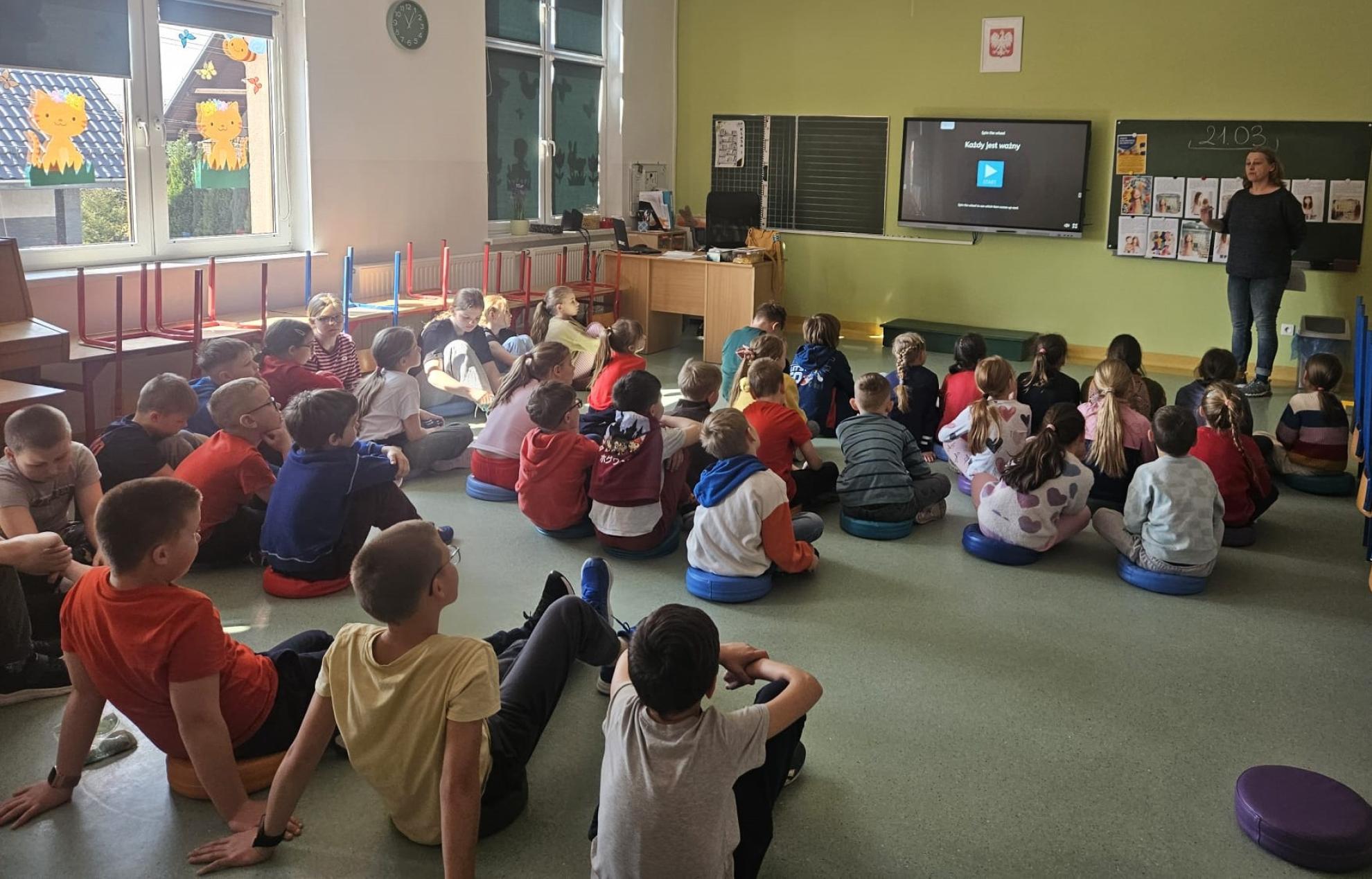 Dla klas młodszych przygotowano specjalne zajęcia edukacyjne. Uczniowie wysłuchali bajki poruszającej temat akceptacji i różnorodności, a następnie obejrzeli krótki filmik, który w przystępny sposób przybliżył im tematykę Zespołu Downa.